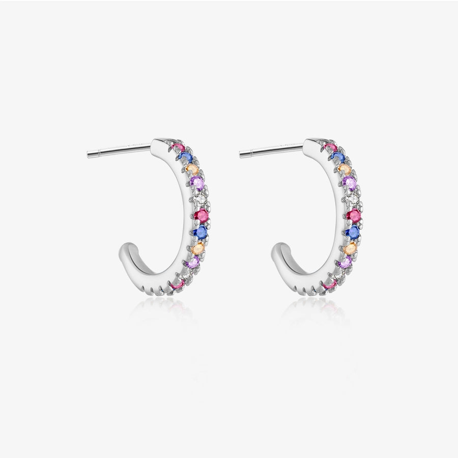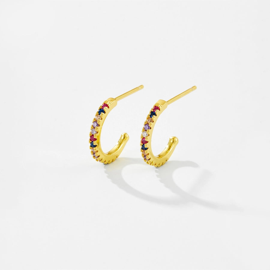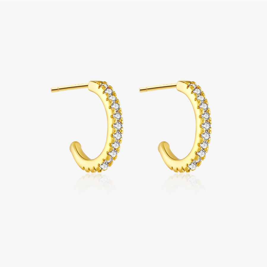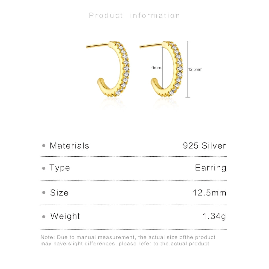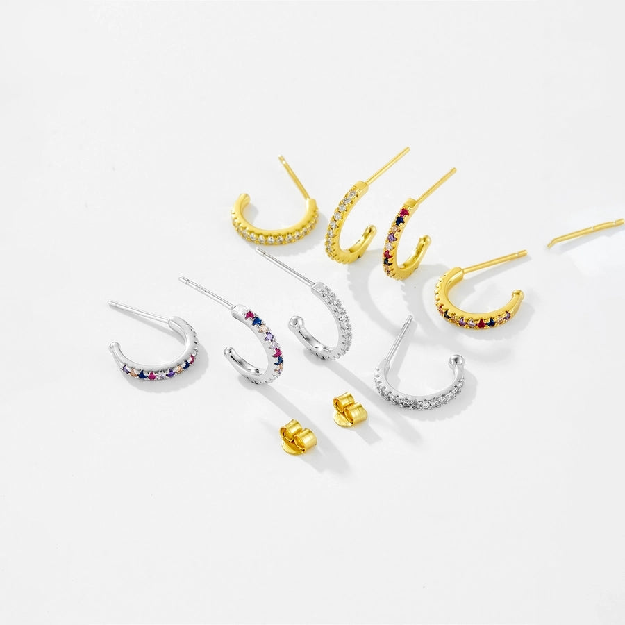 1 Pair 18K Gold Plated White Gold Plated Sterling Silver Zircon C Shape Ear Studs