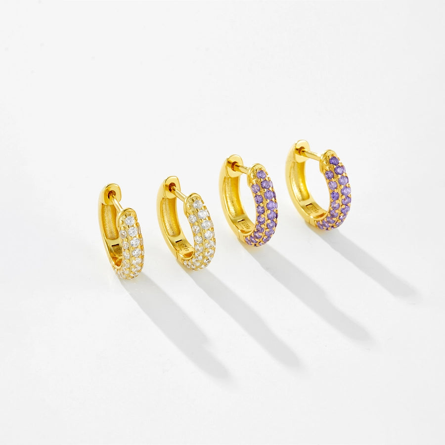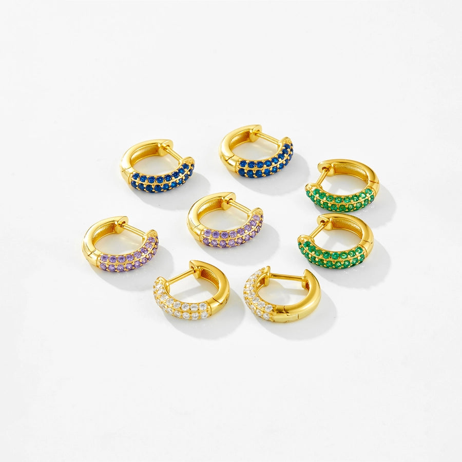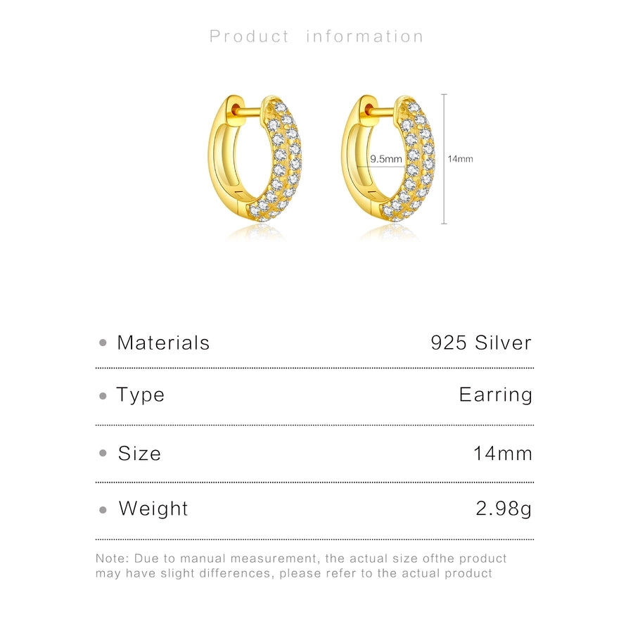 1 Pair 18K Gold Plated White Gold Plated Sterling Silver Zircon Circle Earrings