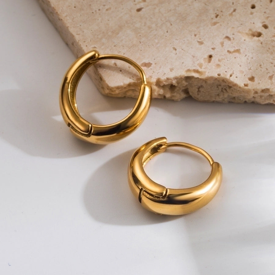 1 Pair Basic Classic Style Solid Color 304 Stainless Steel 18K Gold Plated Hoop Earrings