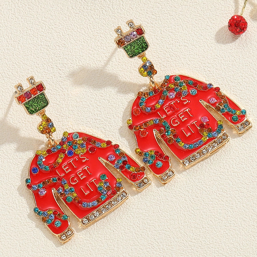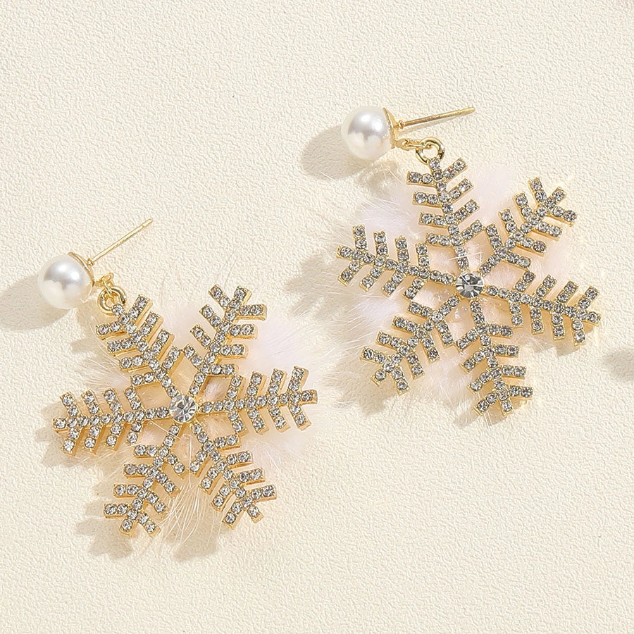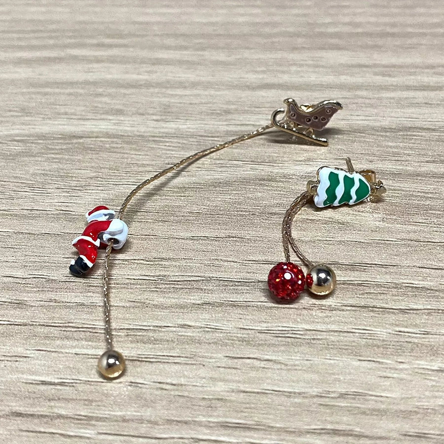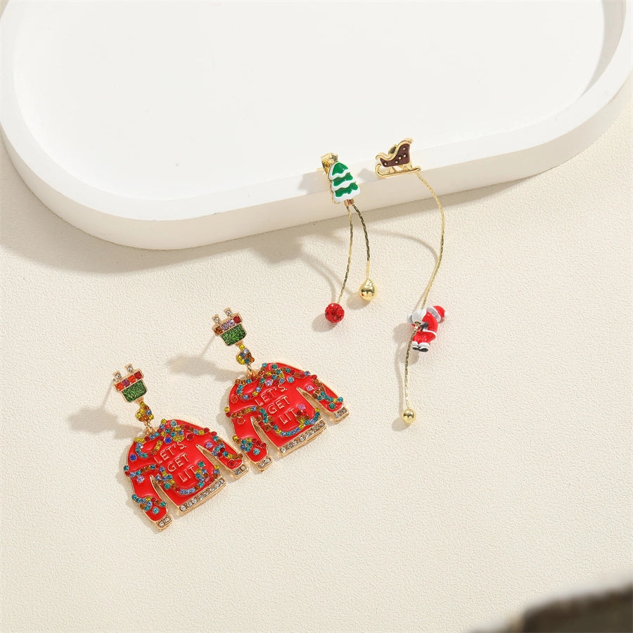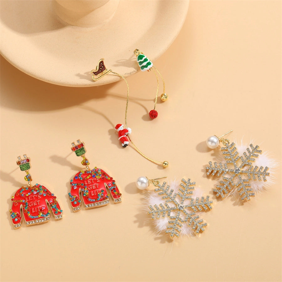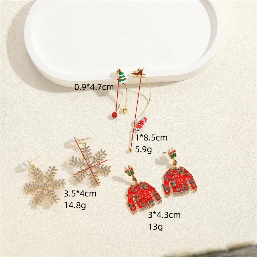 1 pair cute sweet santa claus snowflake enamel plating inlay alloy rhinestones gold drop earrings