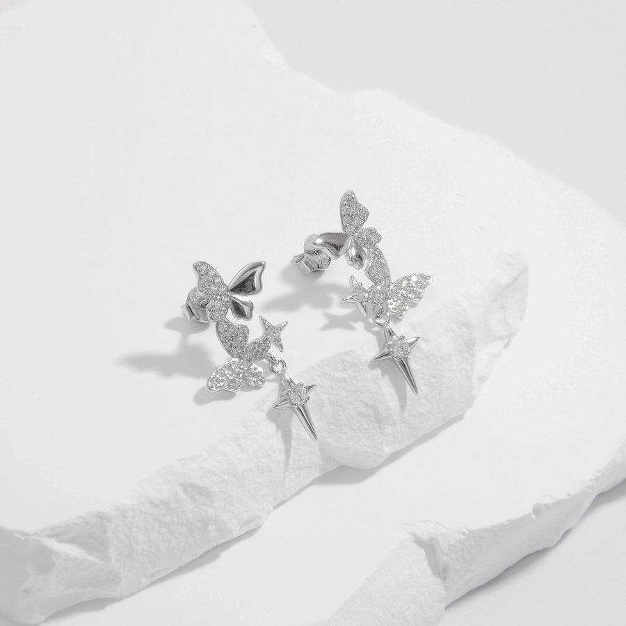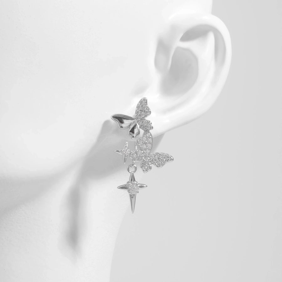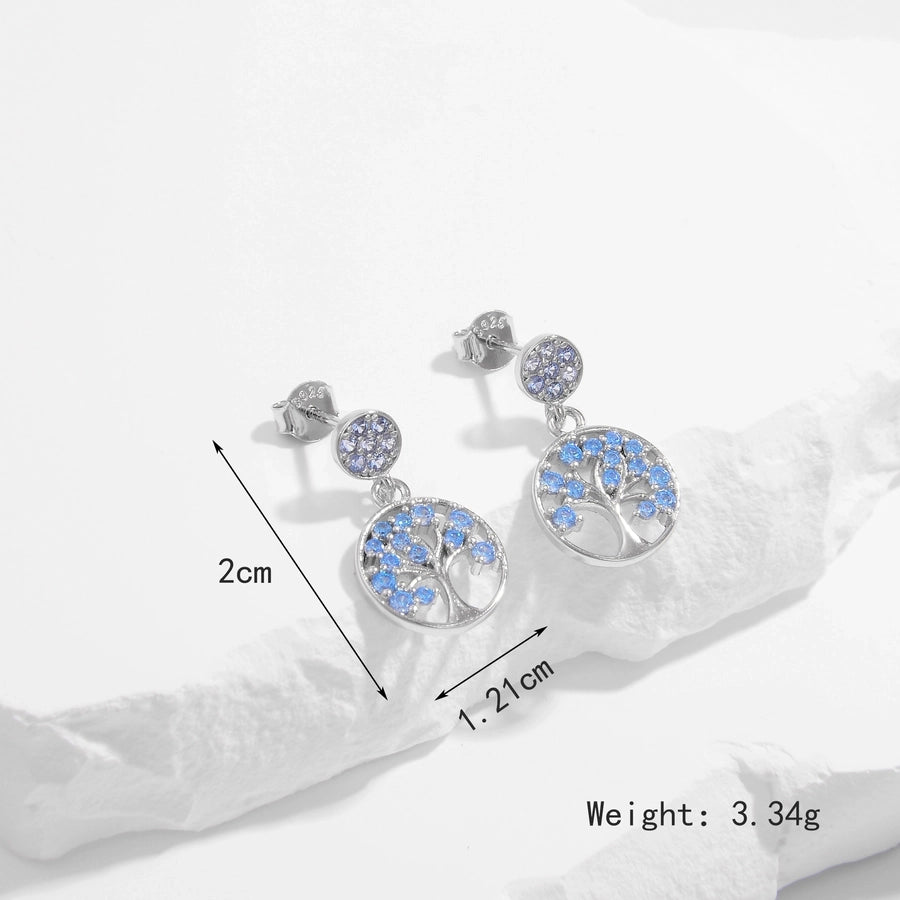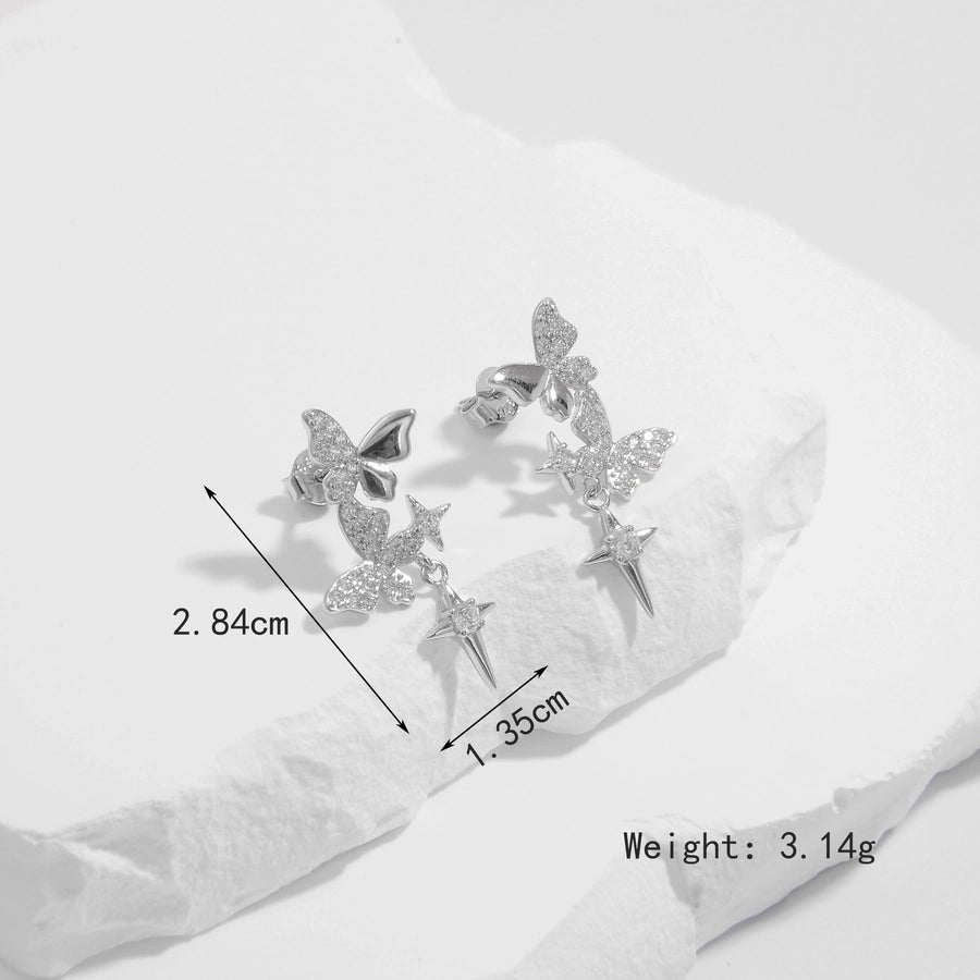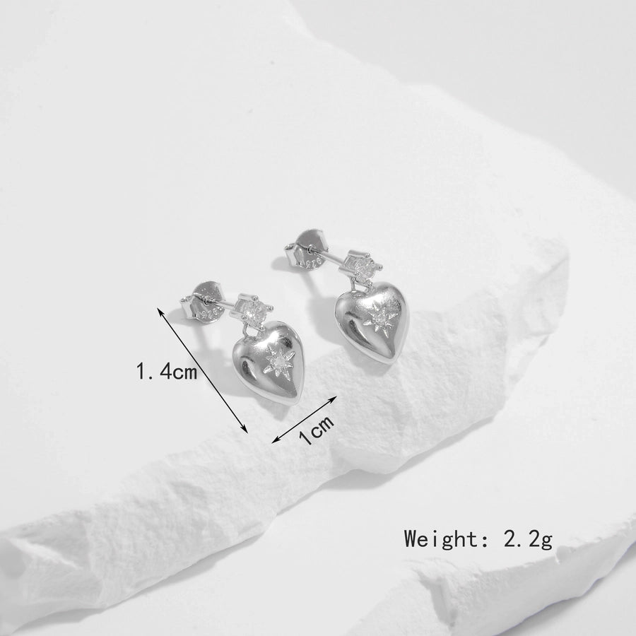 1 Pair Elegant Heart Shape Life Tree Butterfly Inlay Sterling Silver Zircon White Gold Plated Ear Studs