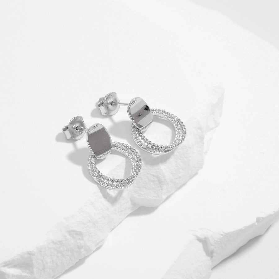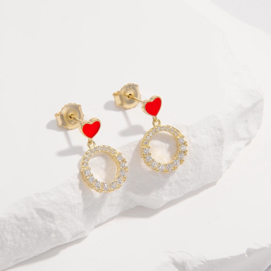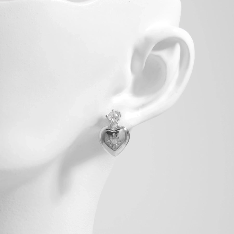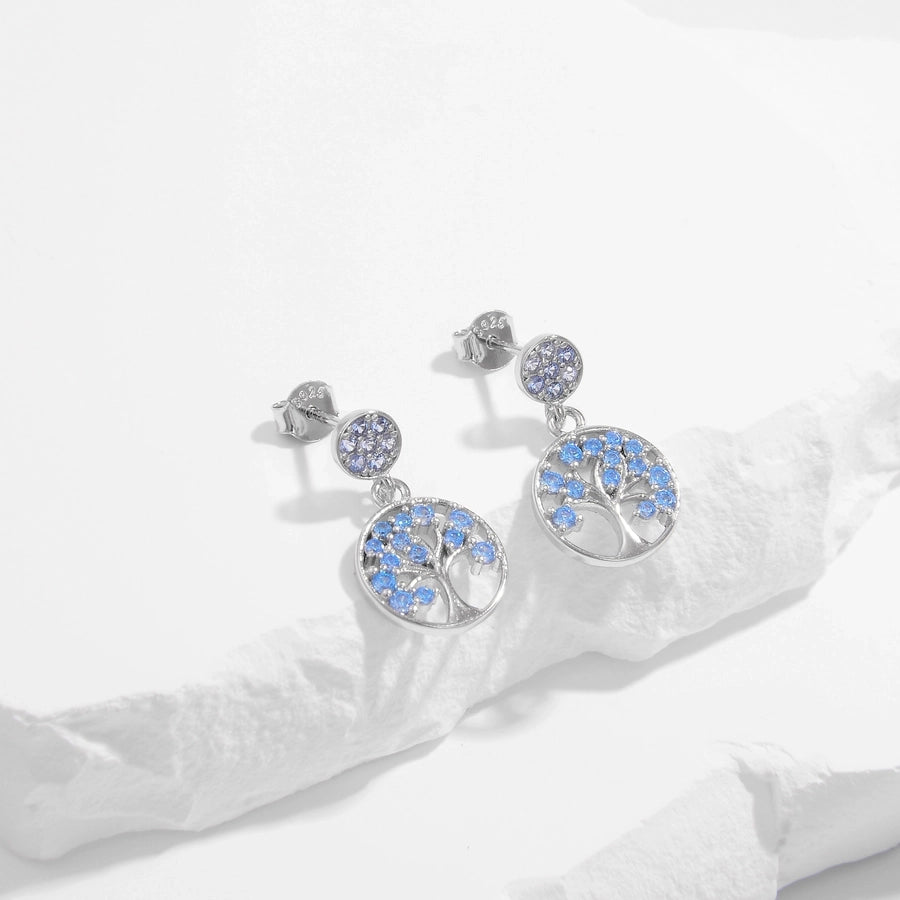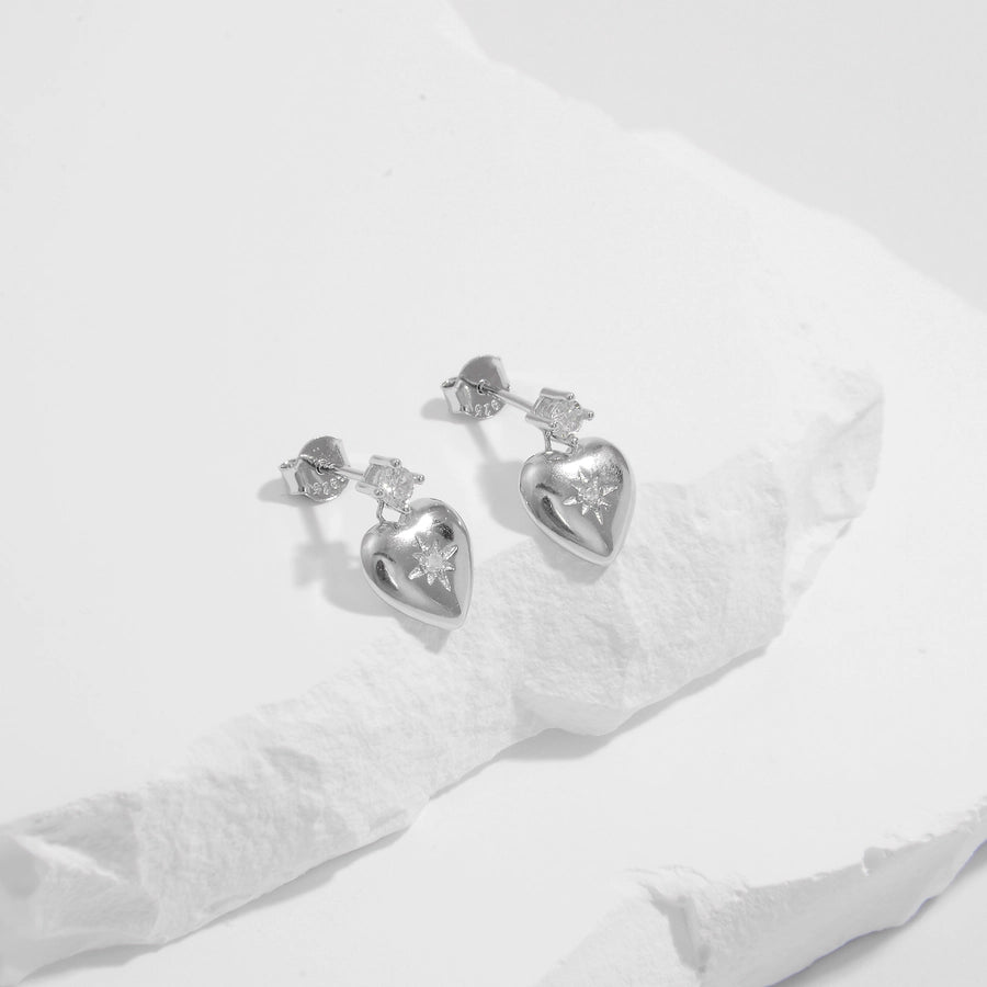1 Pair Elegant Heart Shape Life Tree Butterfly Inlay Sterling Silver Zircon White Gold Plated Ear Studs
