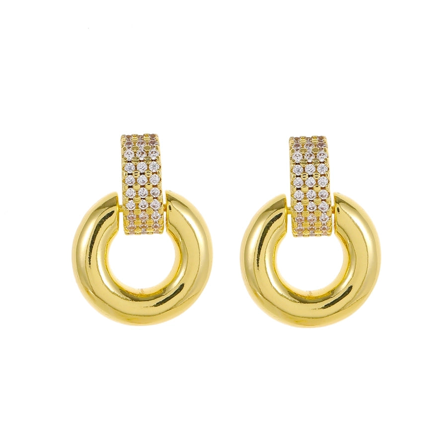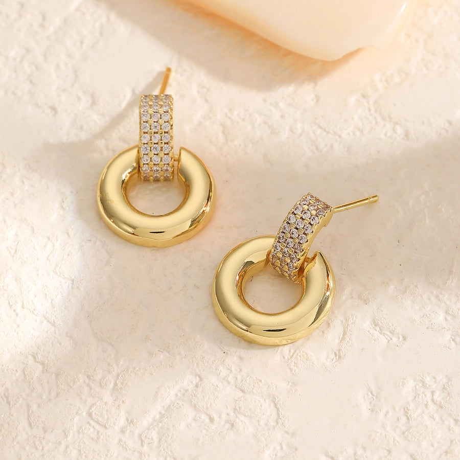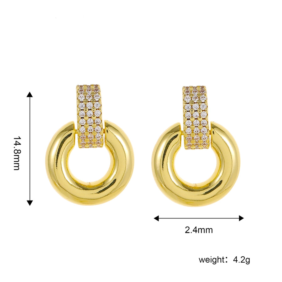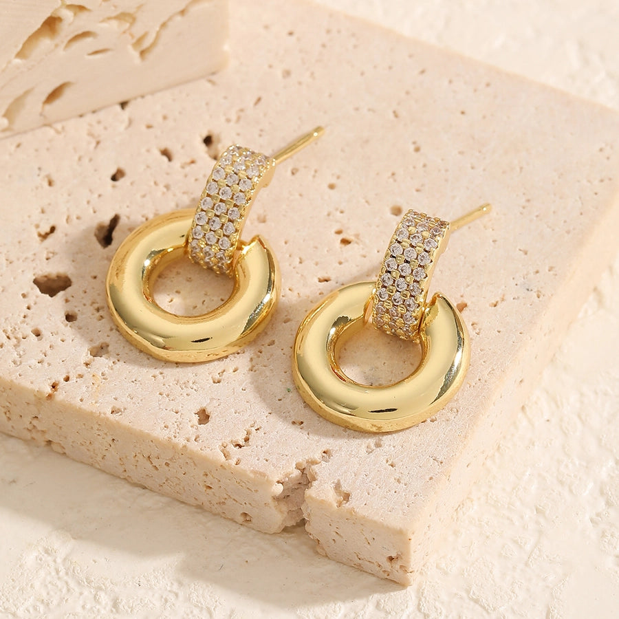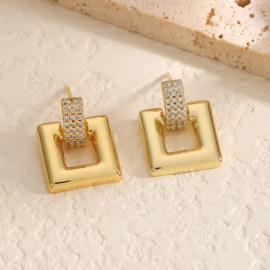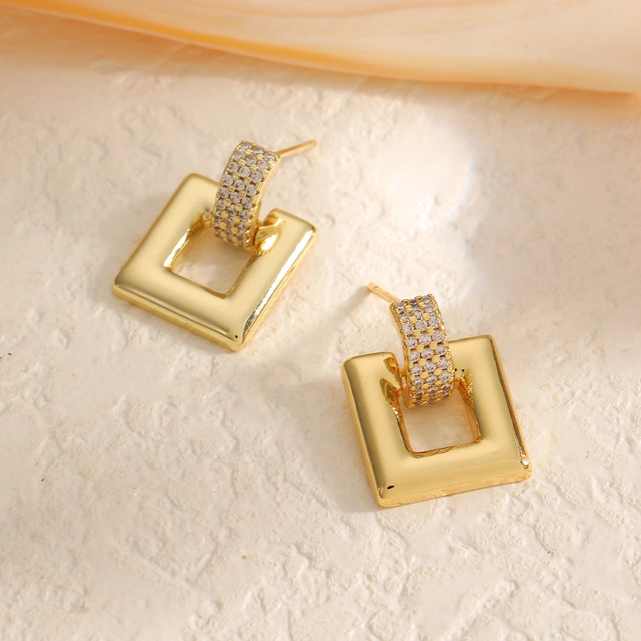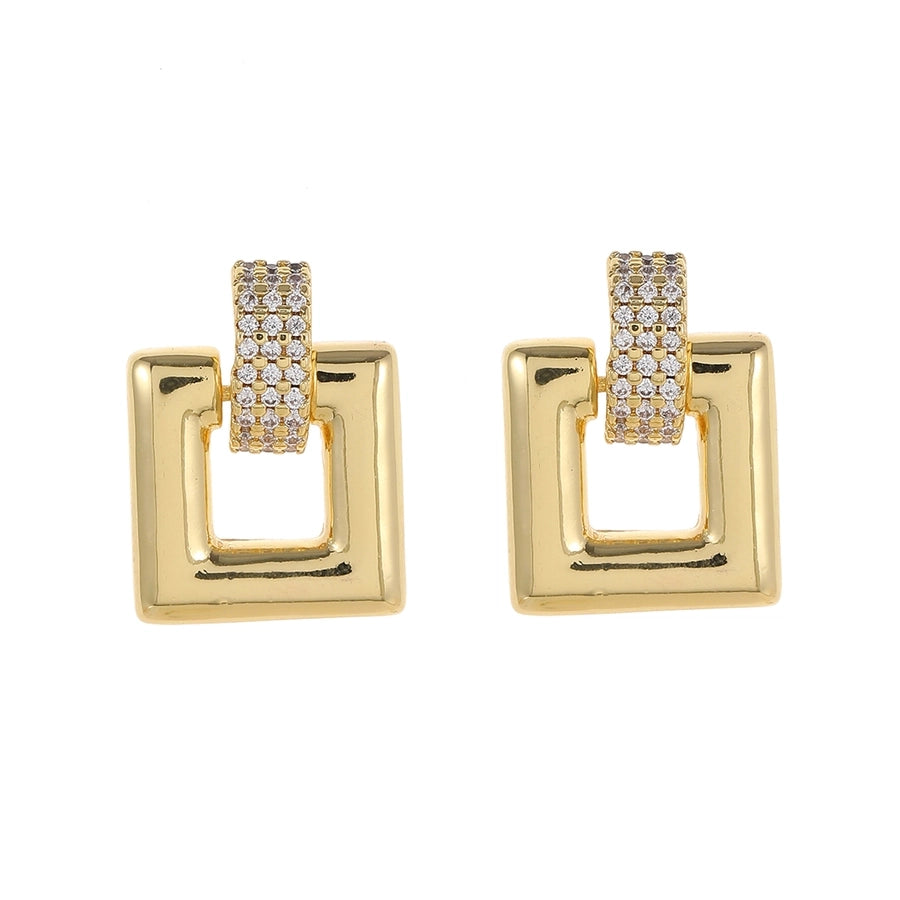 1 Pair Elegant Luxurious Round Square Copper Zircon 18K Gold Plated Drop Earrings