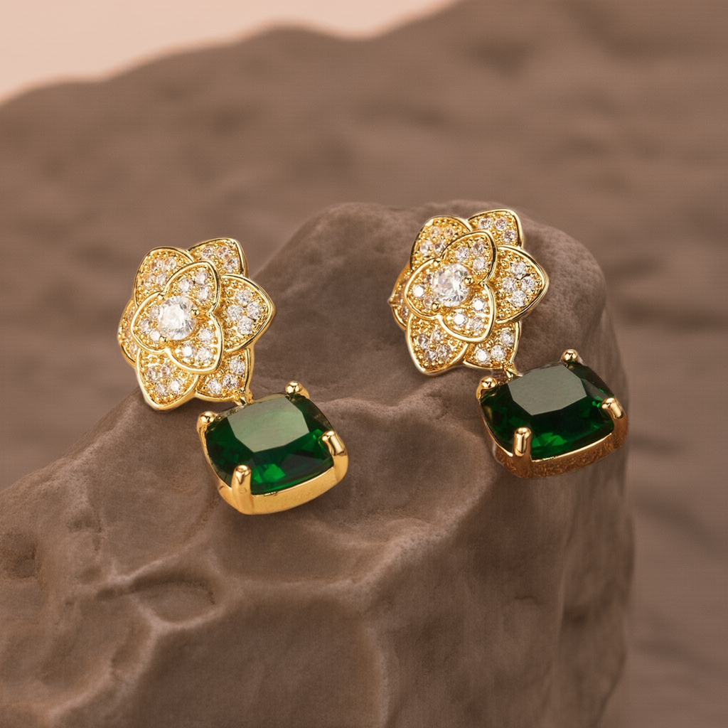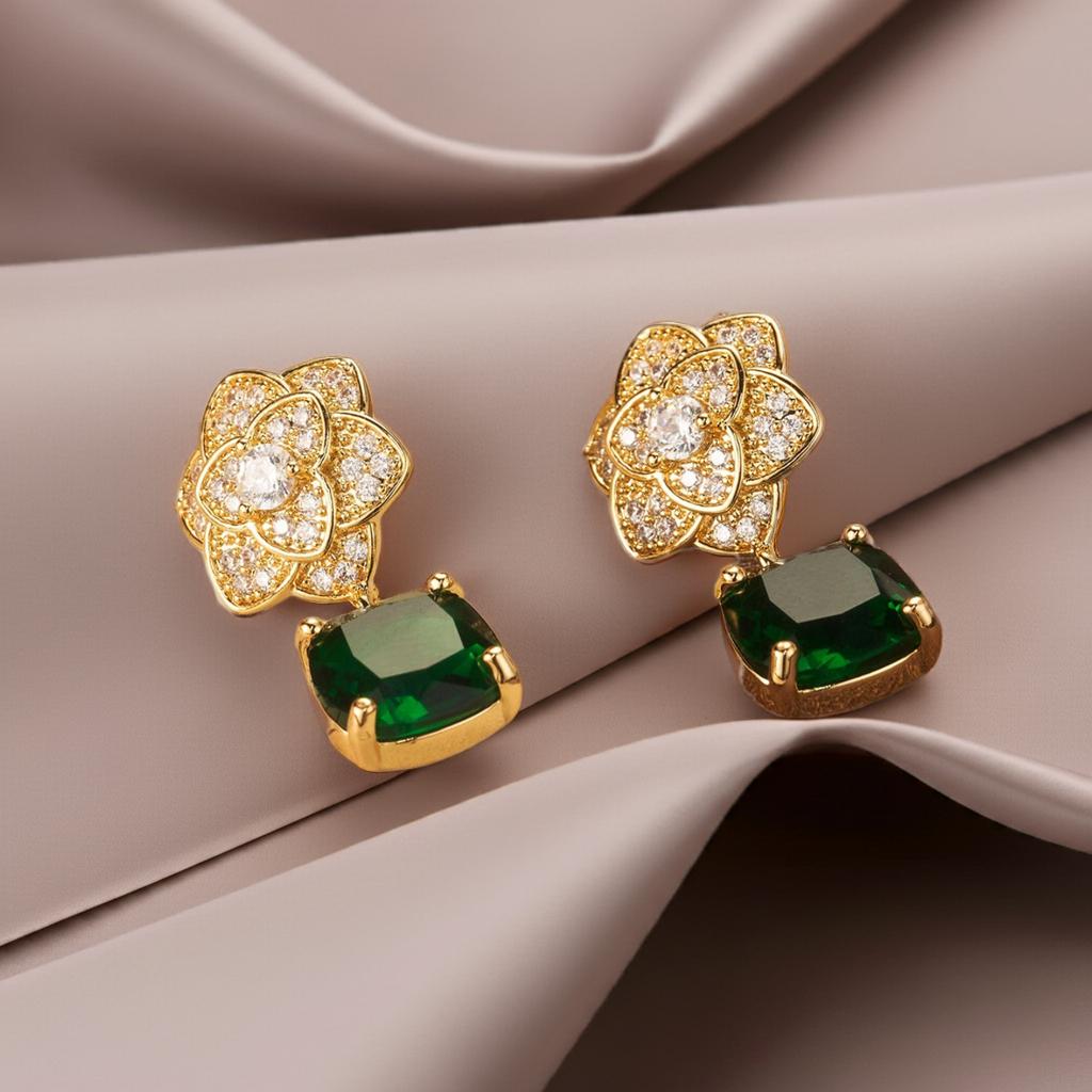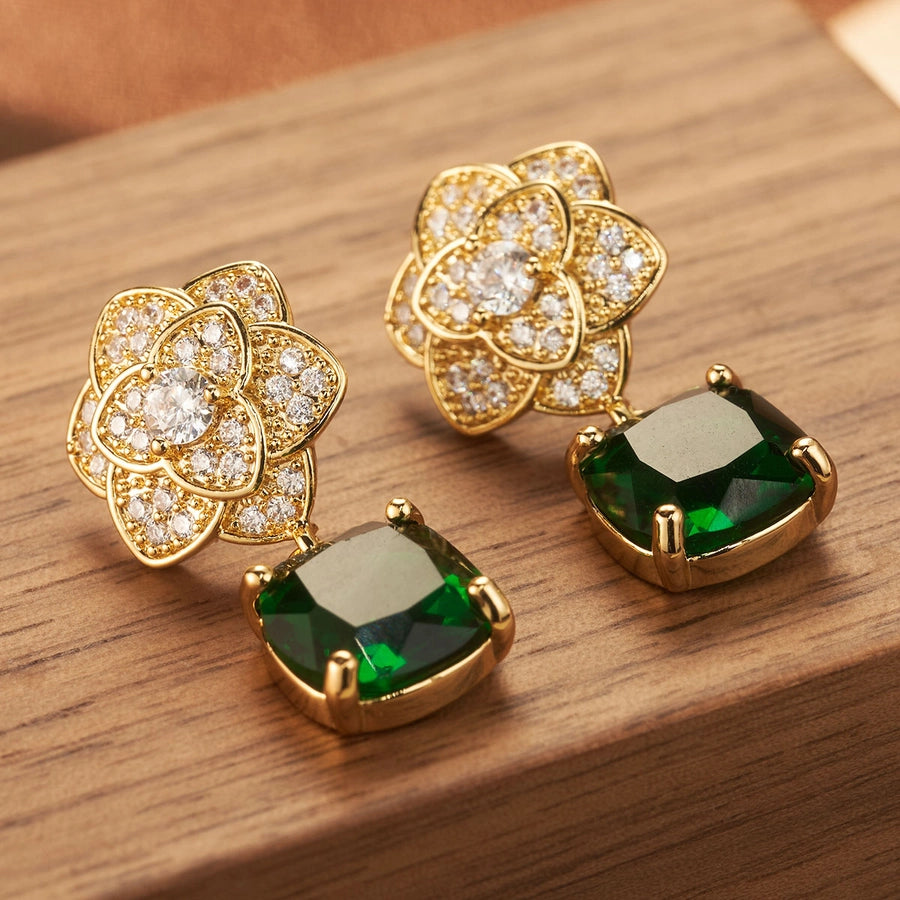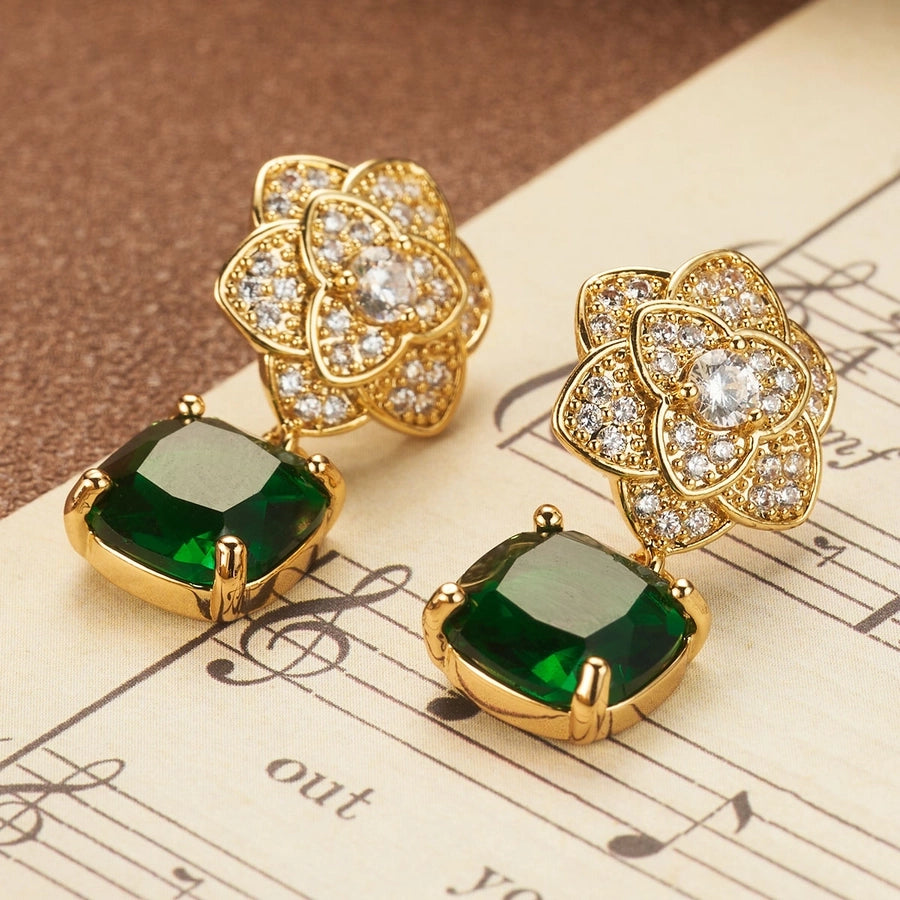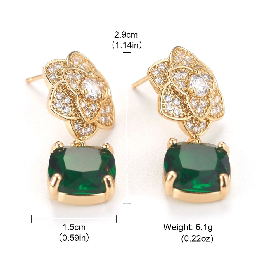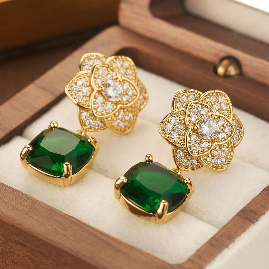 1 Pair Elegant Shiny Square Flower Plating Inlay Copper Zircon 18K Gold Plated Drop Earrings