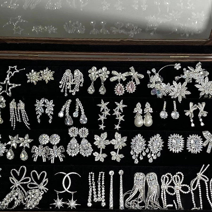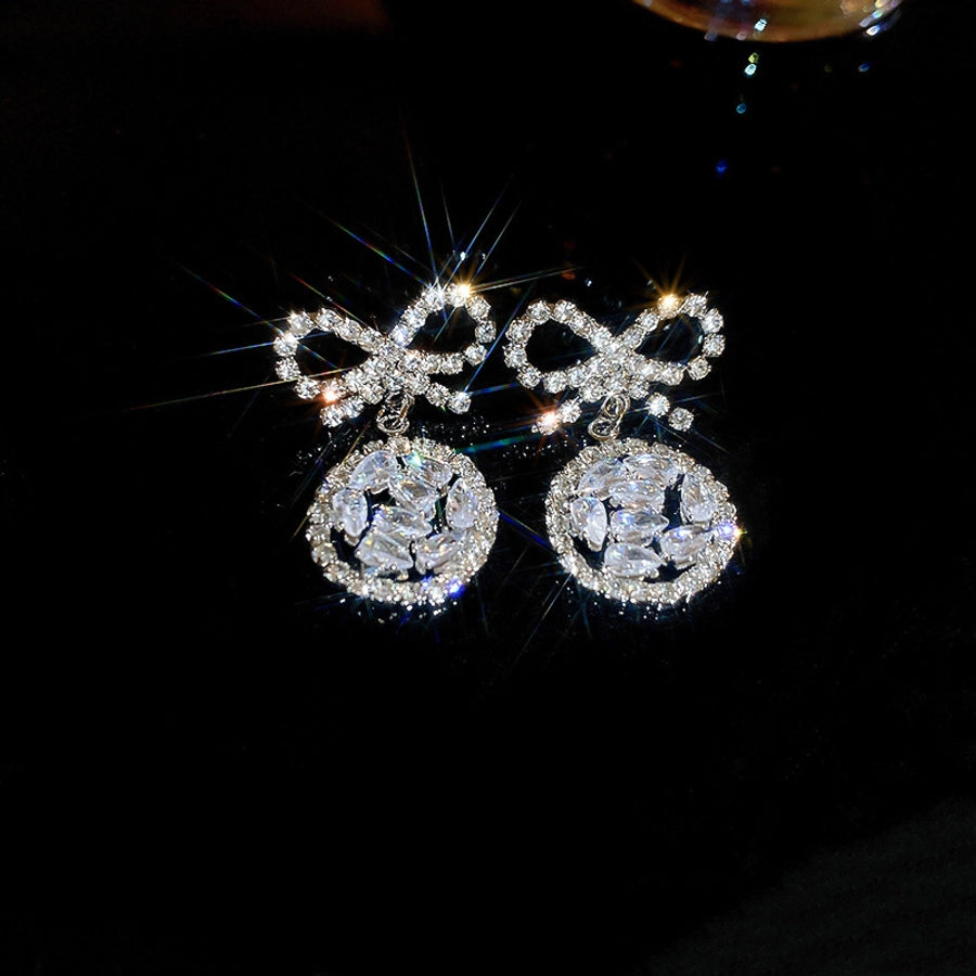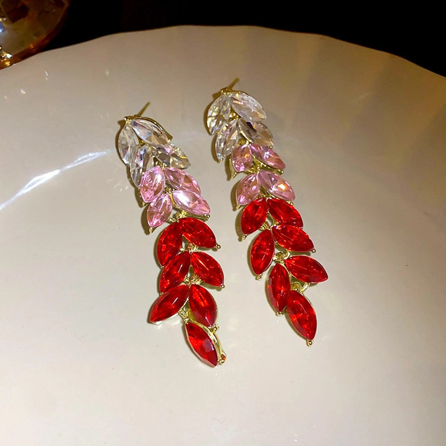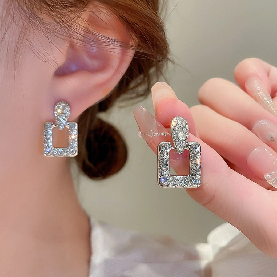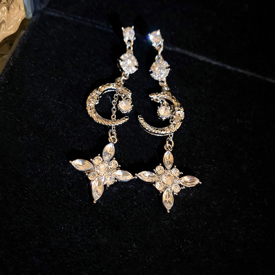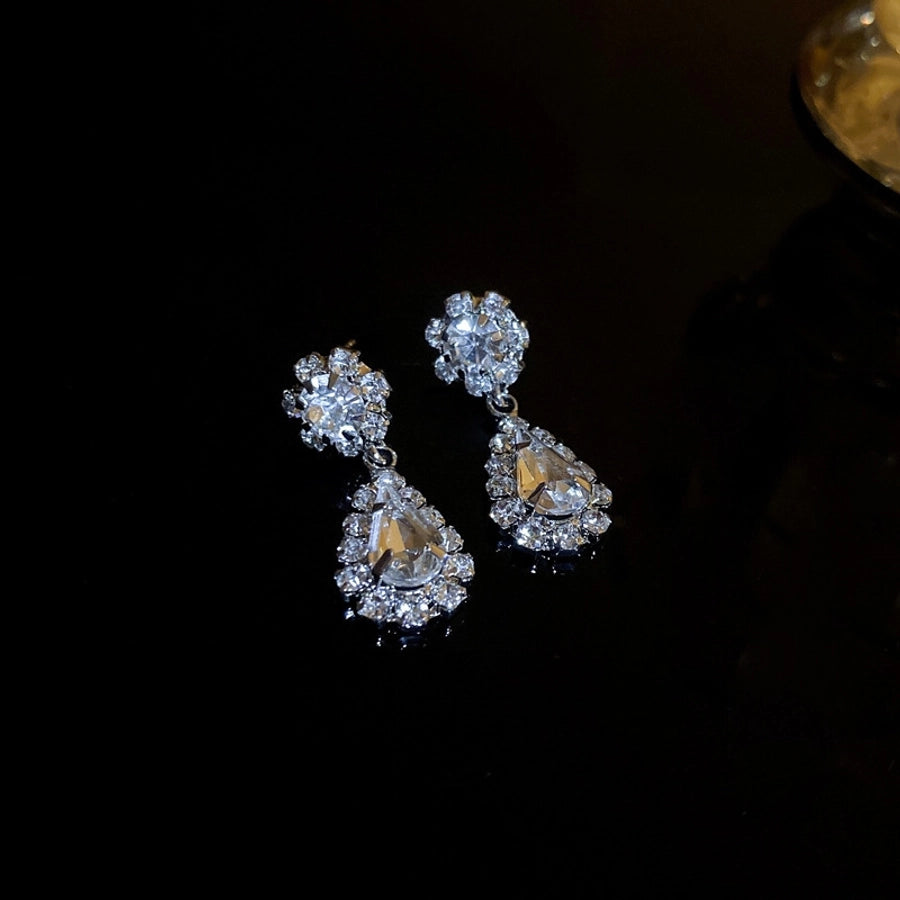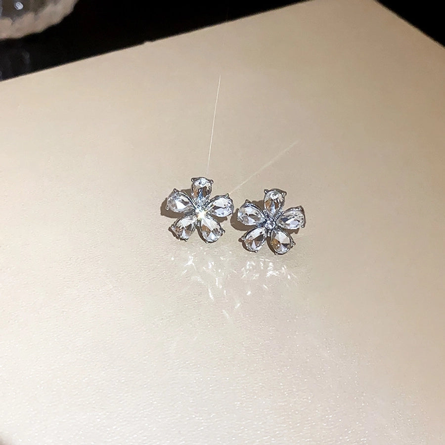 1 pair elegant sweet flower plating inlay alloy rhinestones drop earrings