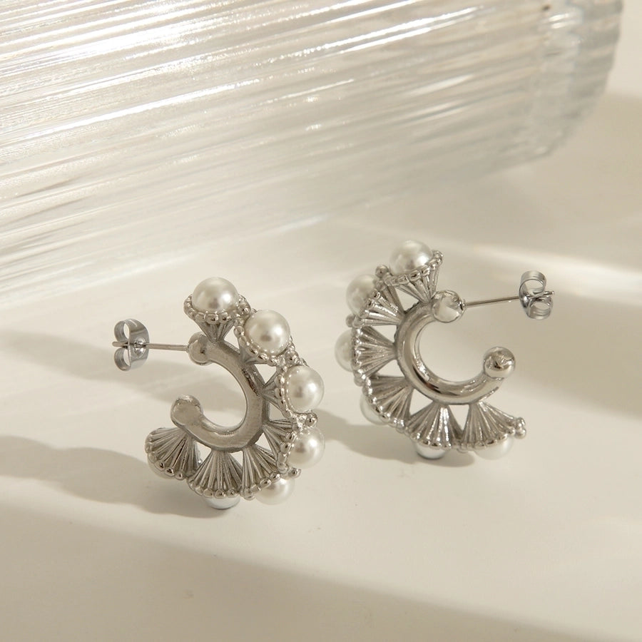 1 Pair Luxurious French Style Commute Geometric Plating 304 Stainless Steel Artificial Pearls 18K Gold Plated Earrings