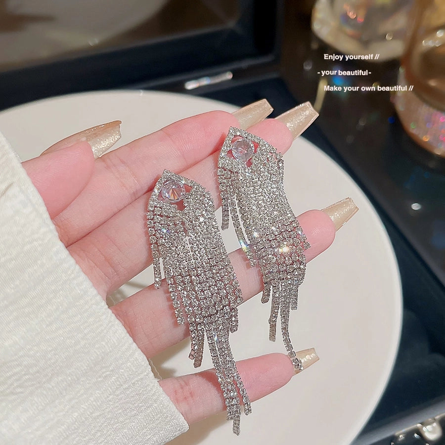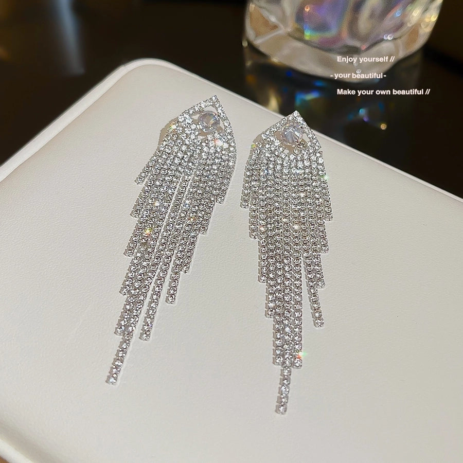 1 Pair Luxurious Sexy Shiny Geometric Tassel Inlay Copper Rhinestones Copper Earrings