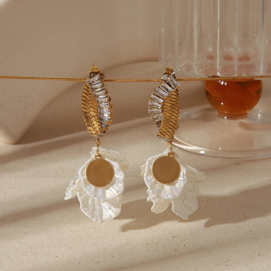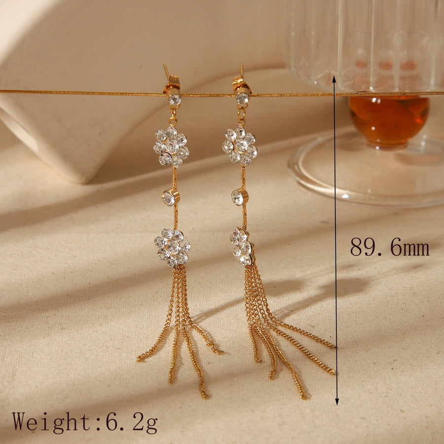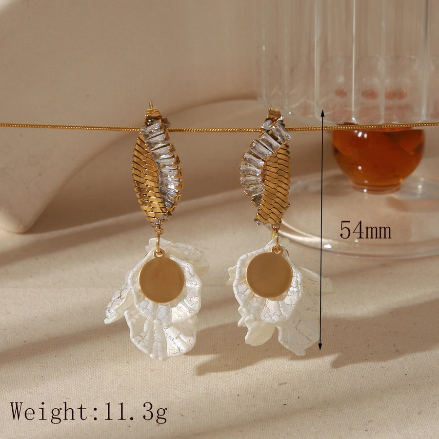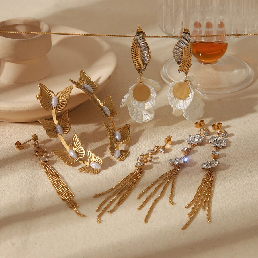 1 Pair Luxurious Simple Style Commute Flower Butterfly chain Inlay 304 Stainless Steel Acrylic Imitation Pearl Zircon 18K Gold Plated Drop Earrings