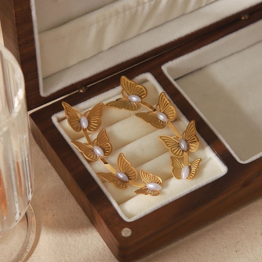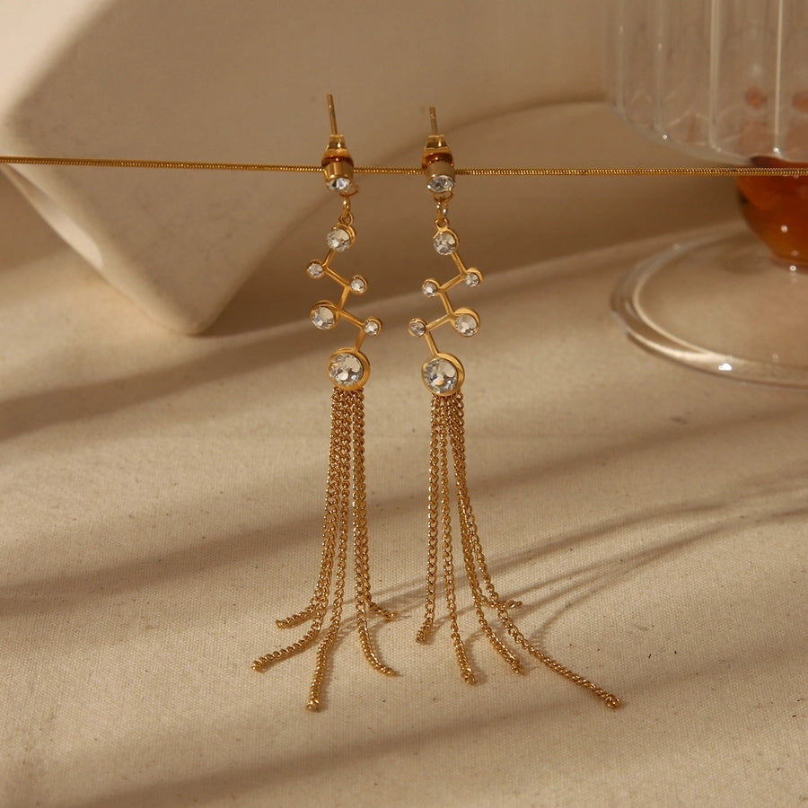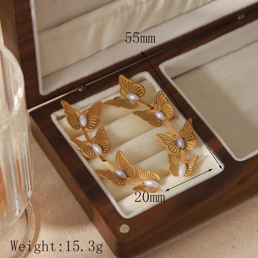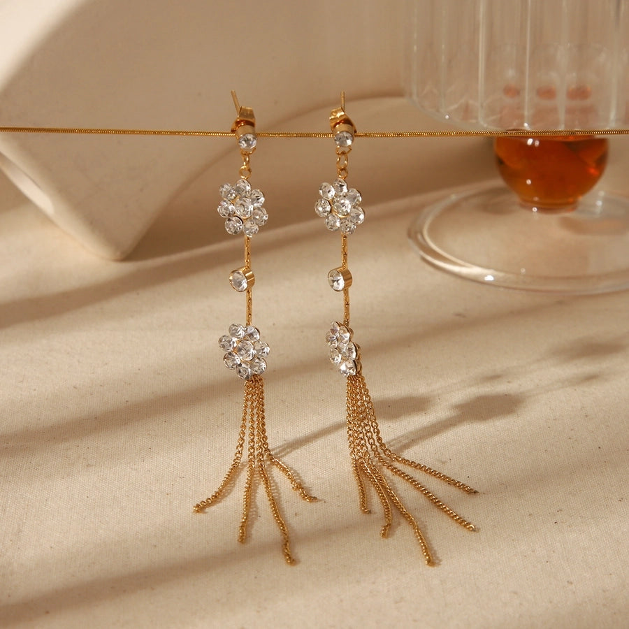 1 Pair Luxurious Simple Style Commute Flower Butterfly chain Inlay 304 Stainless Steel Acrylic Imitation Pearl Zircon 18K Gold Plated Drop Earrings