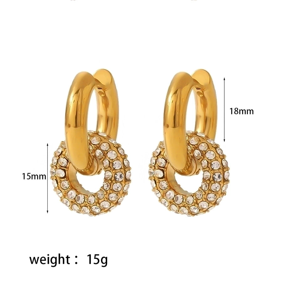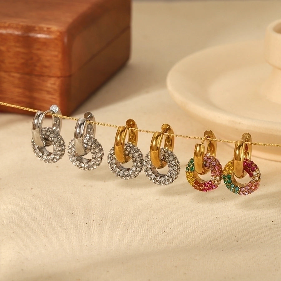 1 Pair Retro Circle Polishing Plating Inlay 304 Stainless Steel Zircon 18K Gold Plated Earrings