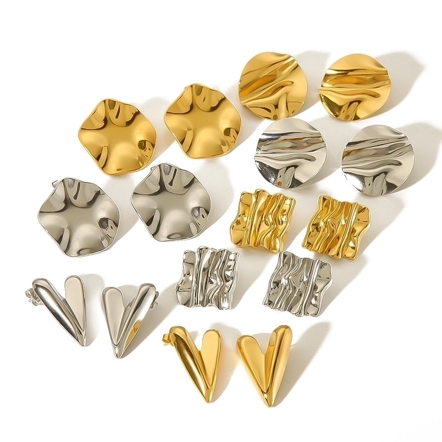 1 Pair Simple Style Quadrilateral Circle Heart Shape Polishing Plating 304 Stainless Steel 18K Gold Plated Ear Studs