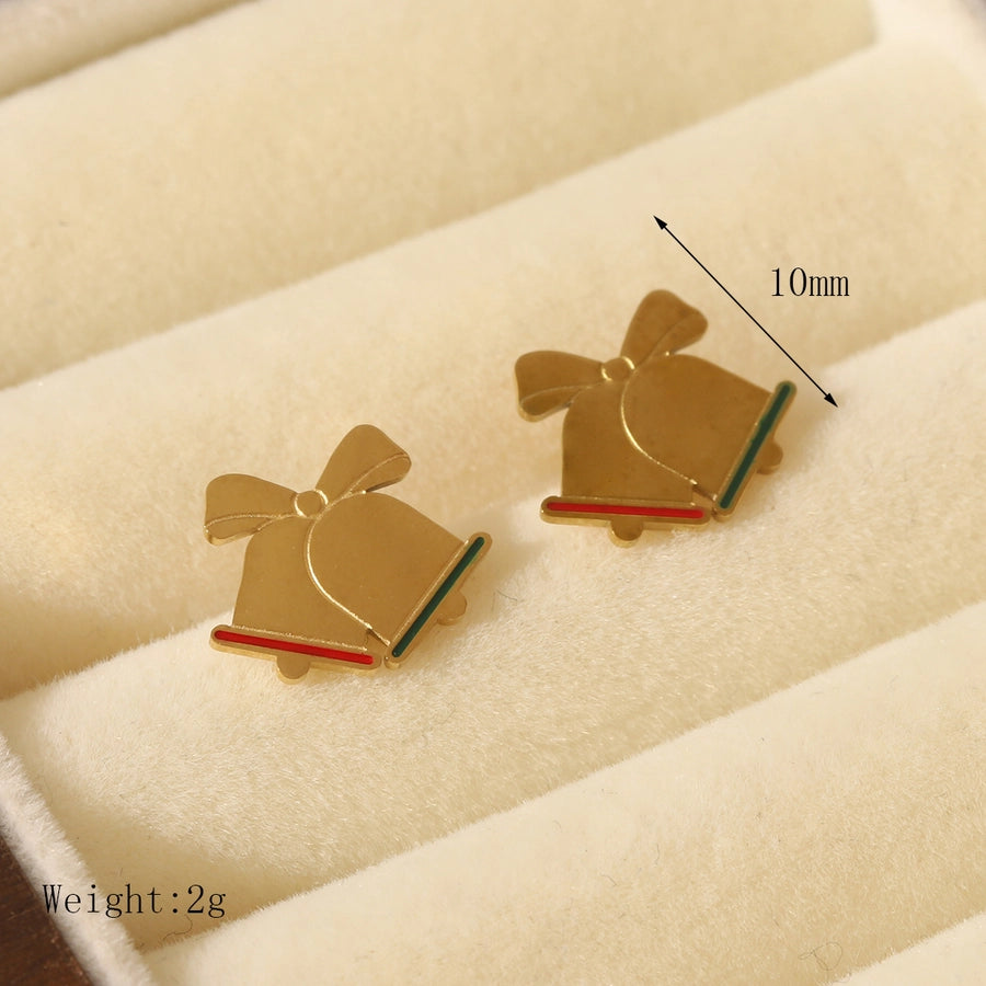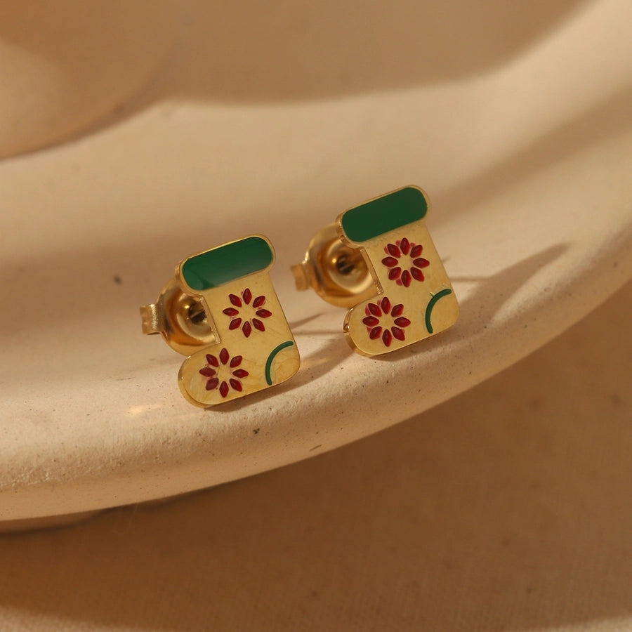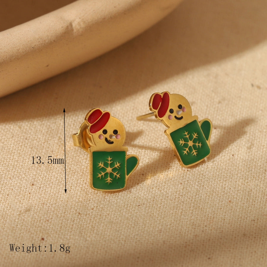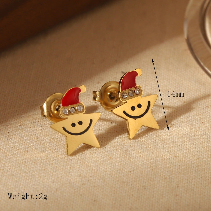 1 Pair Sweet Simple Style Christmas Tree Santa Claus Enamel 304 Stainless Steel Zircon 14K Gold Plated Ear Studs