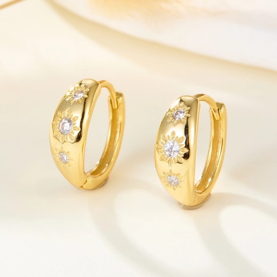1 Pair Vintage Style Simple Style Roman Style Star Inlay Sterling Silver Zircon White Gold Plated Gold Plated Earrings
