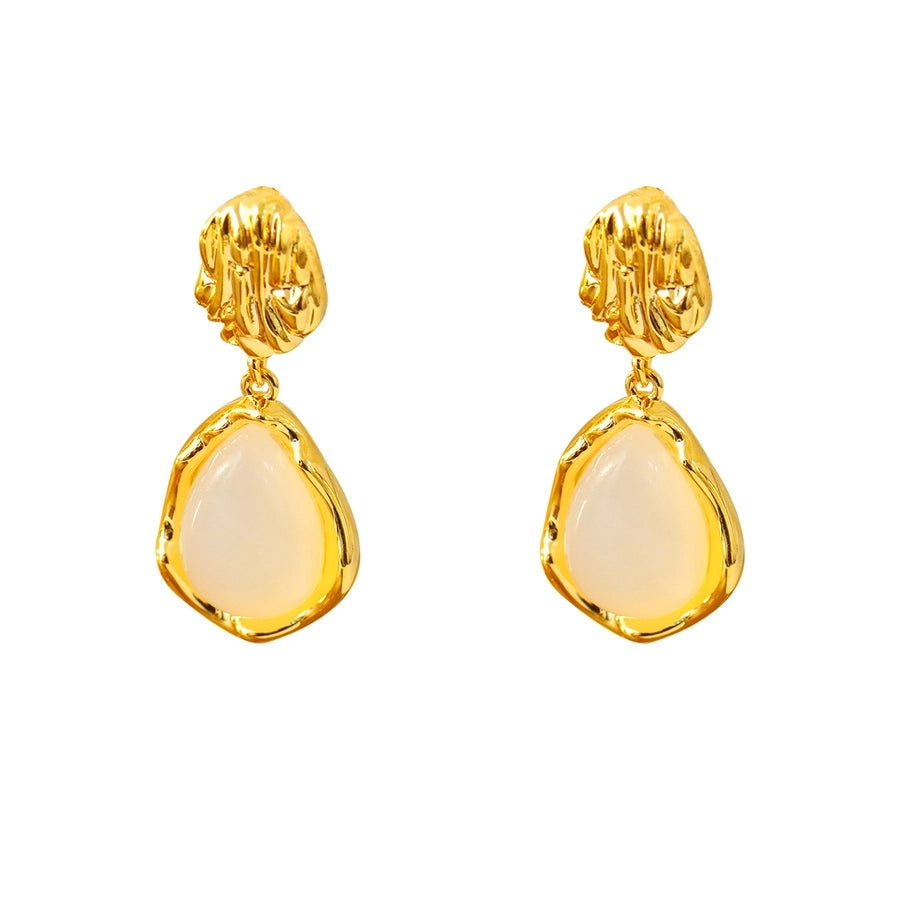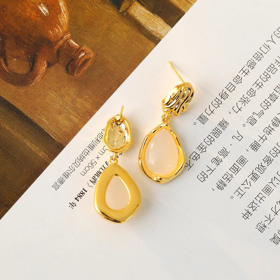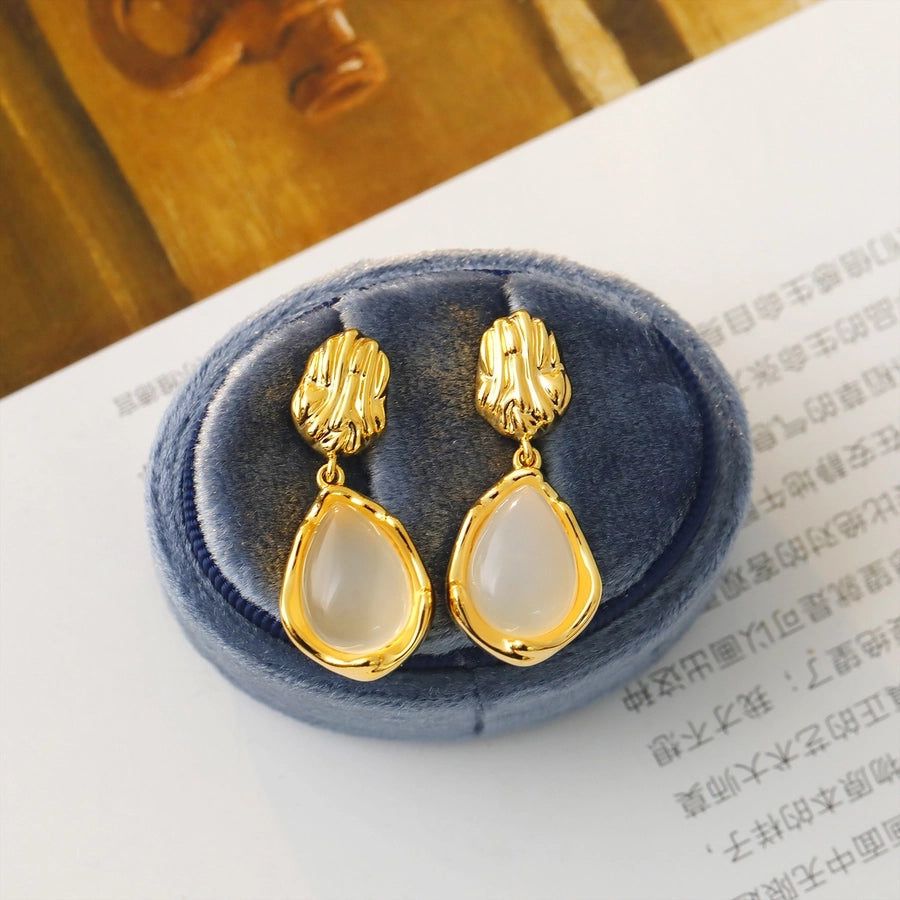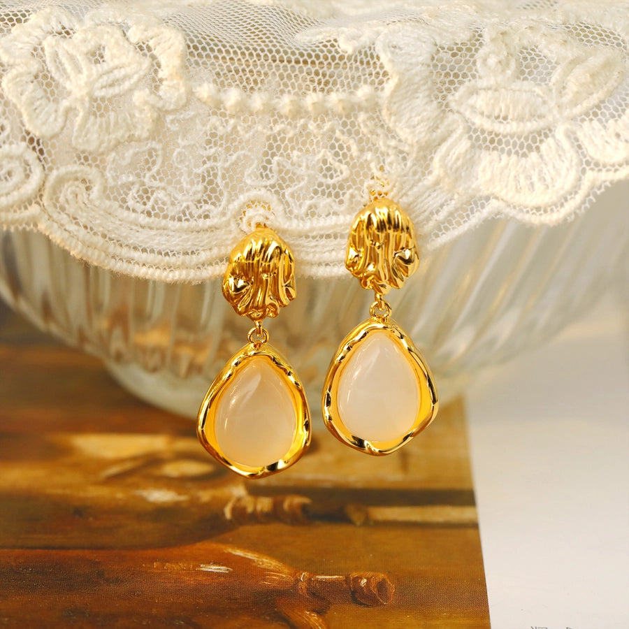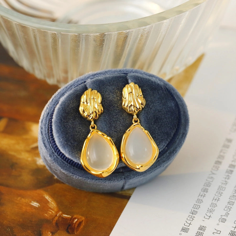 1 Pair Vintage Style Simple Style Water Droplets Plating Inlay Copper Agate 18K Gold Plated Drop Earrings