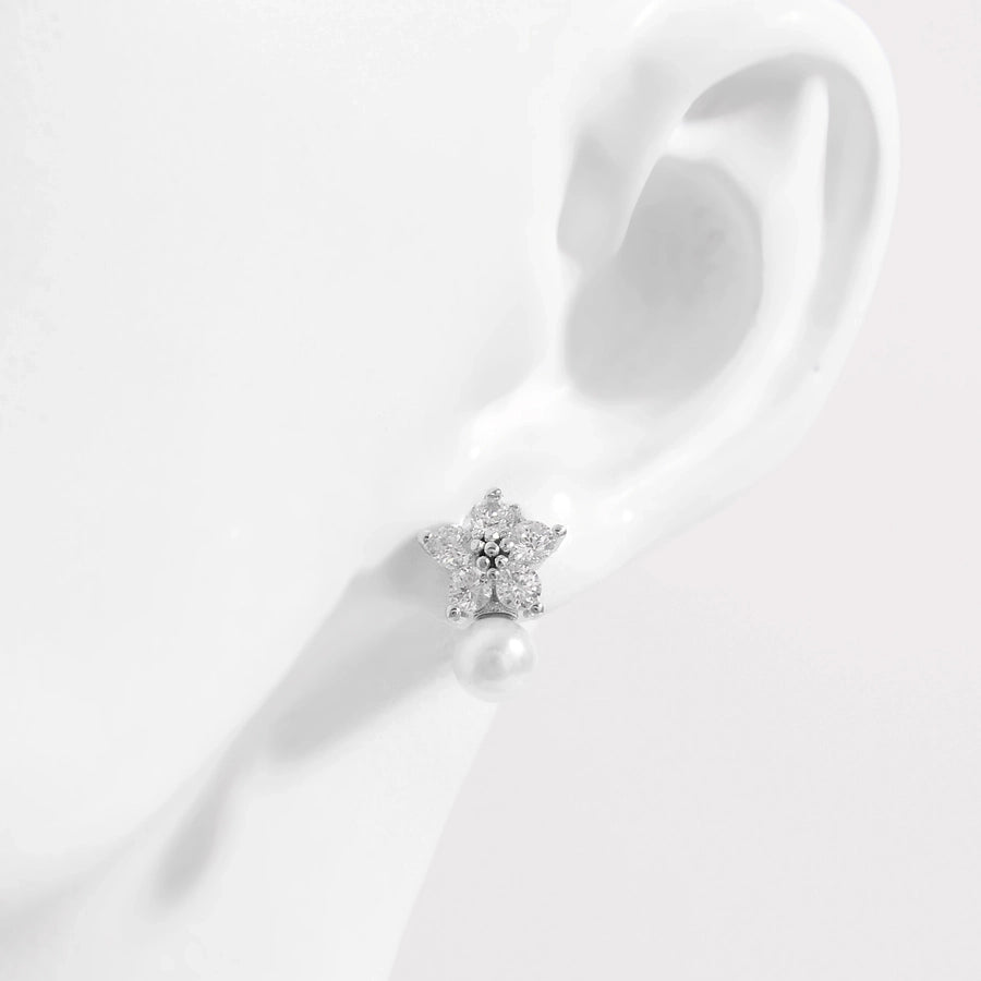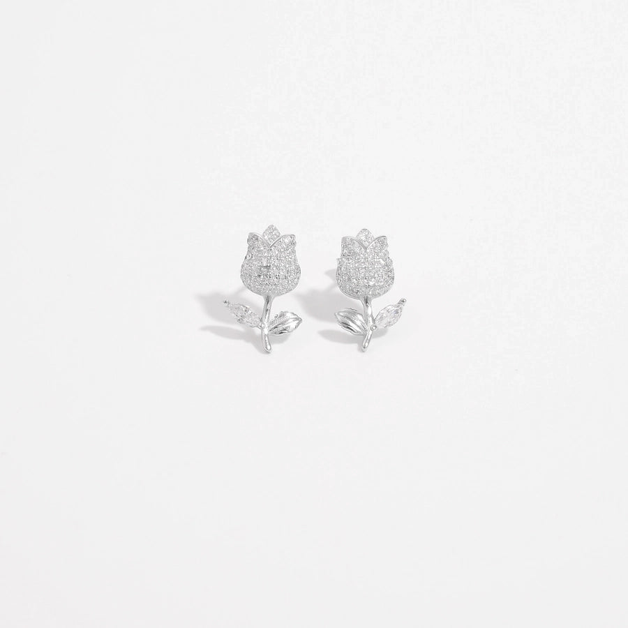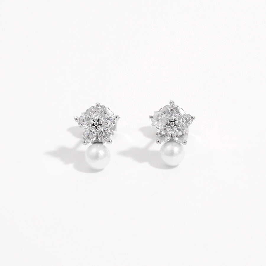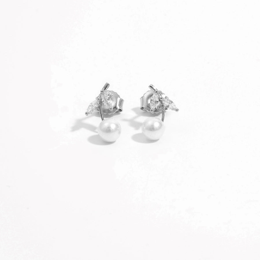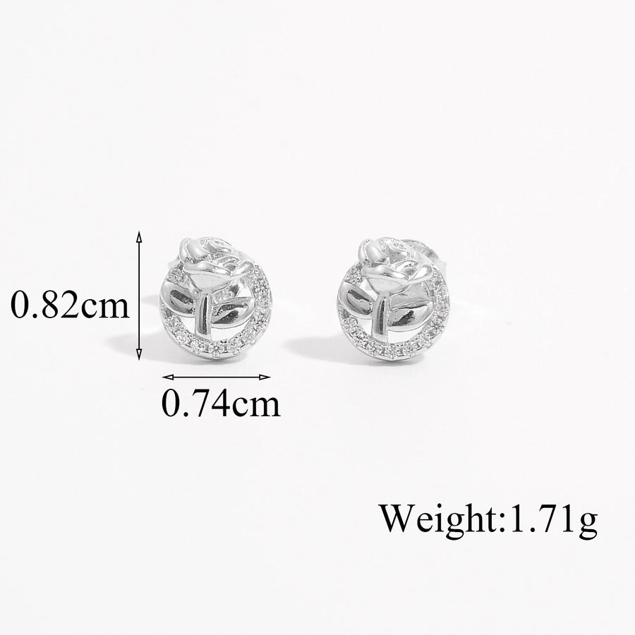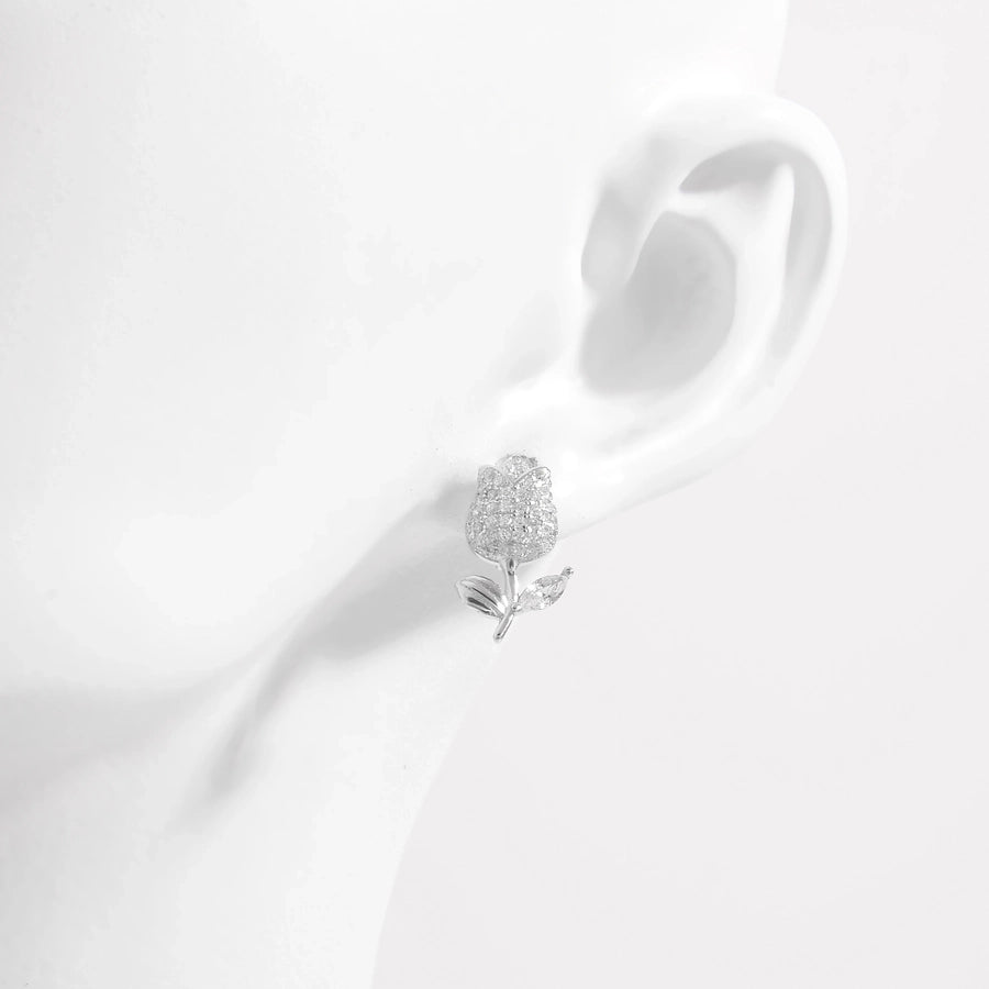 1 Pair White Gold Plated Sterling Silver Zircon Flower Butterfly Ear Studs