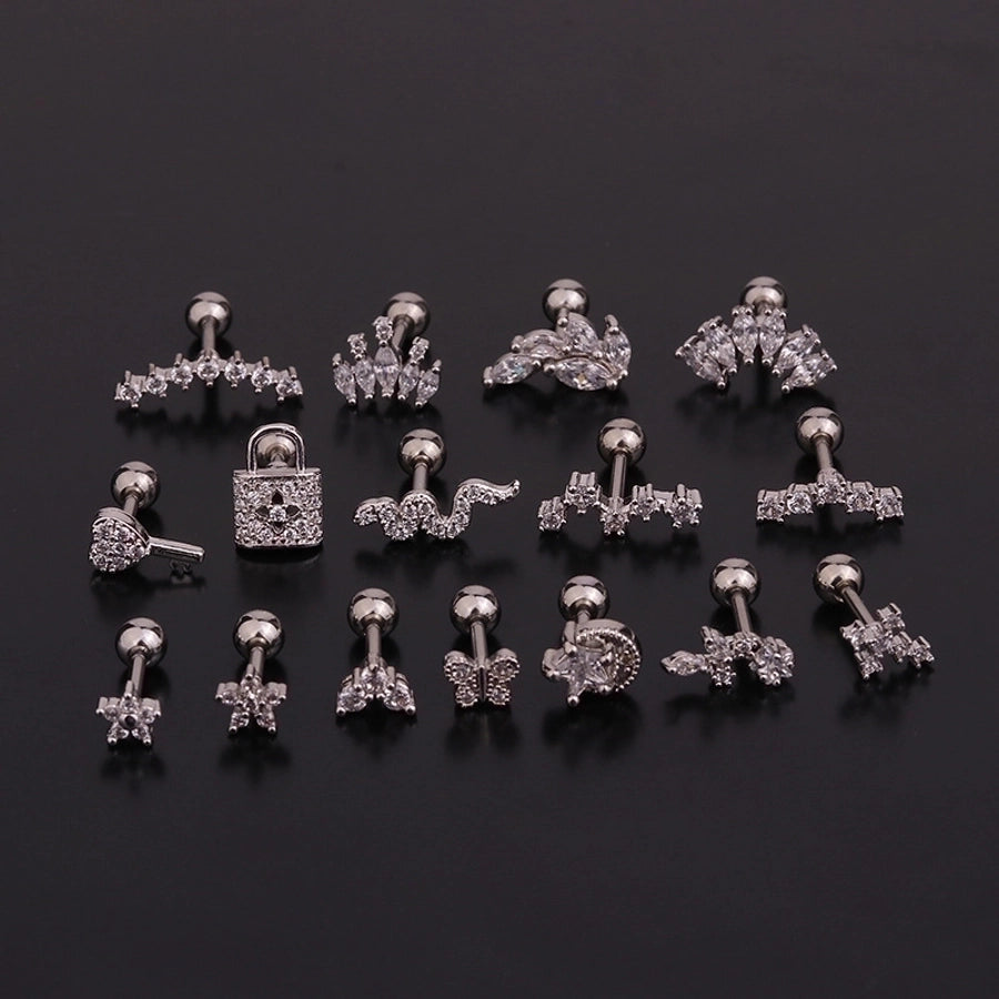 1 Piece Ear Cartilage Rings & Studs Geometric 316L Stainless Steel Copper Inlaid Zircon