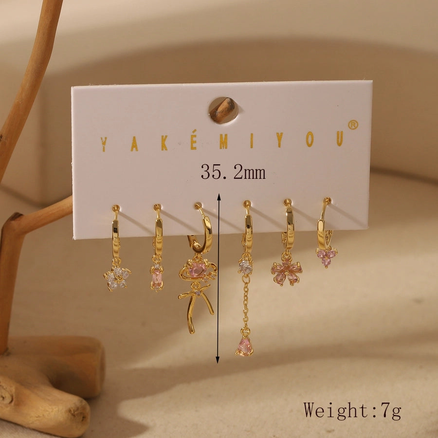 1 Set Elegant Simple Style Four Leaf Clover Bow Knot Inlay Copper Zircon 14K Gold Plated Ear Studs
