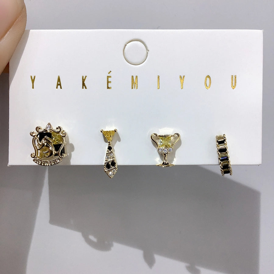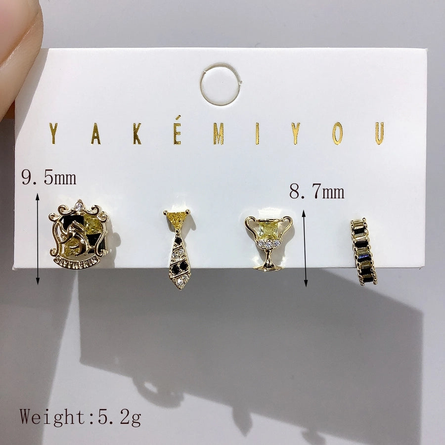 1 Set Yakemiyou Cool Style Cartoon Inlay Copper Zircon 14K Gold Plated Ear Studs