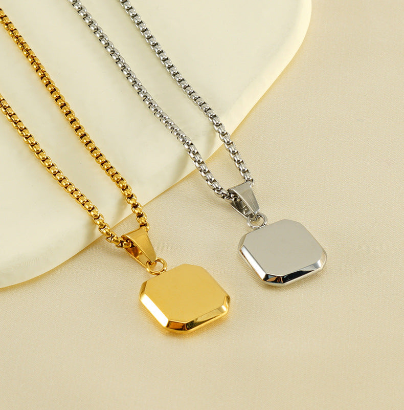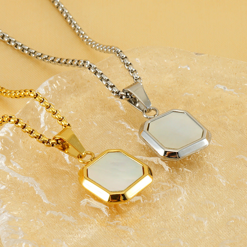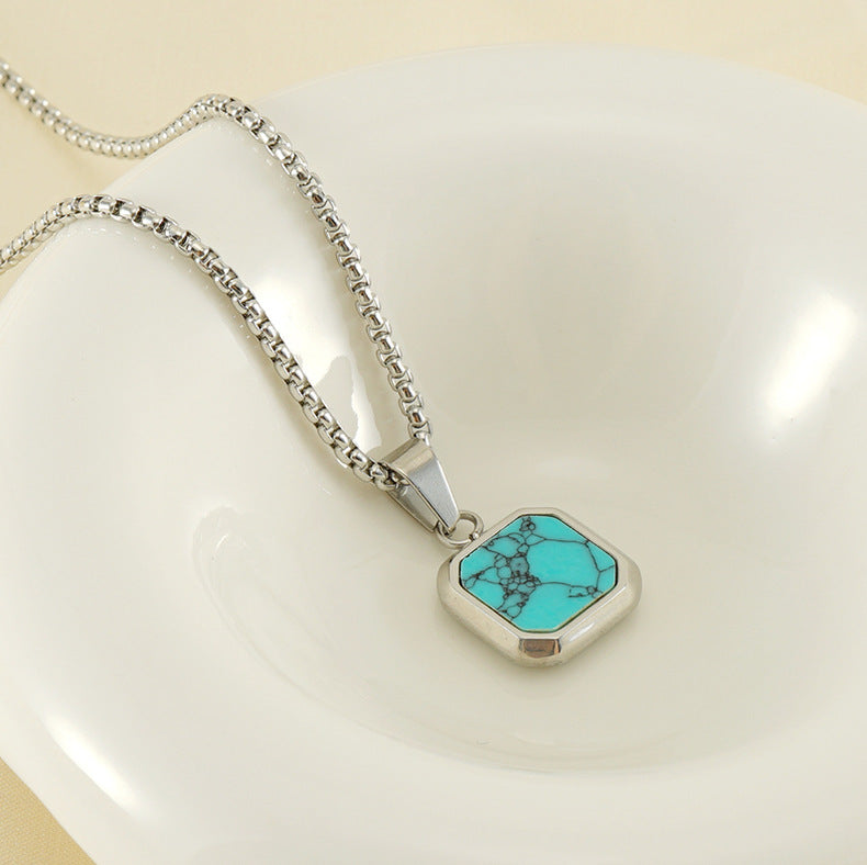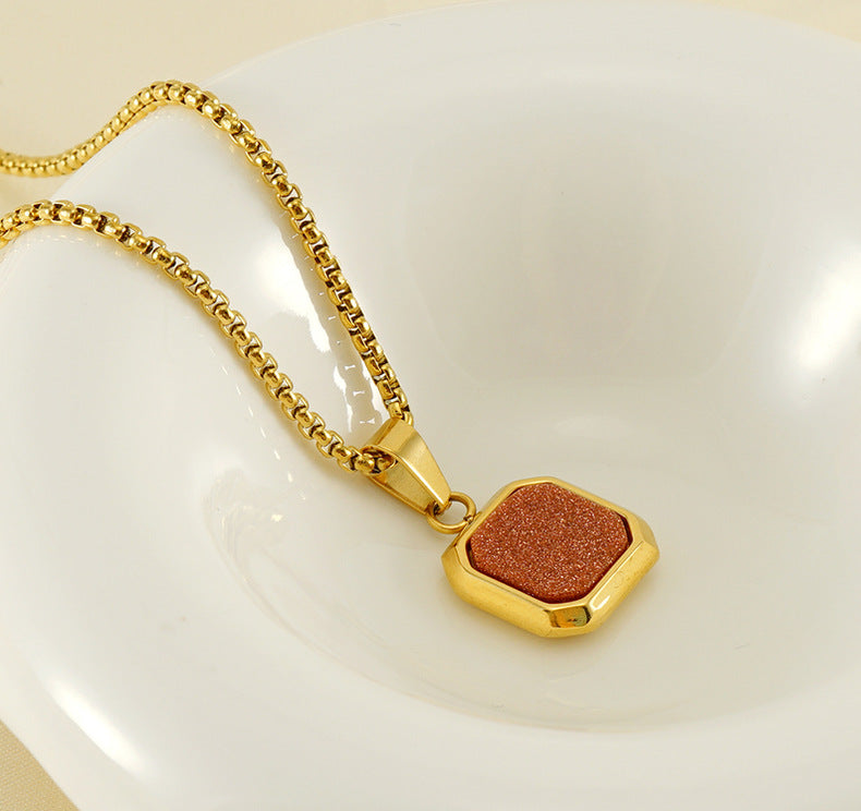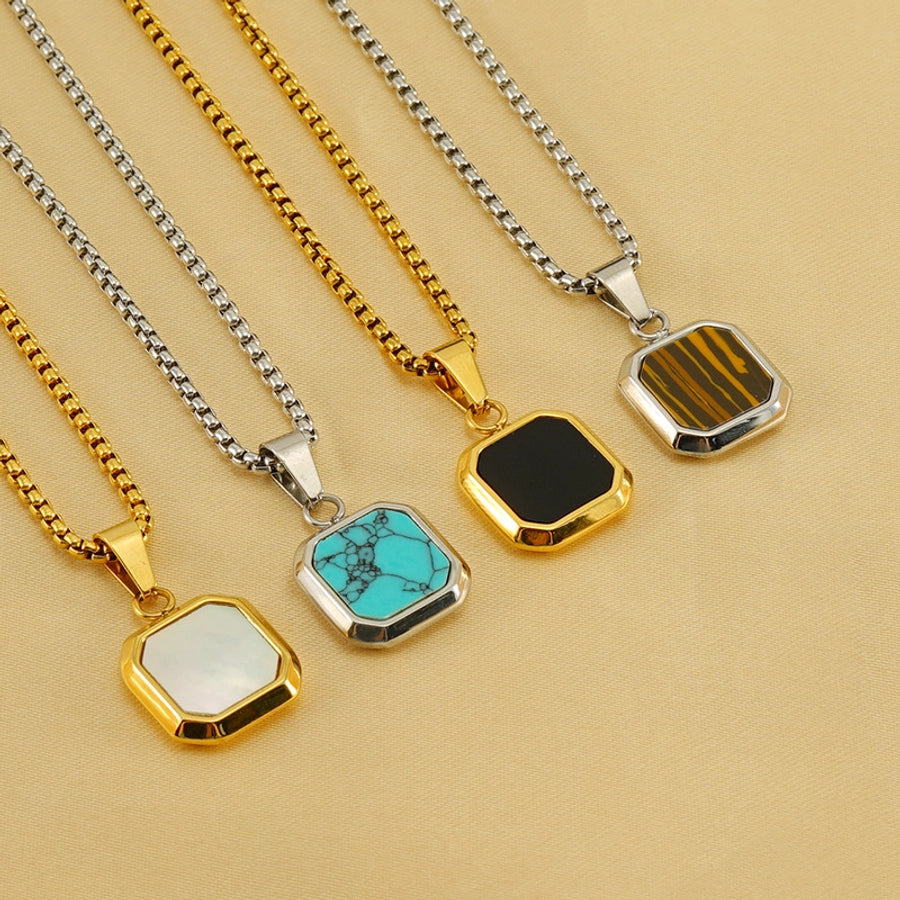 304 Stainless Steel Casual Simple Style Plating Geometric Natural Stone Pendant Necklace
