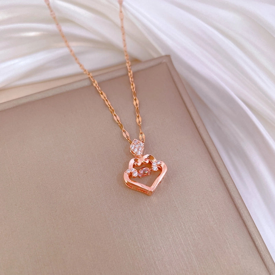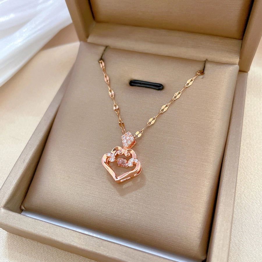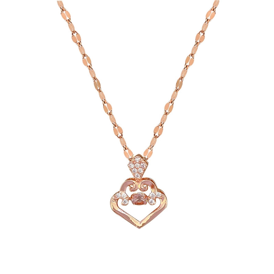 304 Stainless Steel Copper Inlay Geometric Rhinestones Pendant Necklace