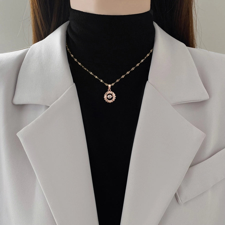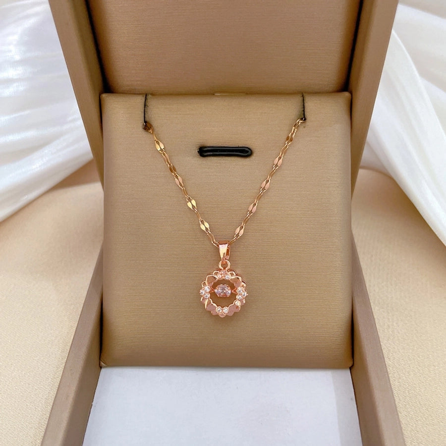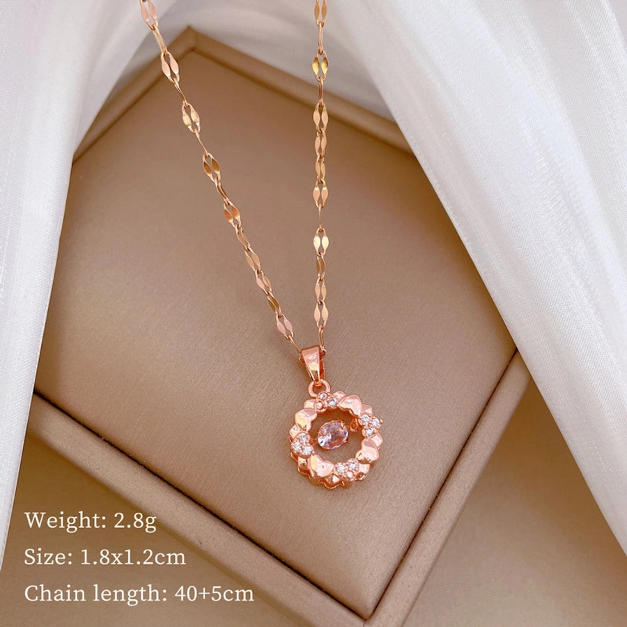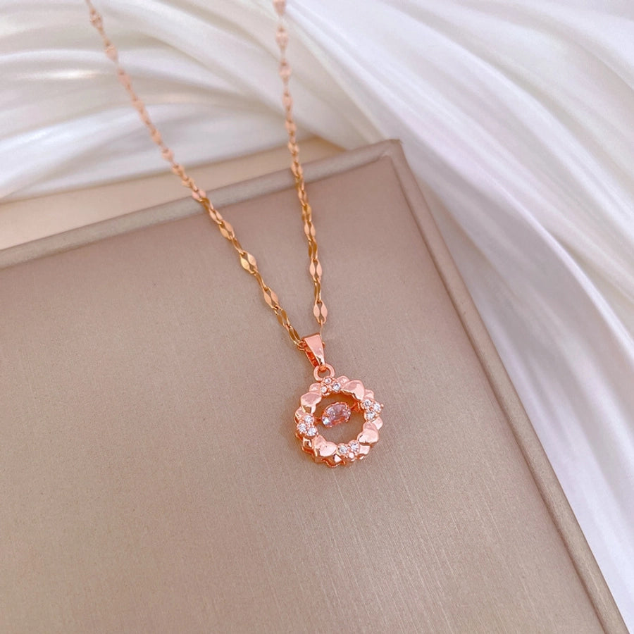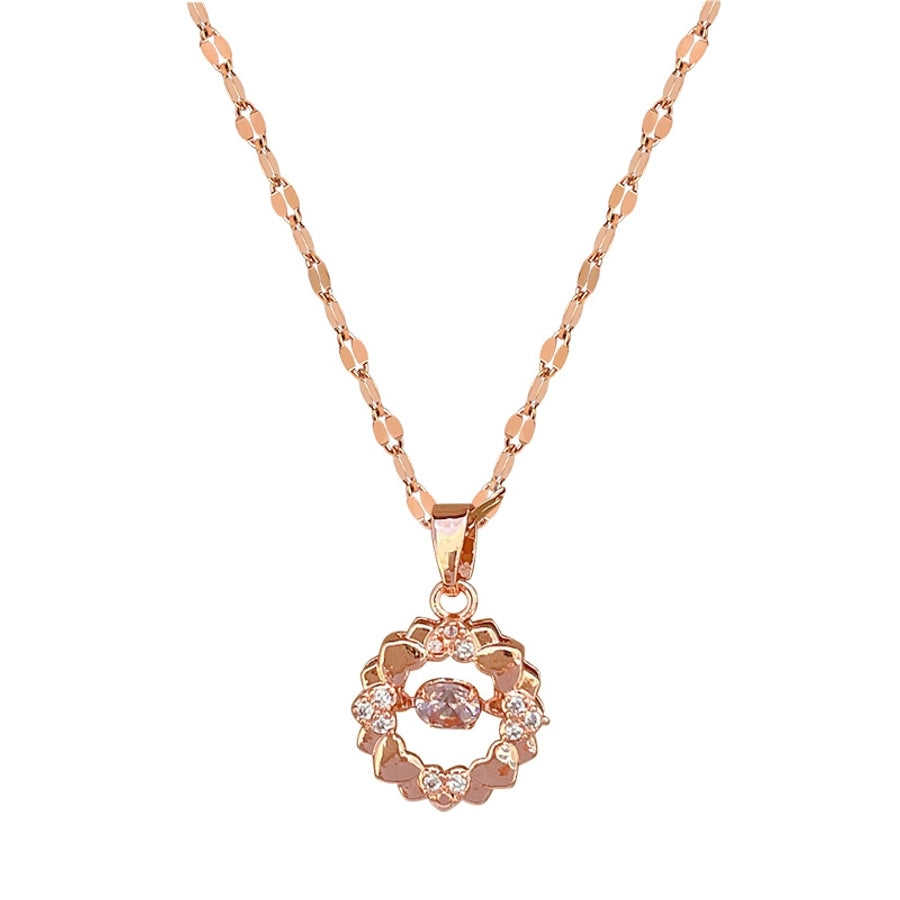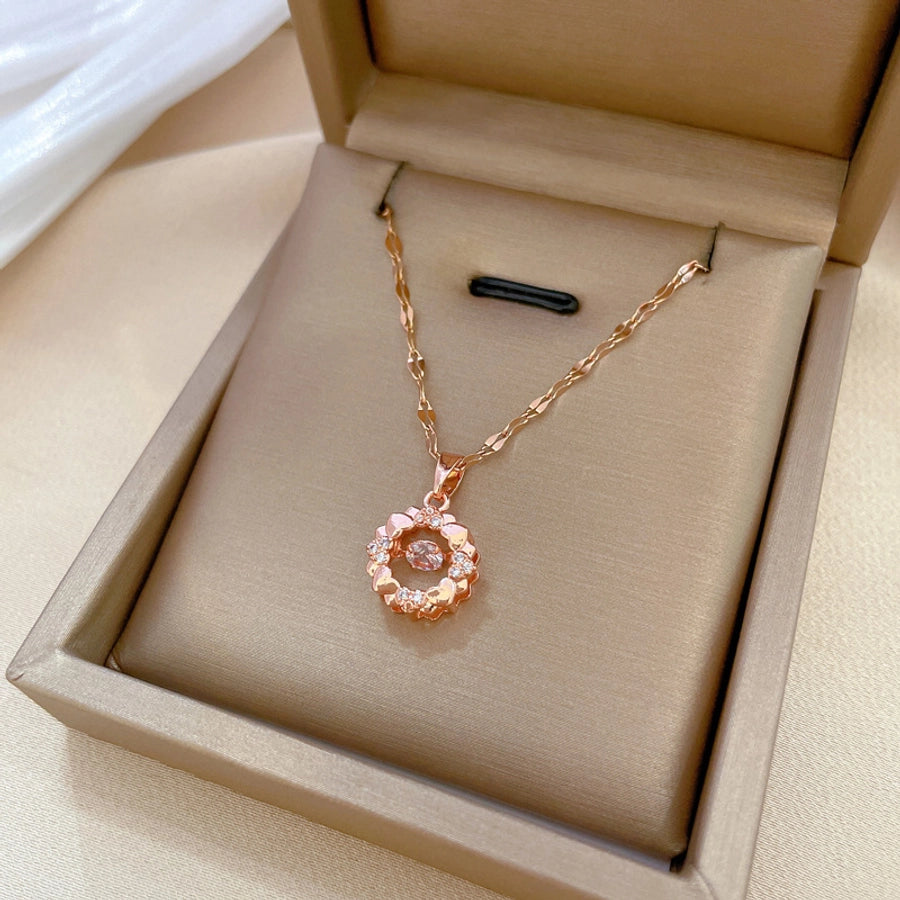 304 Stainless Steel Copper Inlay Heart Shape Rhinestones Pendant Necklace