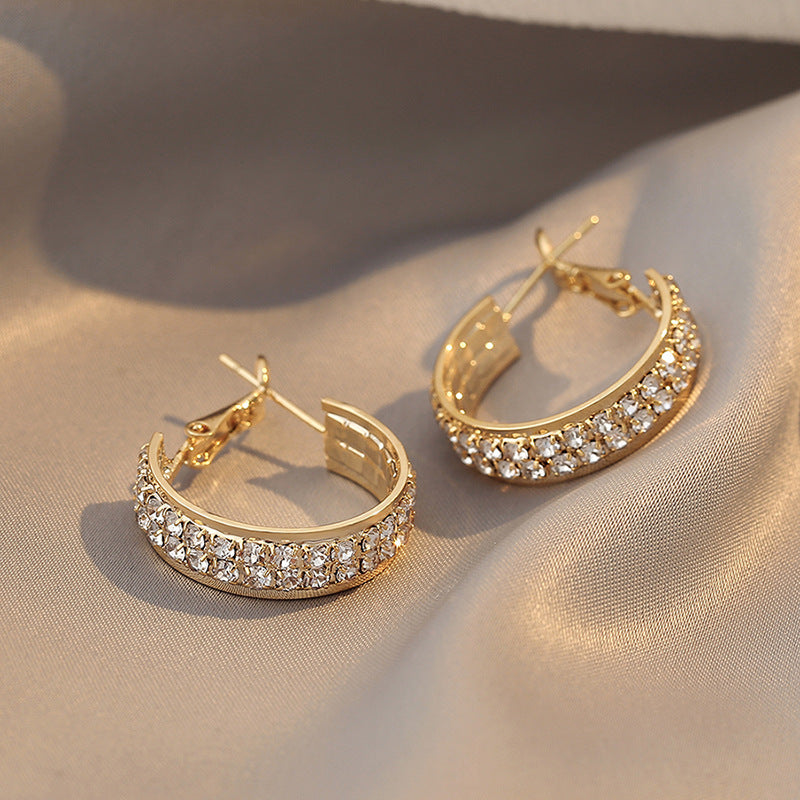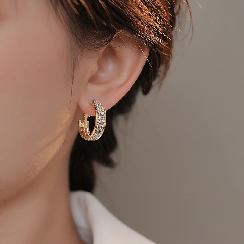 925 Silver Needle Women's Full Diamond C-shaped Earrings