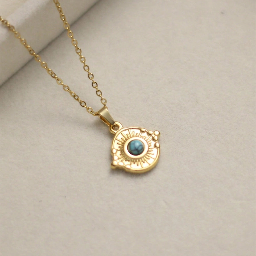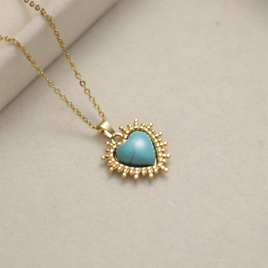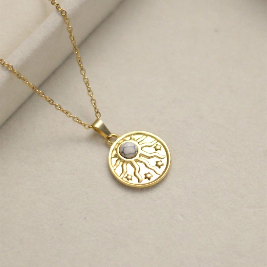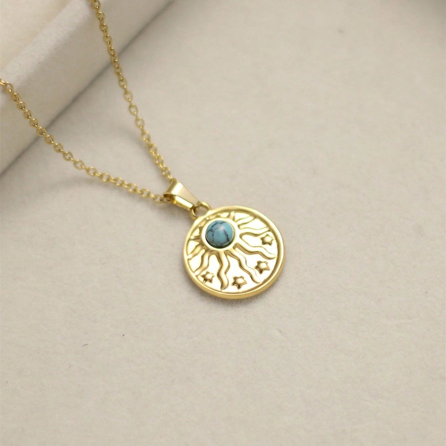A Stainless Steel Plated 18K Gold Love Blue White Turquoise round Sun Light XINGX Red Turquoise Turquoise Green Natural Stone Pendant Necklace Ornament