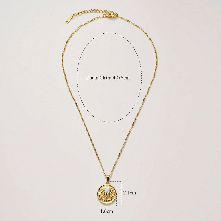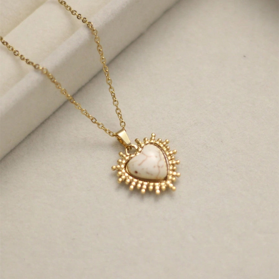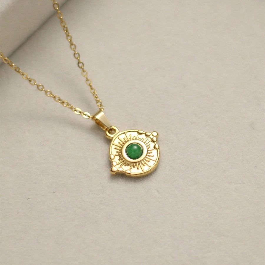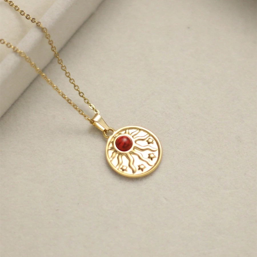 A Stainless Steel Plated 18K Gold Love Blue White Turquoise round Sun Light XINGX Red Turquoise Turquoise Green Natural Stone Pendant Necklace Ornament
