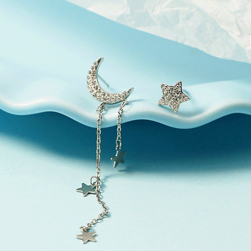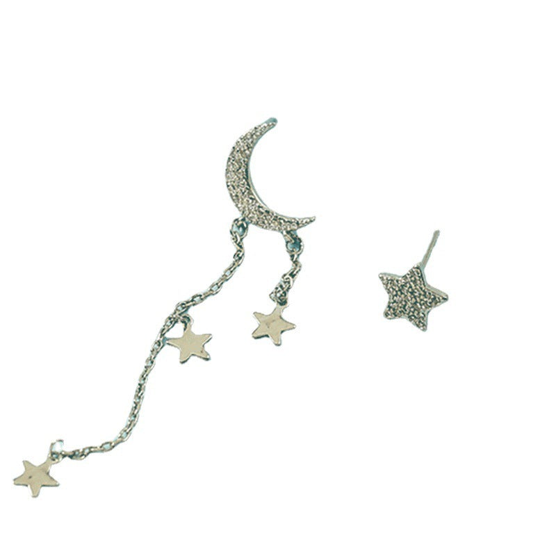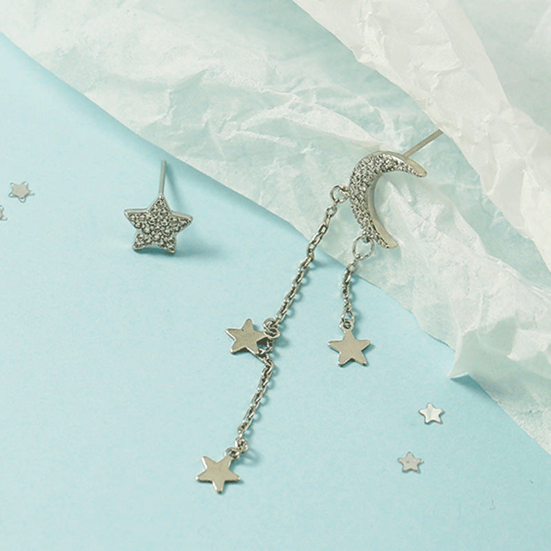 Asymmetric Star Moon Tassel Stud Earrings For Women Long Fashion
