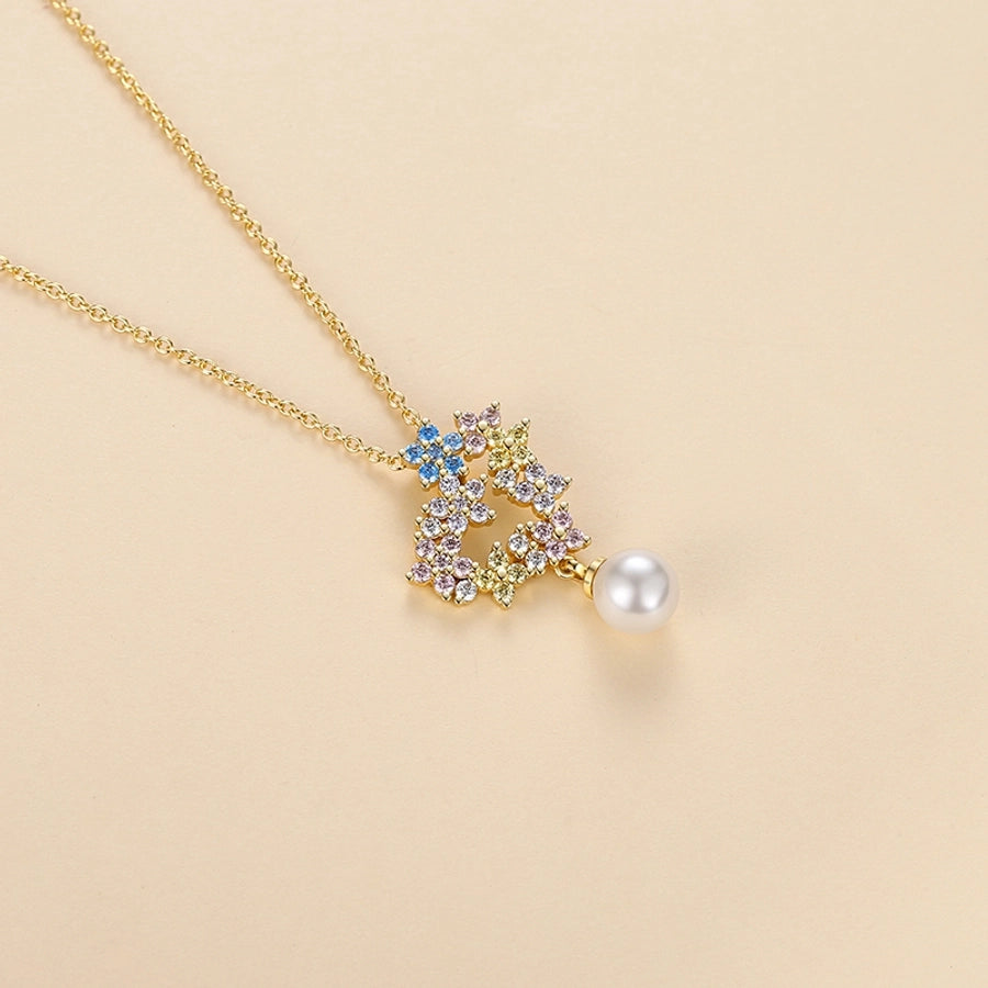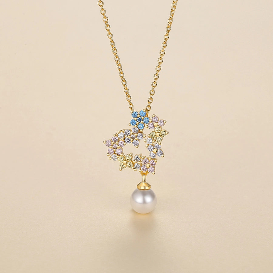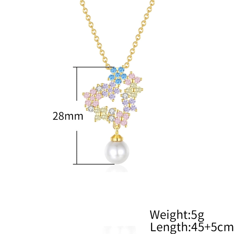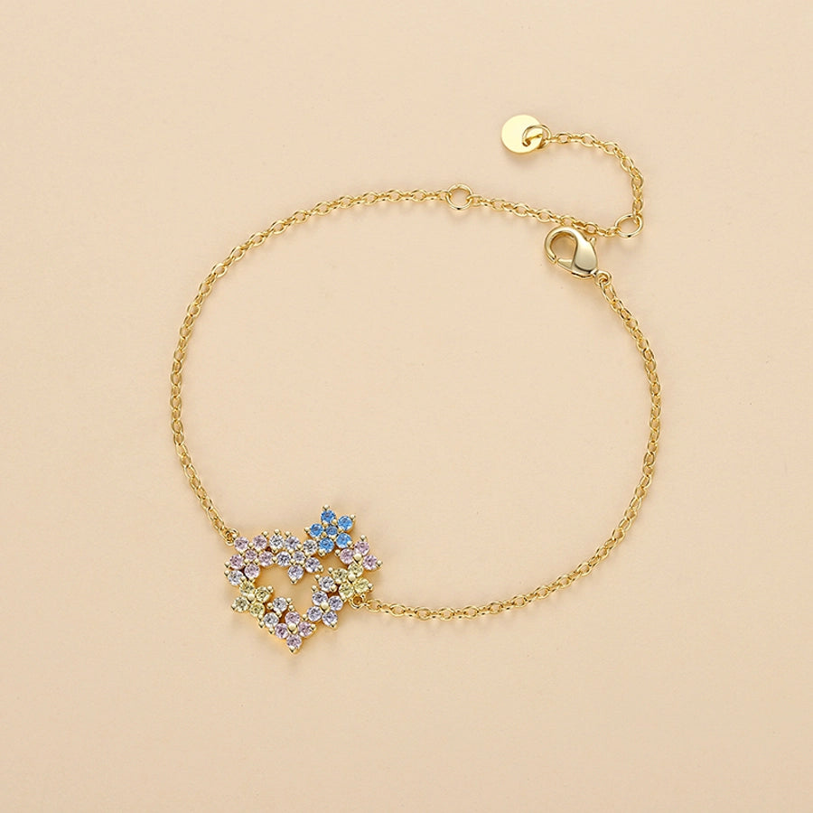 Colorful Crystals Heart Garland Necklace Bracelet Ear Studs Gold Plated Ornament Suit Women's Rhinestone Pearl Necklace Lovers Wild Collarbone Necklace Bracelet Bracelet Ear Studs Stud Earrings Suit