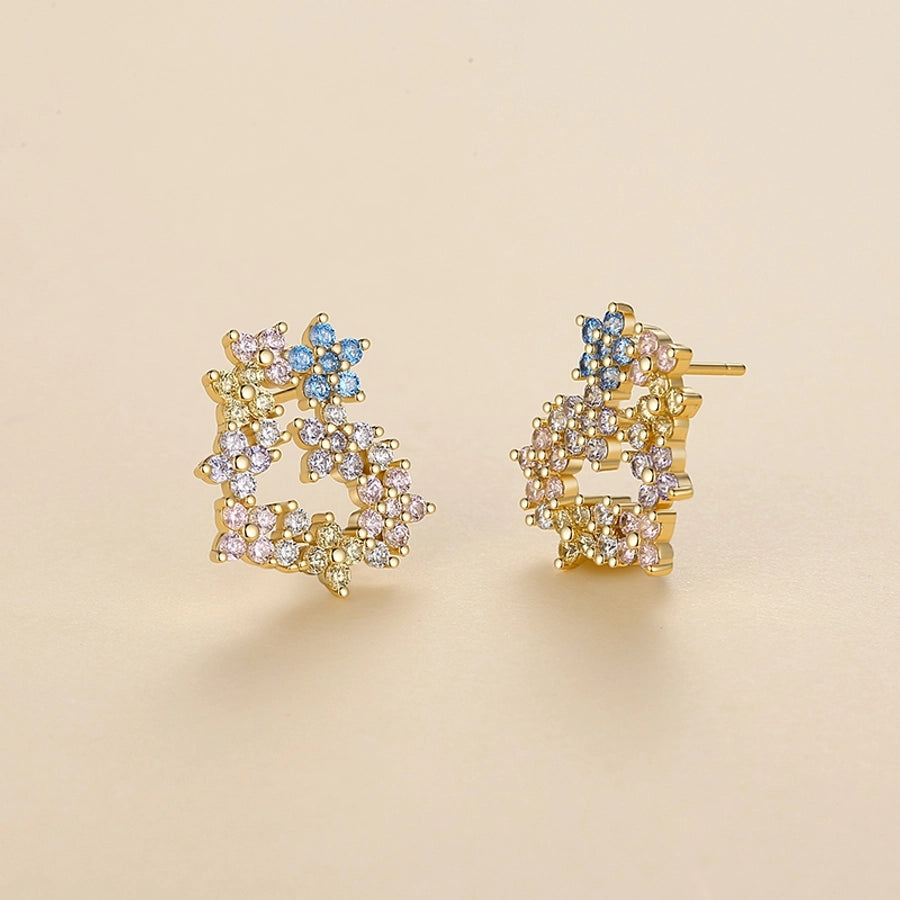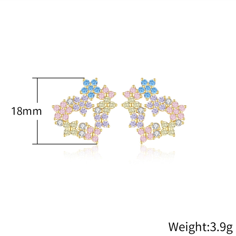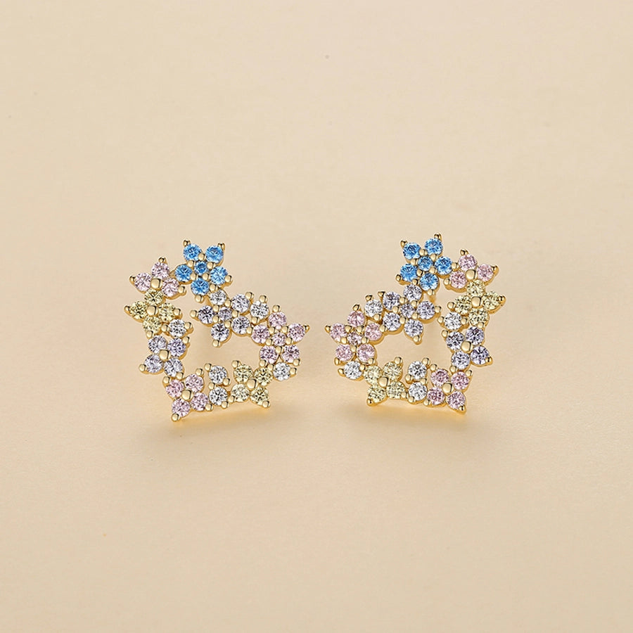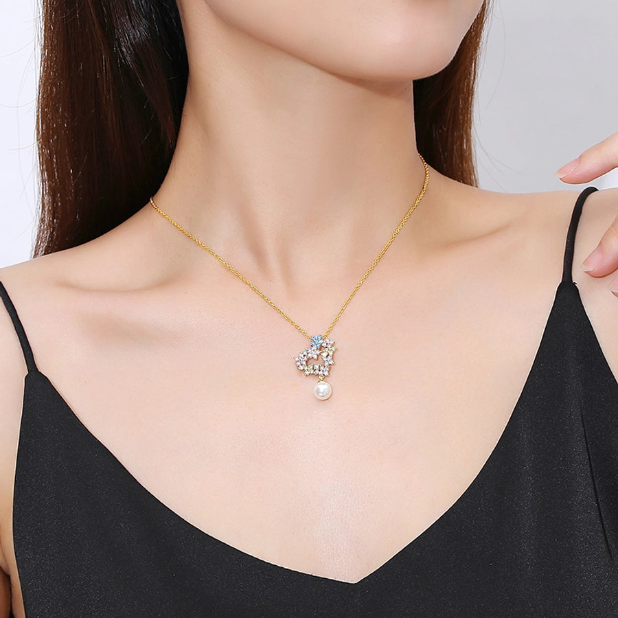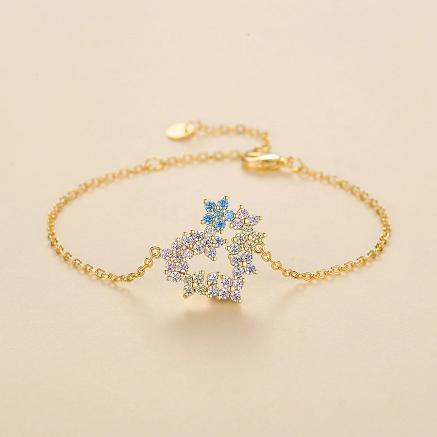Colorful Crystals Heart Garland Necklace Bracelet Ear Studs Gold Plated Ornament Suit Women's Rhinestone Pearl Necklace Lovers Wild Collarbone Necklace Bracelet Bracelet Ear Studs Stud Earrings Suit