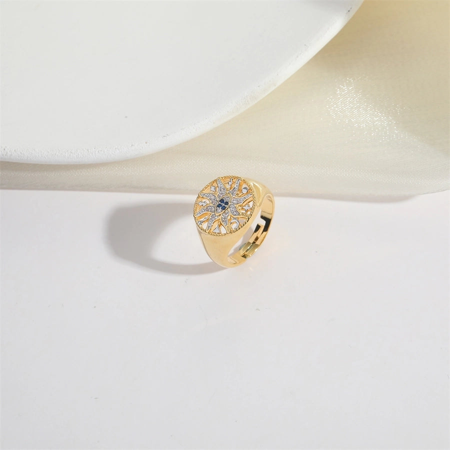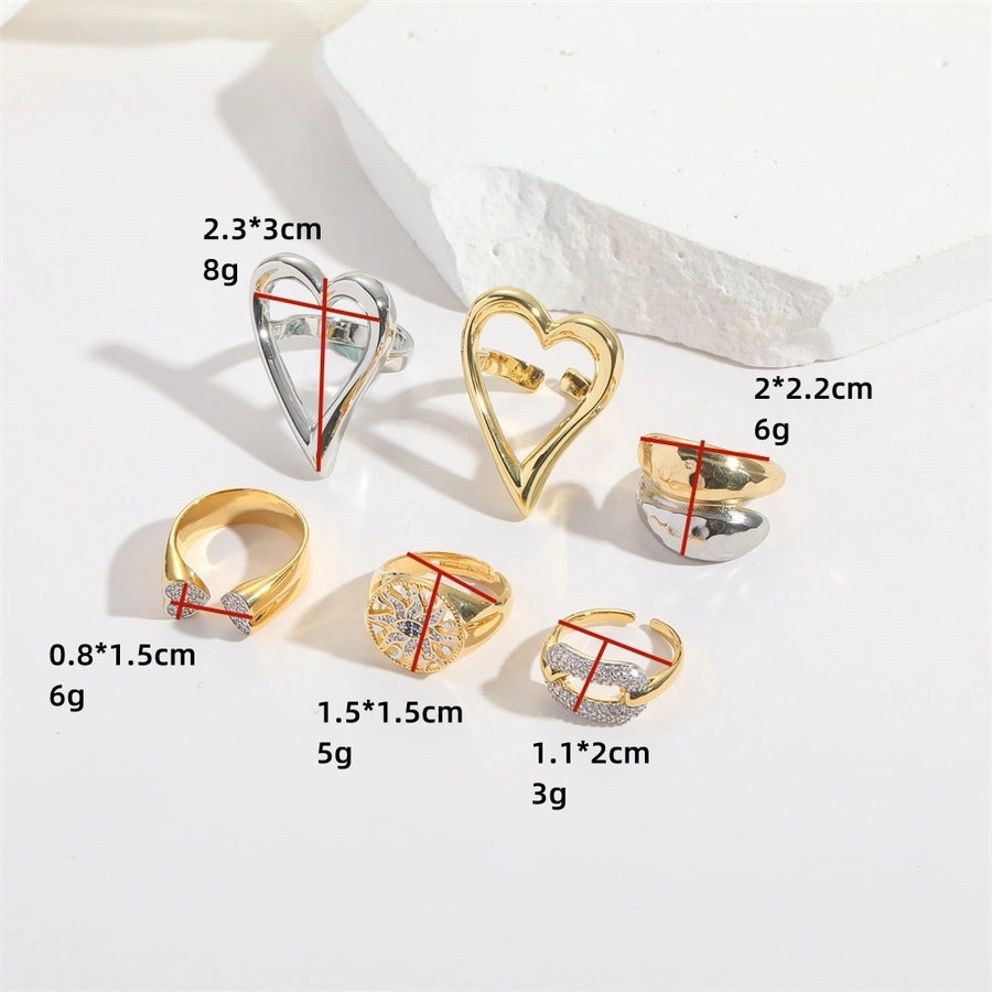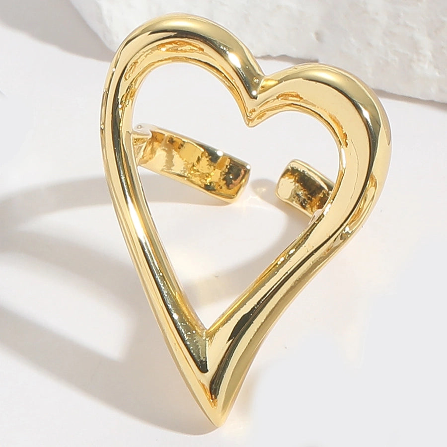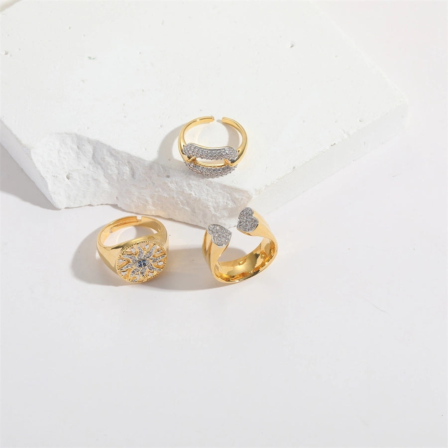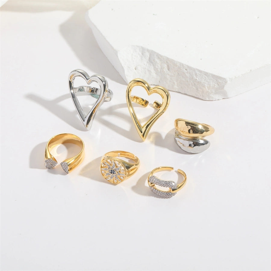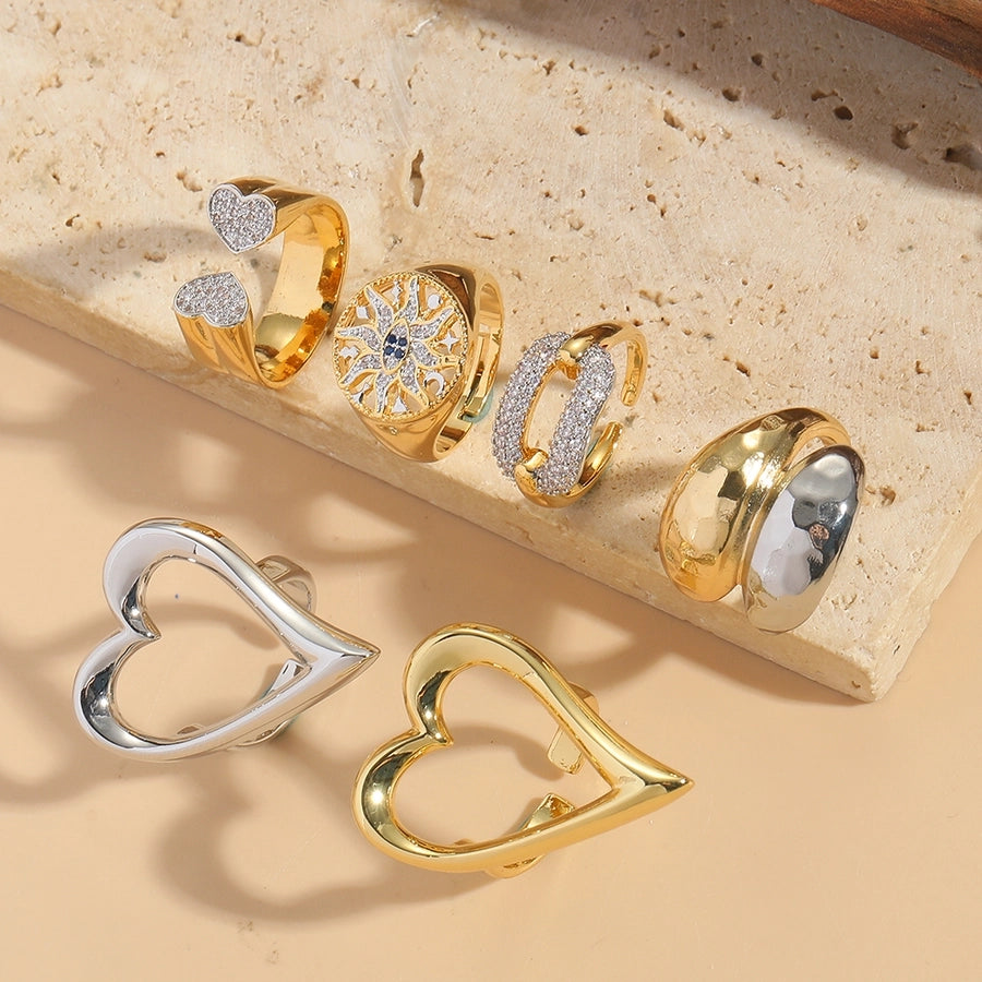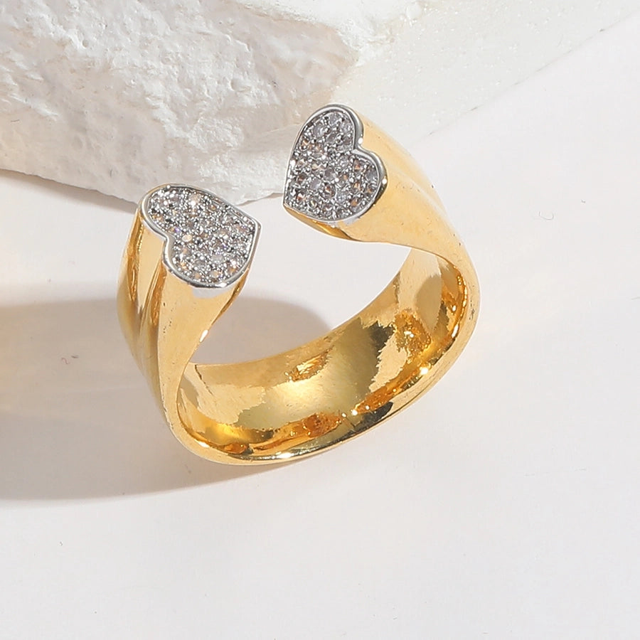 Copper 14K Gold Plated Hollow Out Inlay Heart Shape Zircon Open Rings