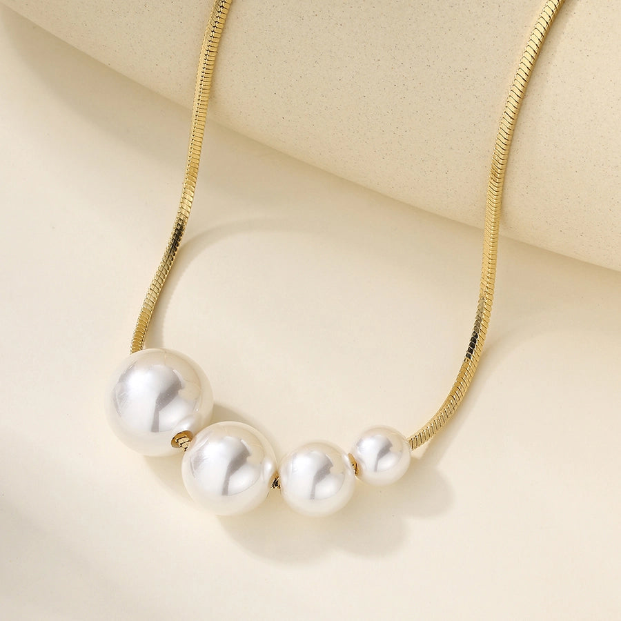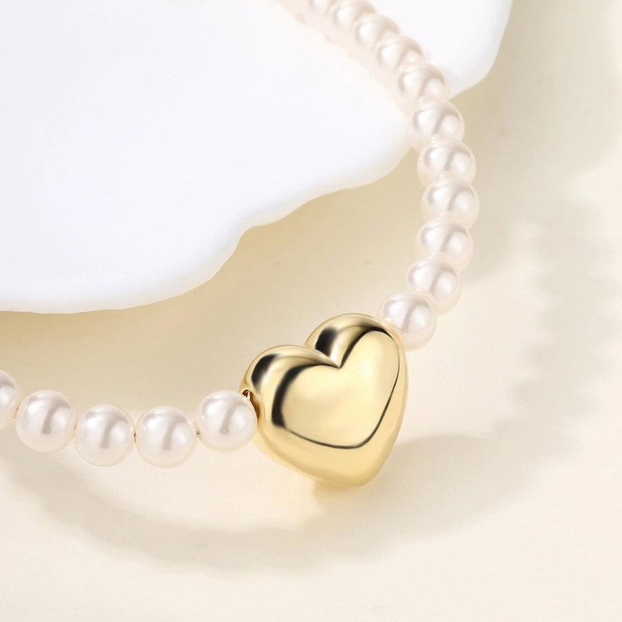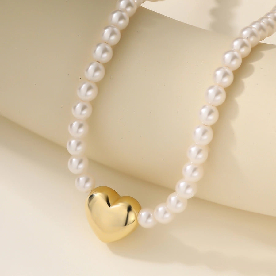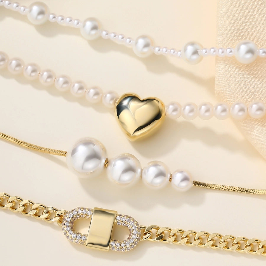 Copper 18K Gold Plated Asymmetrical Hollow Out Round Heart Shape Artificial Pearls Necklace