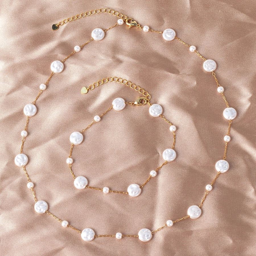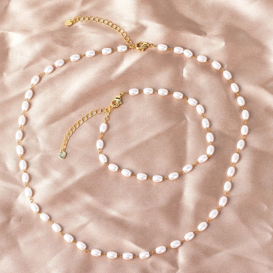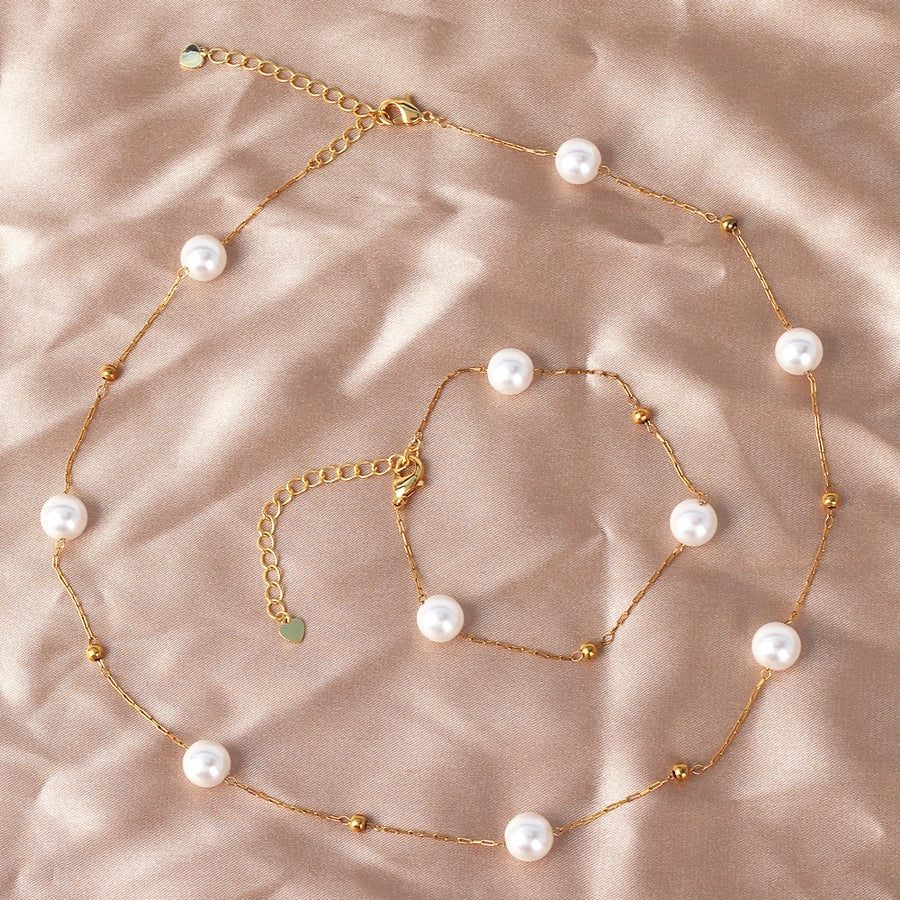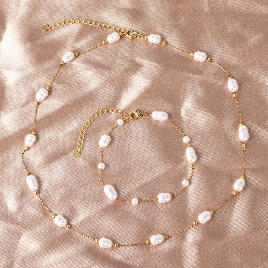 Copper 18K Gold Plated Beaded Geometric Bracelets Necklace