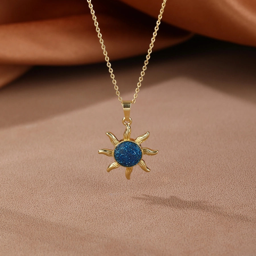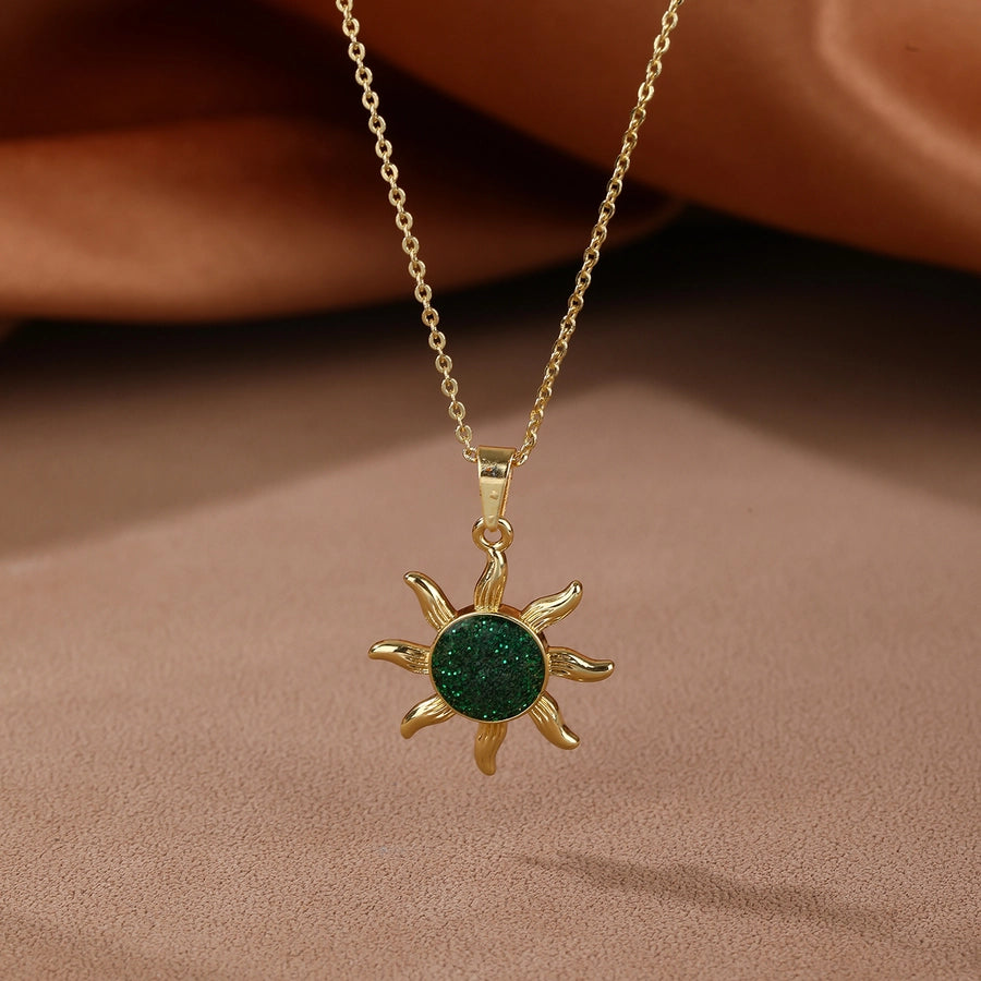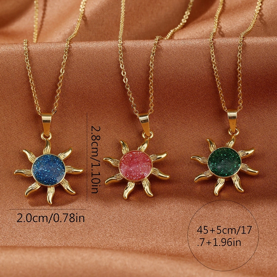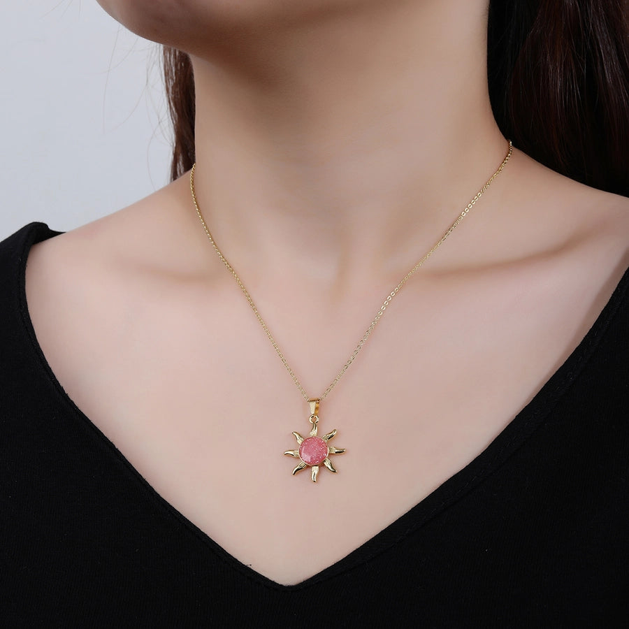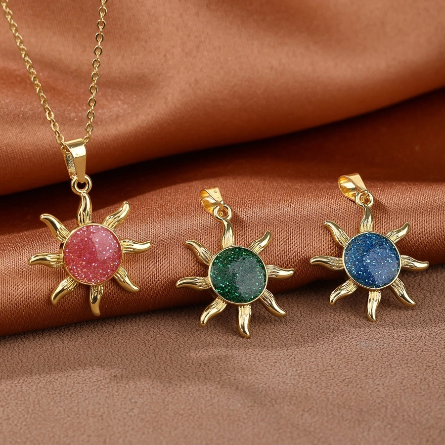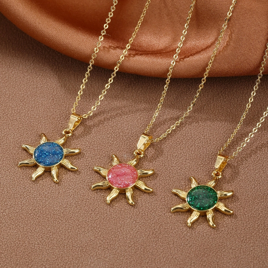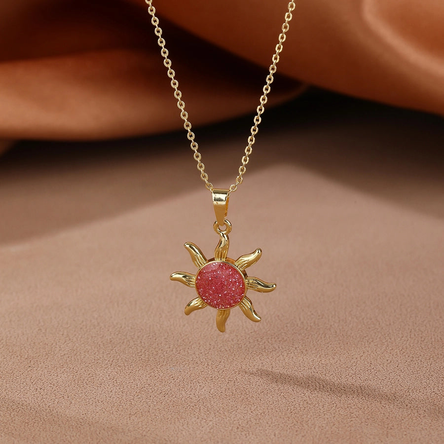 Copper 18K Gold Plated Enamel Sun Pendant Necklace