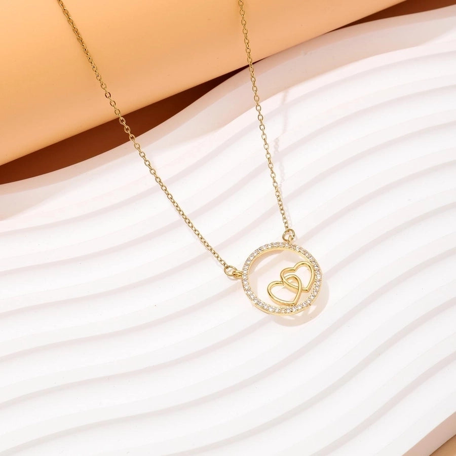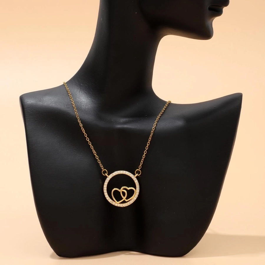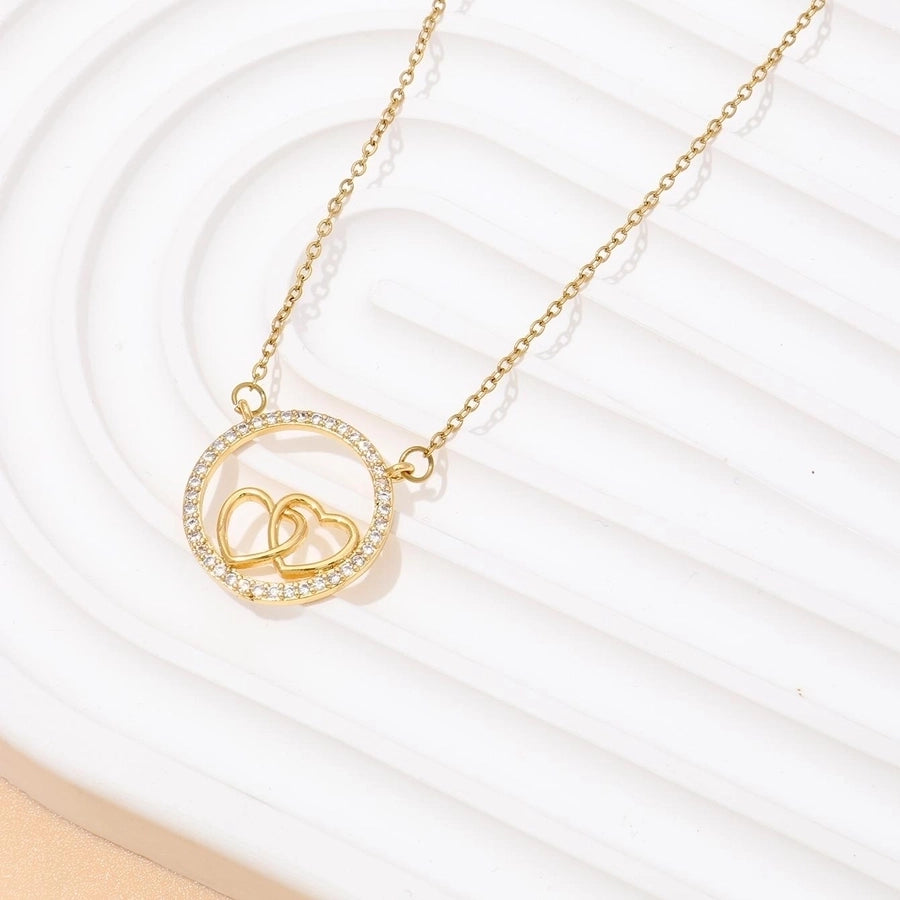 Copper 18K Gold Plated Heart Shape Zircon Pendant Necklace