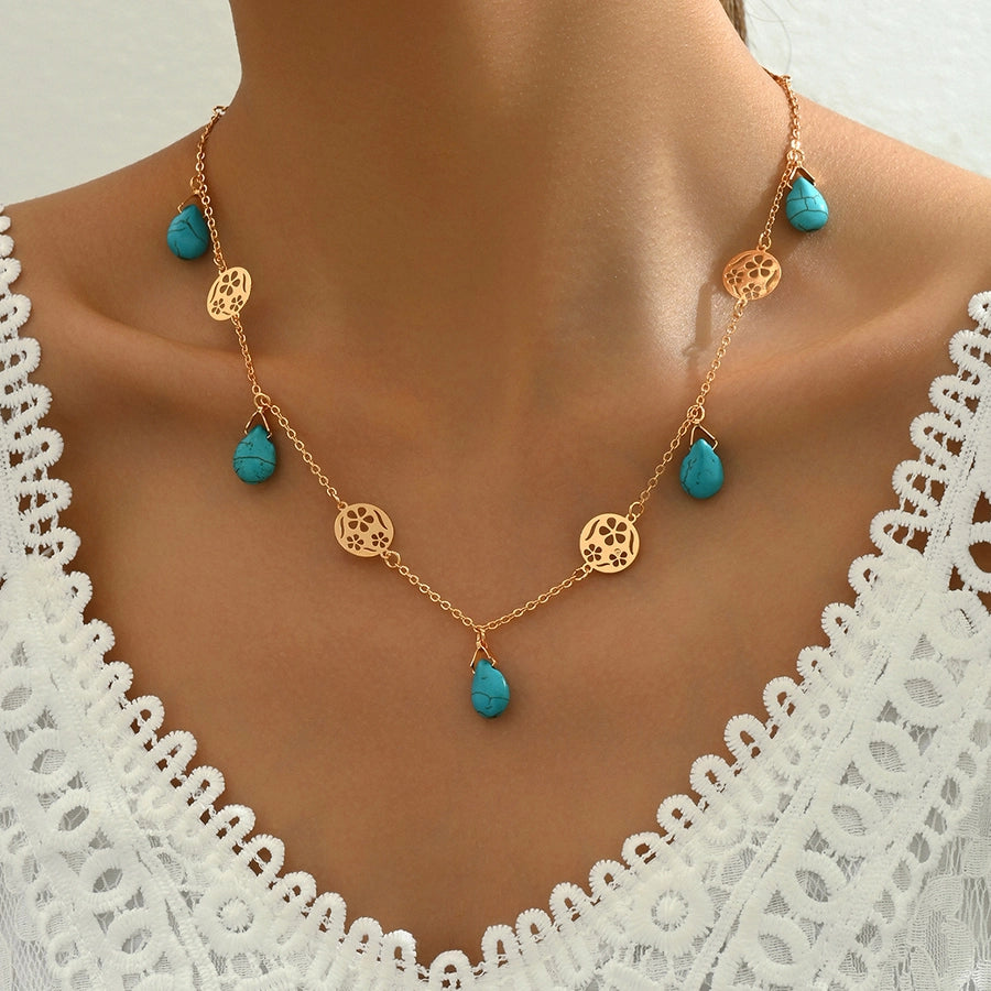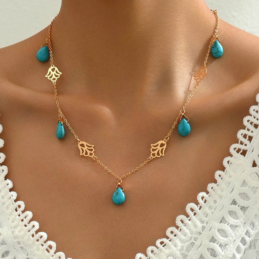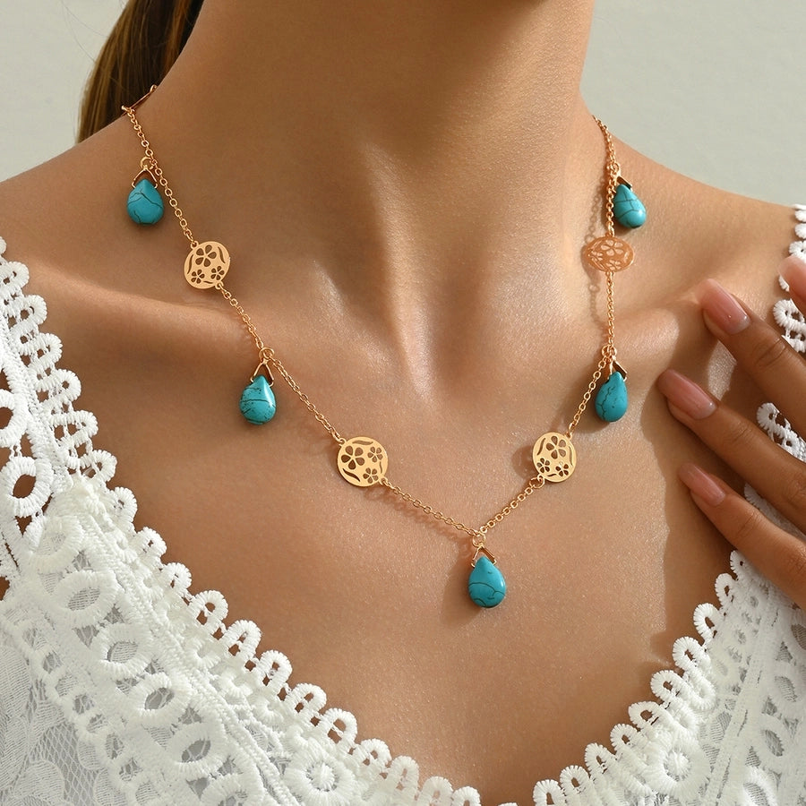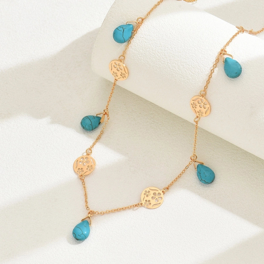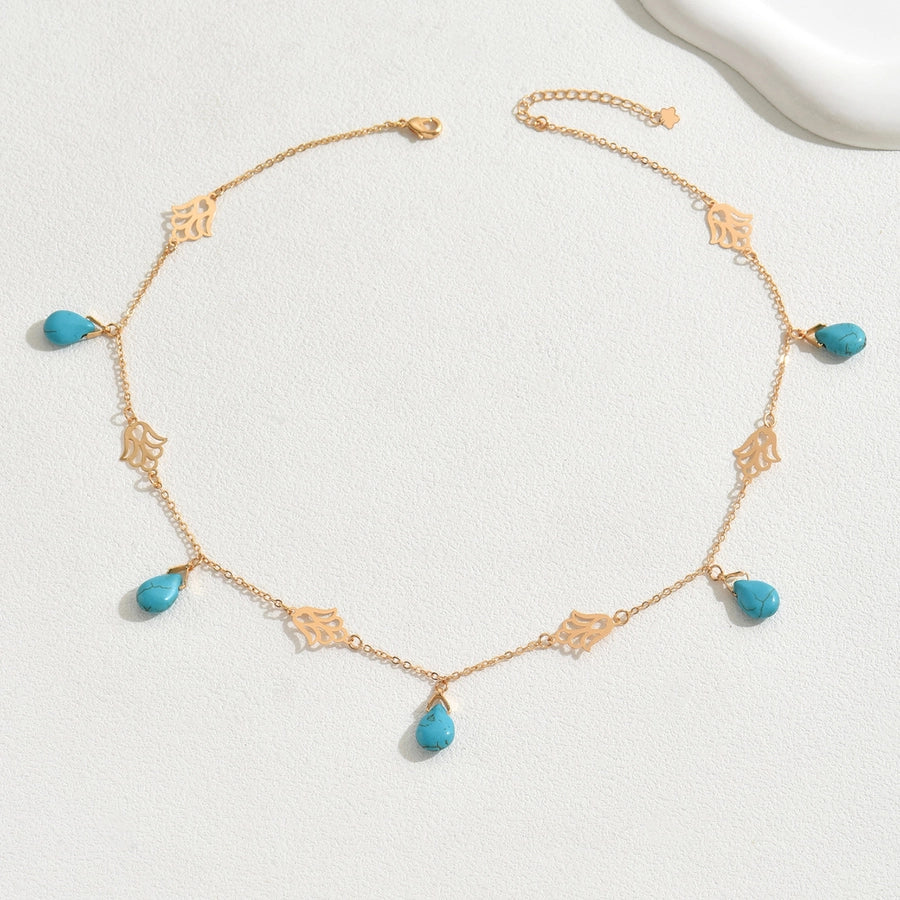 Copper 18K Gold Plated Inlay Flower Turquoise Pendant Necklace