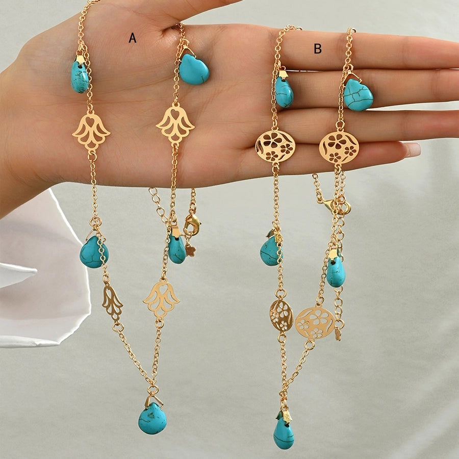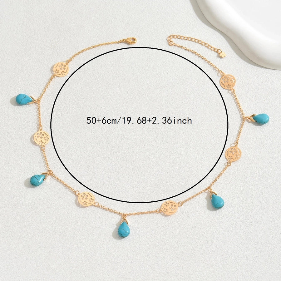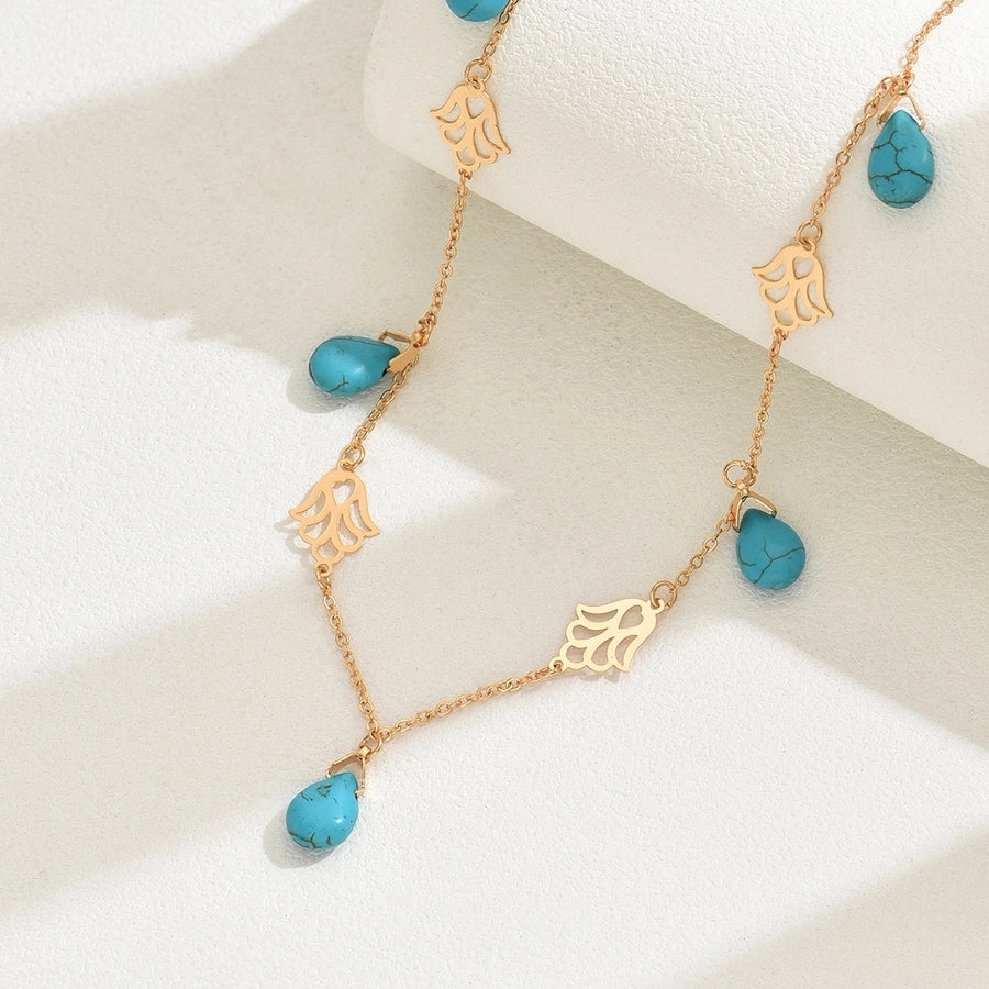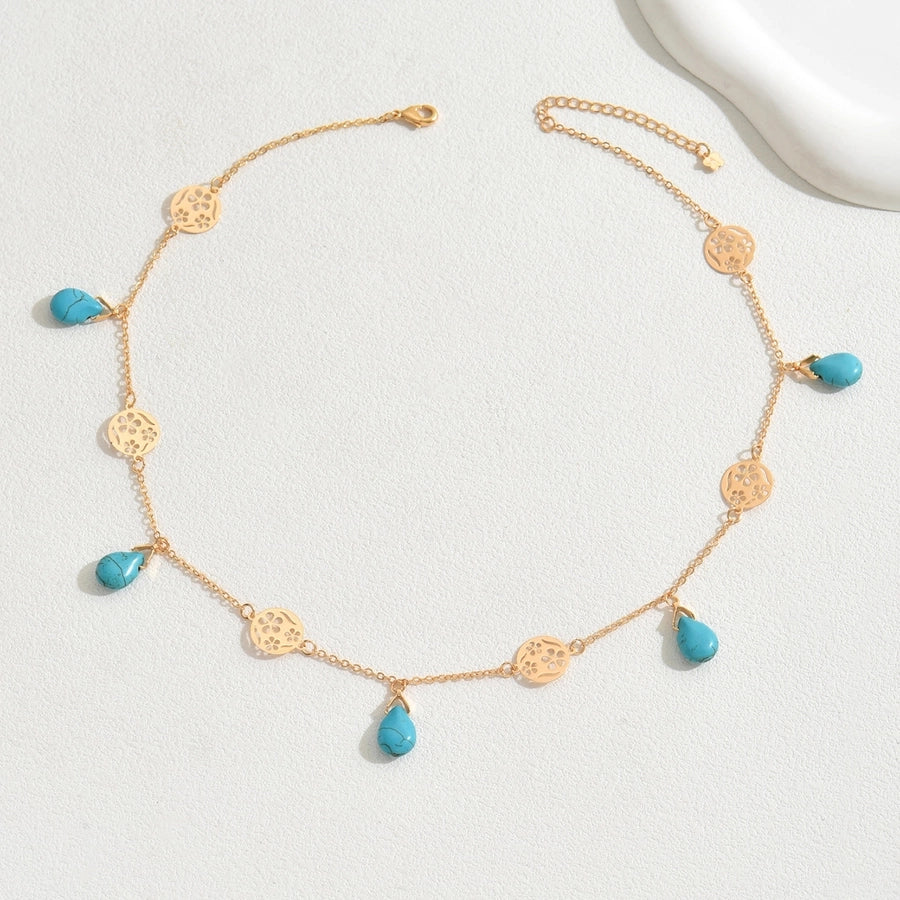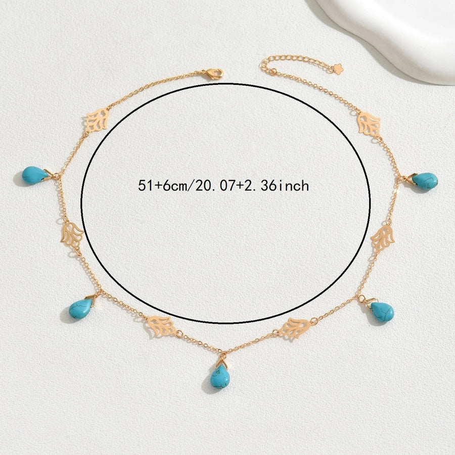 Copper 18K Gold Plated Inlay Flower Turquoise Pendant Necklace