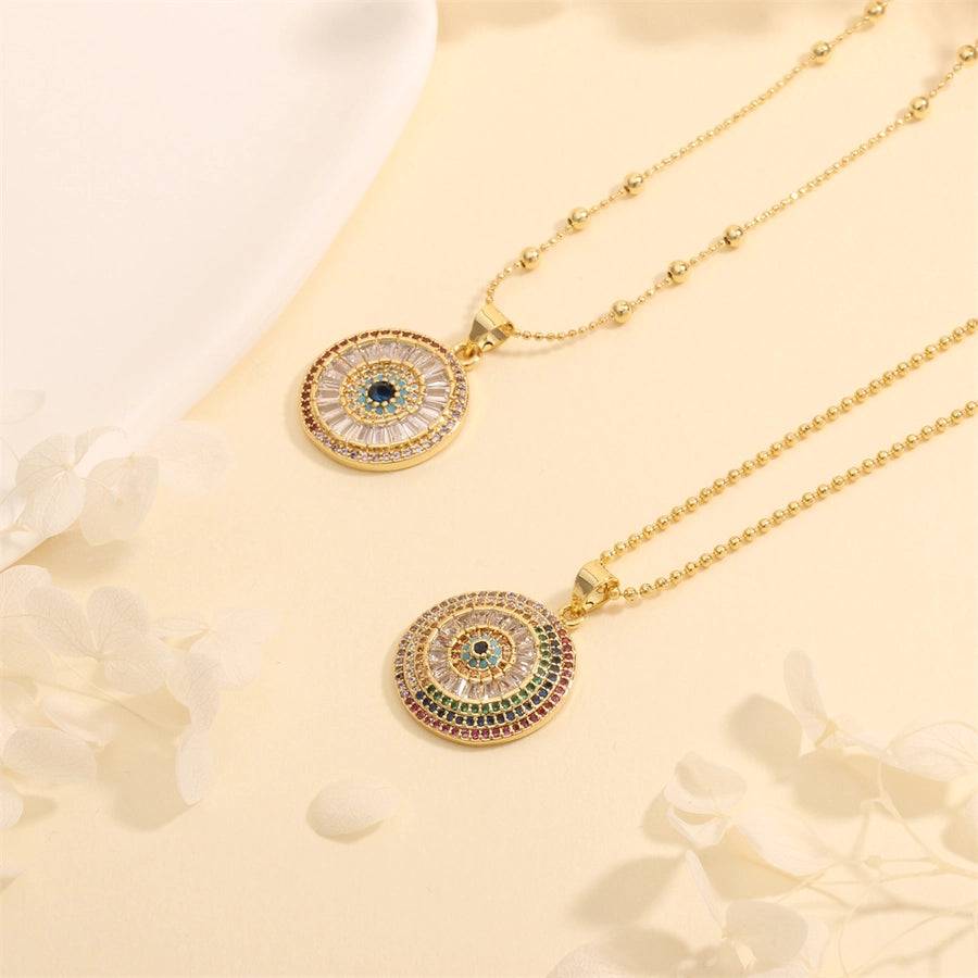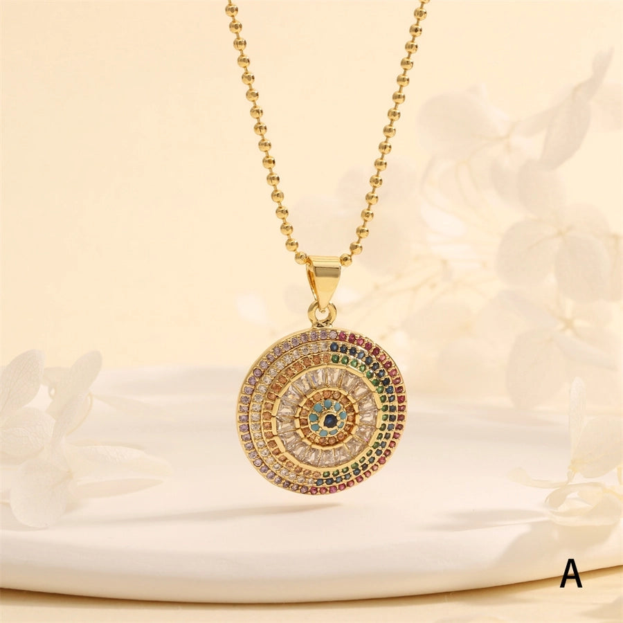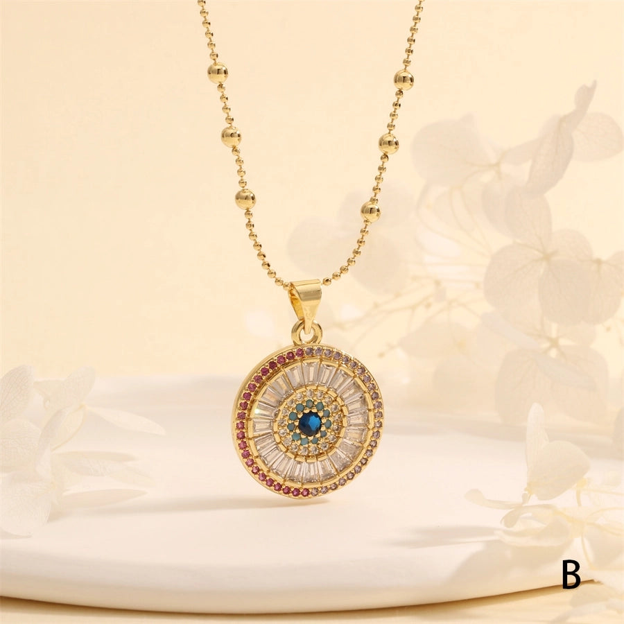 Copper 18K Gold Plated Plating Inlay Devil's Eye Eye Zircon Pendant Necklace