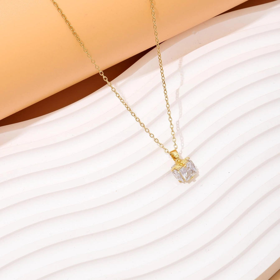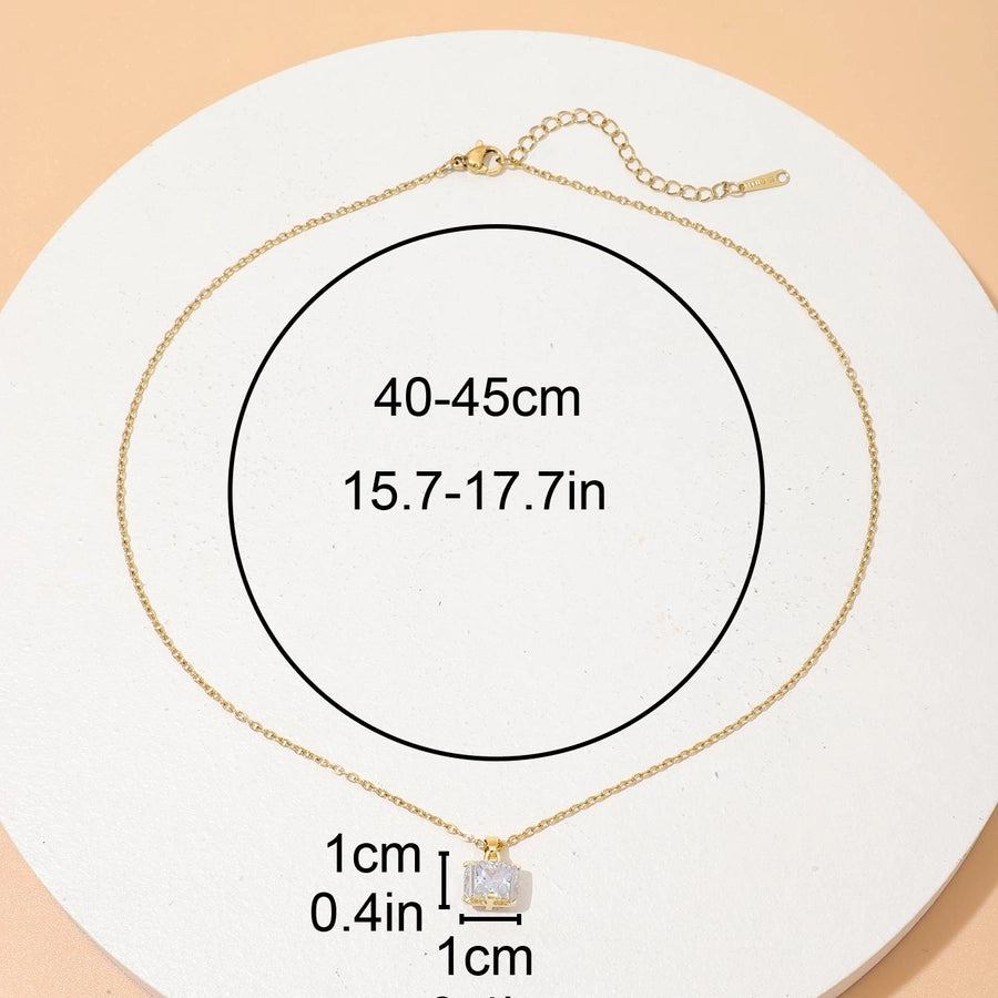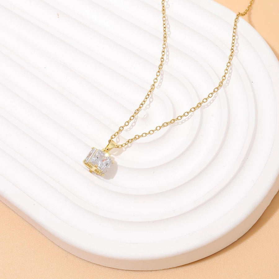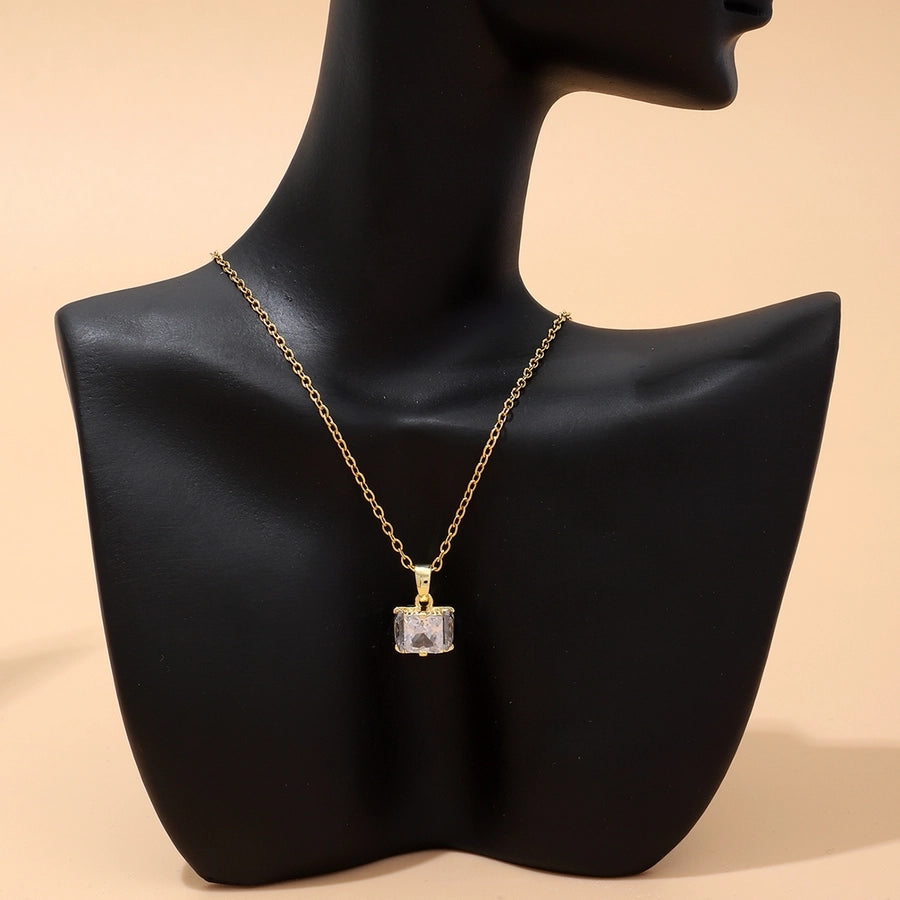 Copper 18K Gold Plated Plating Inlay Square Zircon Pendant Necklace