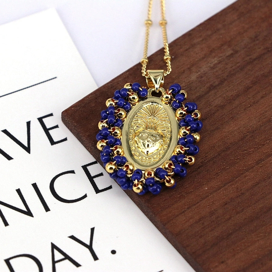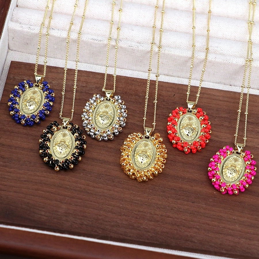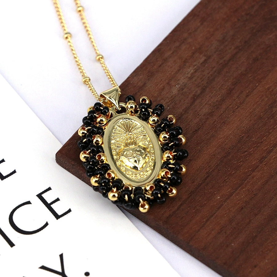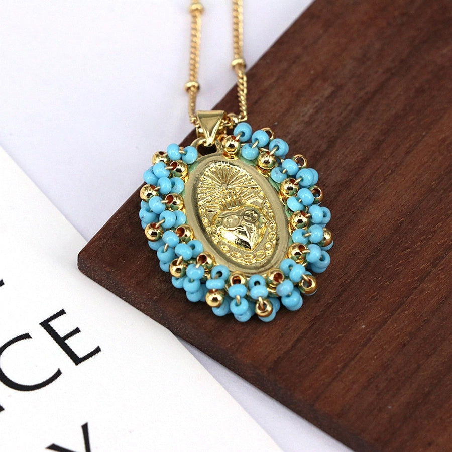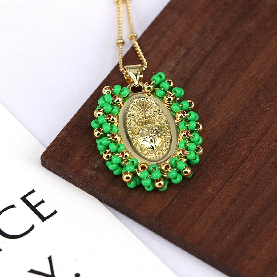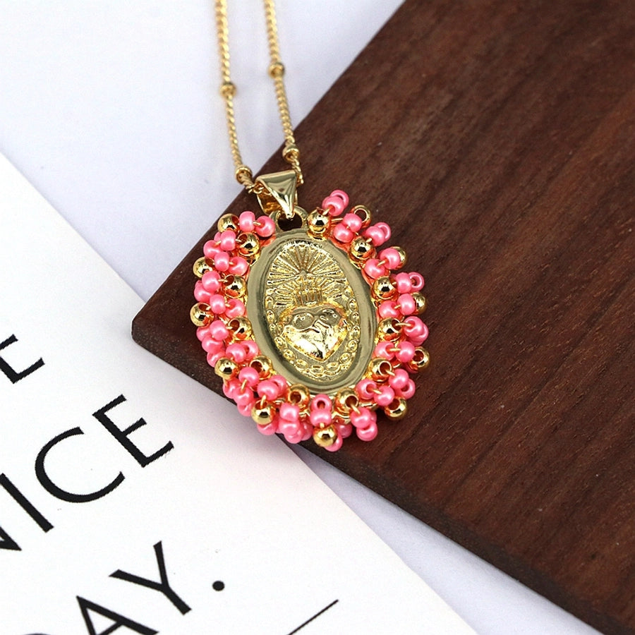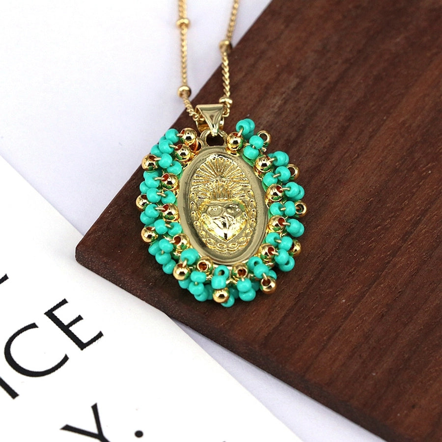 Copper Inlay Geometric Seed Bead Pendant Necklace