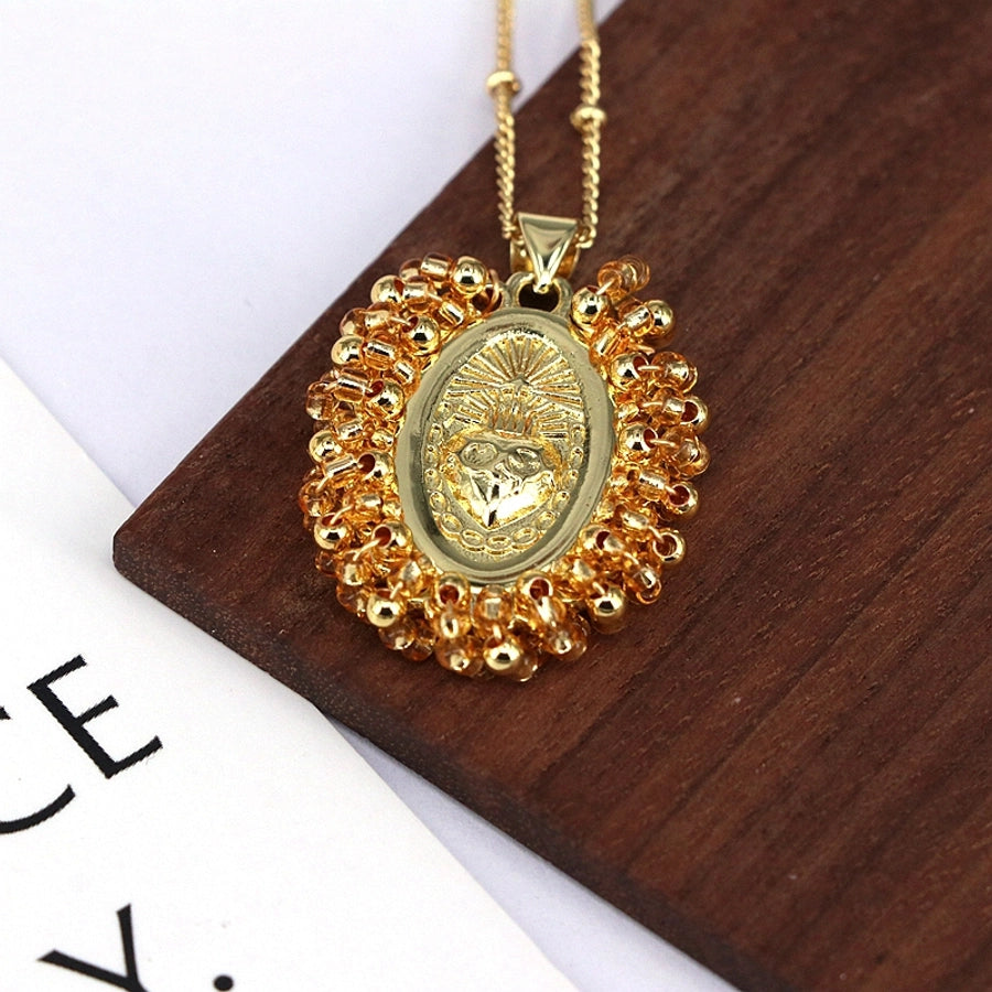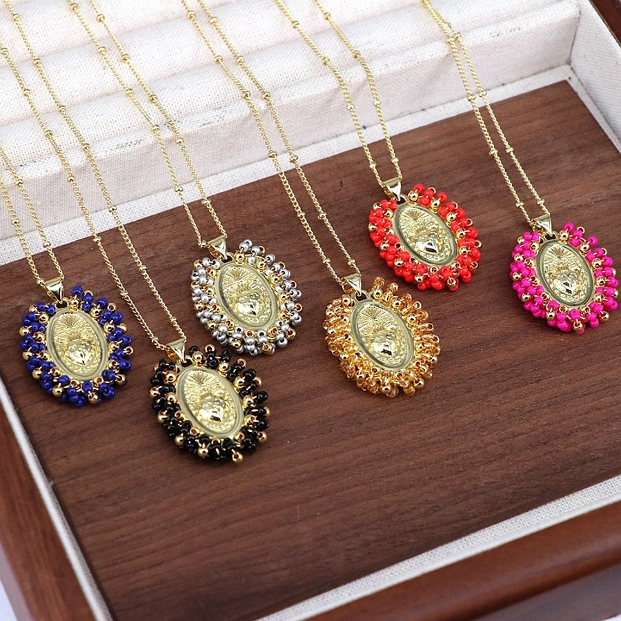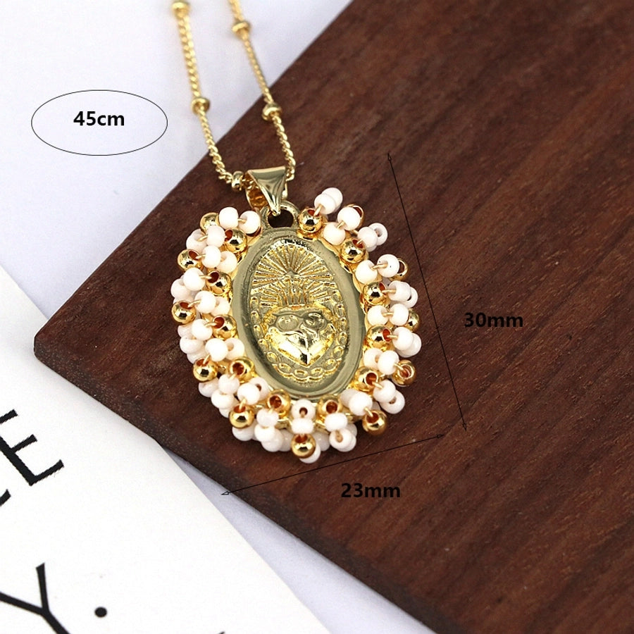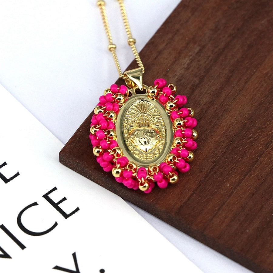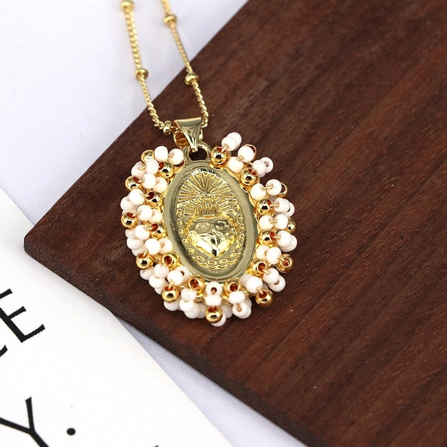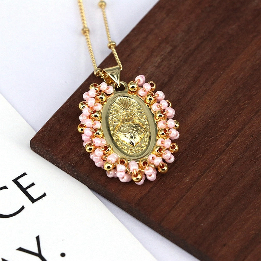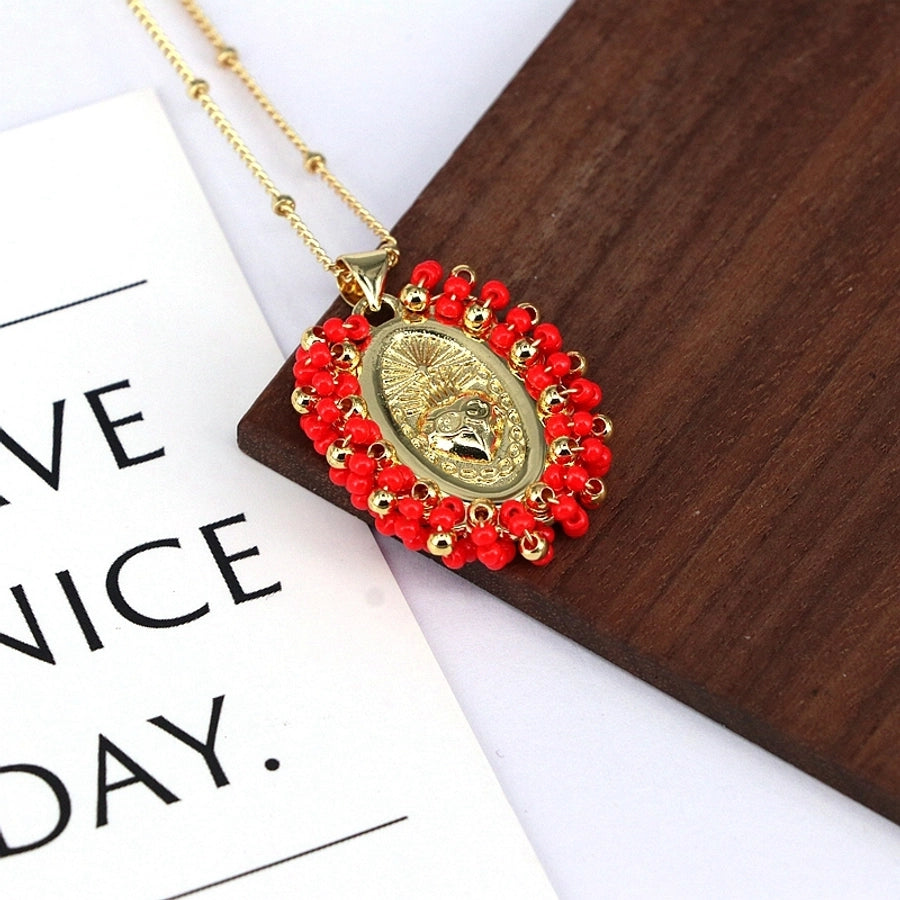 Copper Inlay Geometric Seed Bead Pendant Necklace