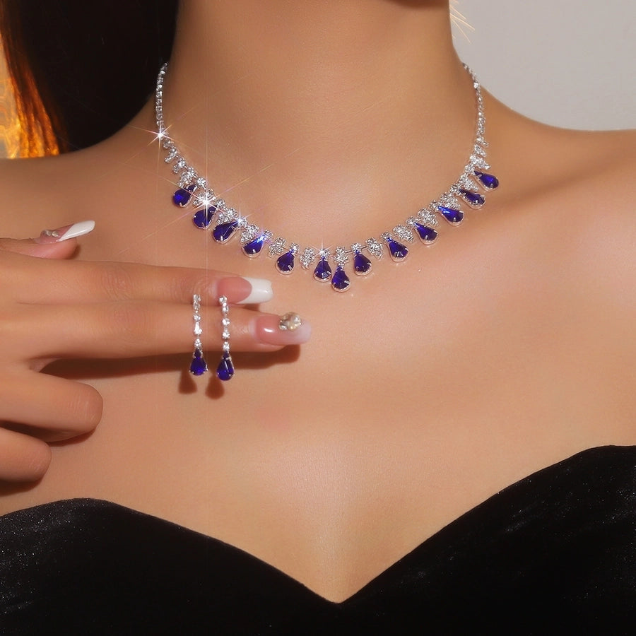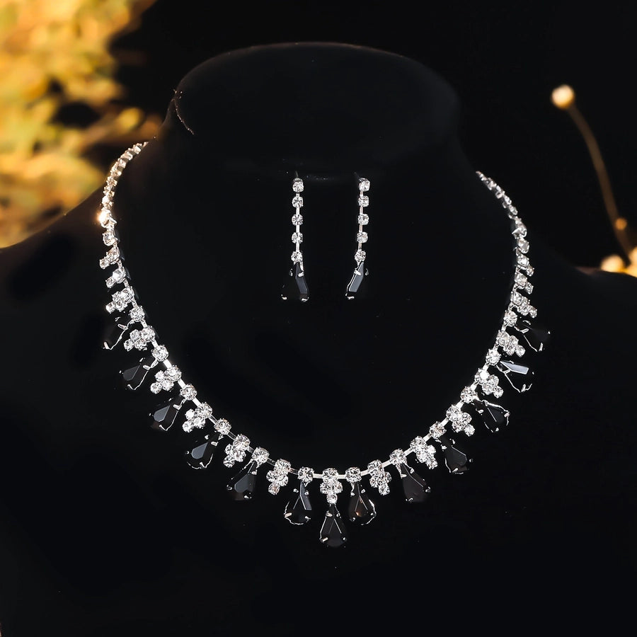 Copper Inlay Tassel Rhinestones Earrings Necklace Jewelry Set