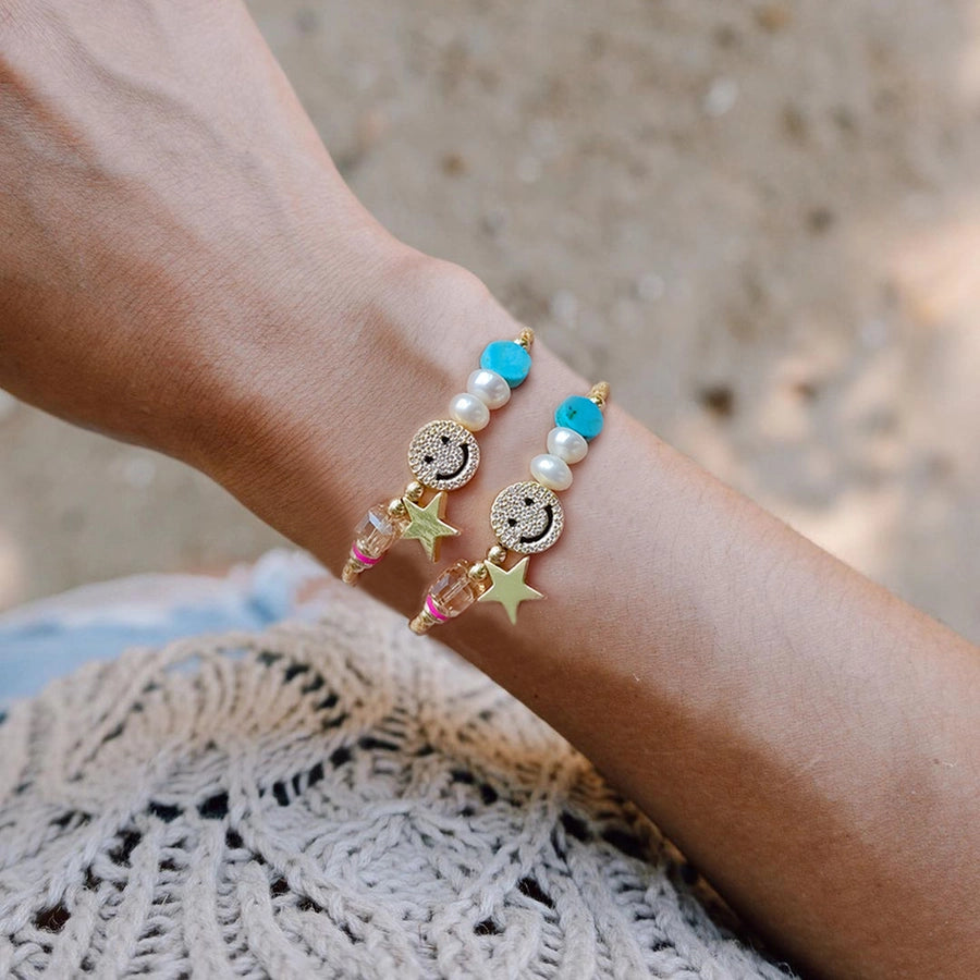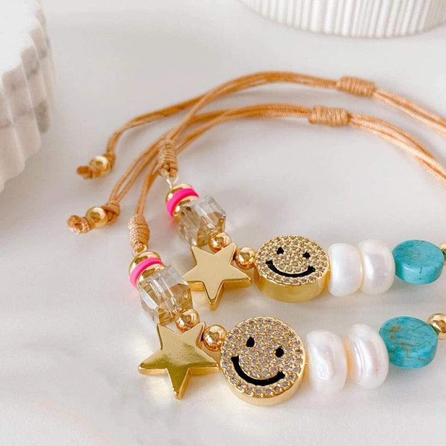 cute star freshwater pearl rope copper knitting plating inlay rhinestones 18k gold plated women's bracelets