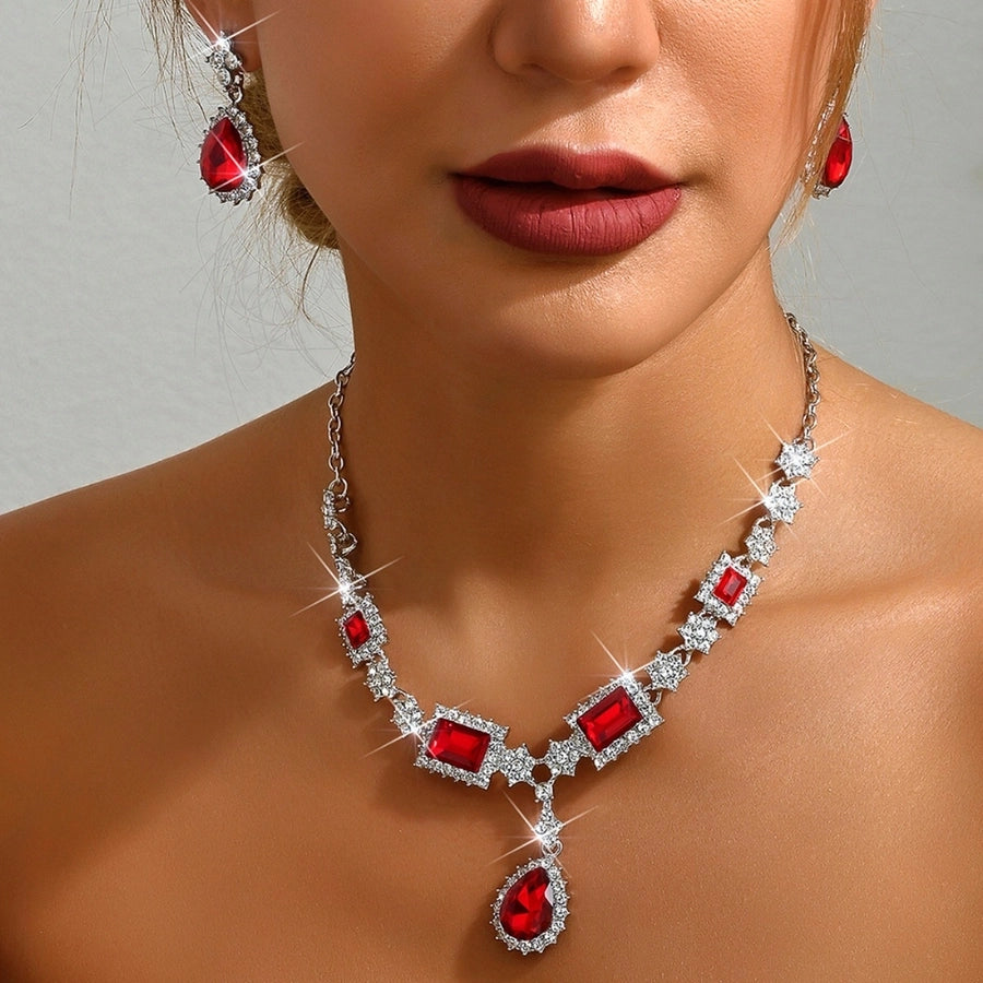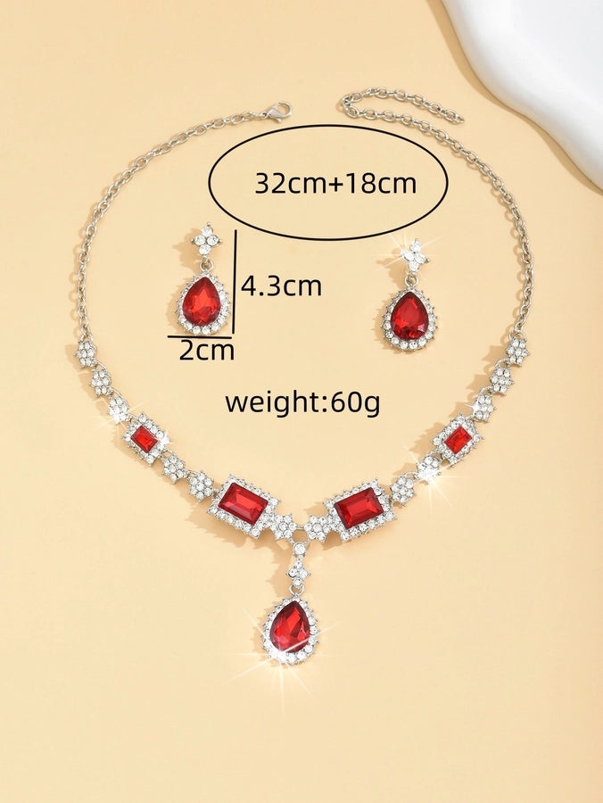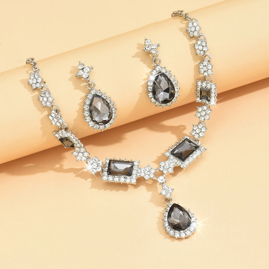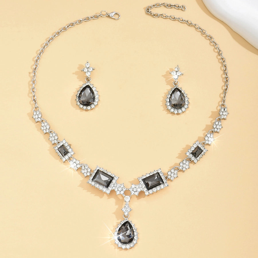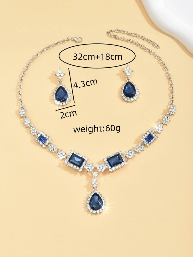 Diamond-encrusted Blue Square Water Drop Necklace Earrings Set Elegant Elegant Clavicle Chain New Style Light Luxury High-grade Necklace