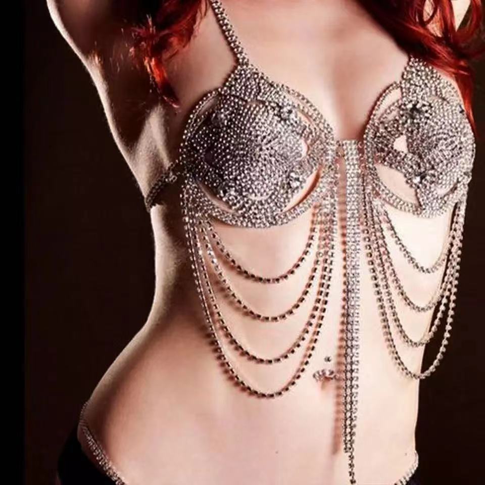 Diamond Tassel Body Chains Nightclub Bikini Chest Necklace
