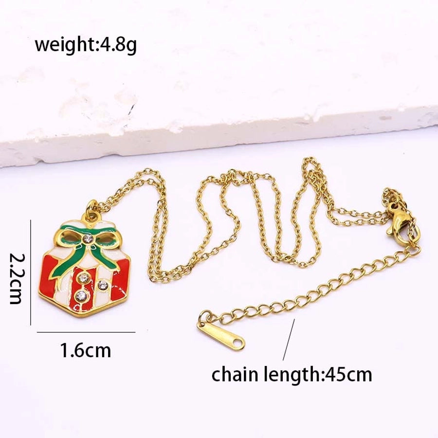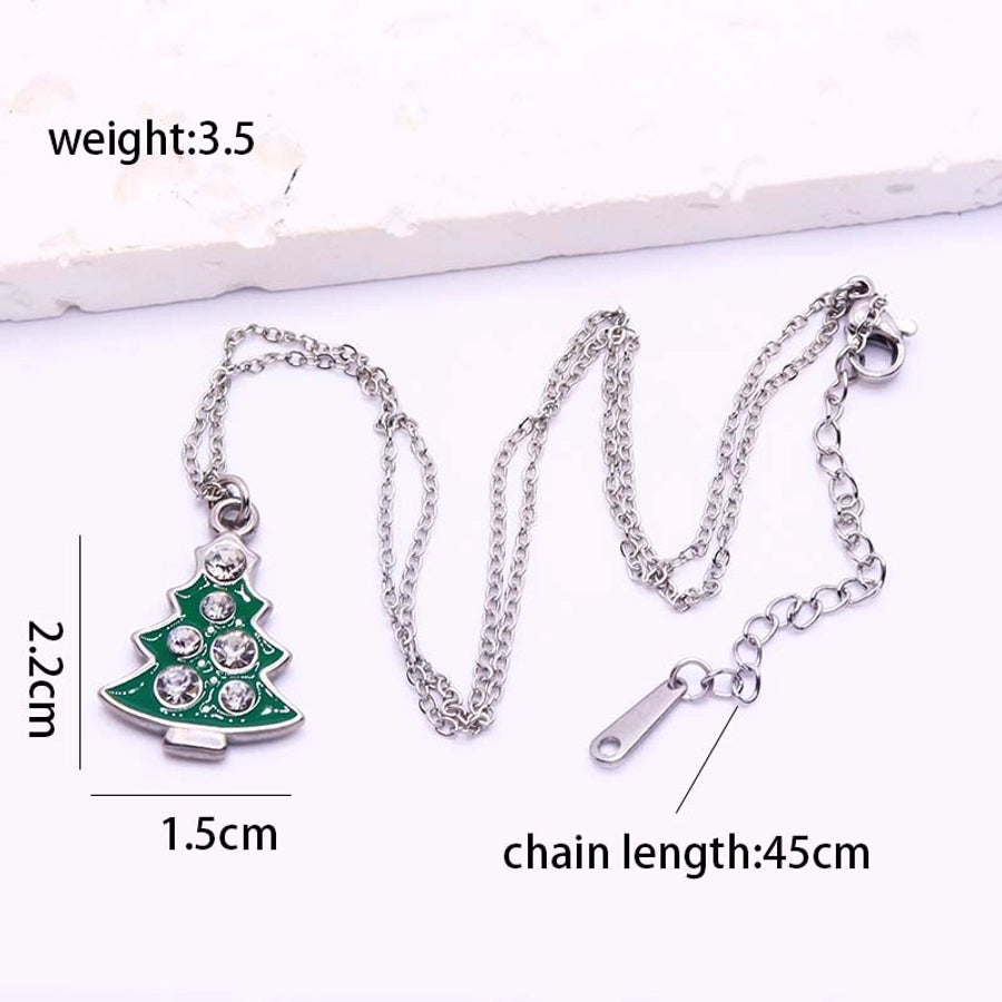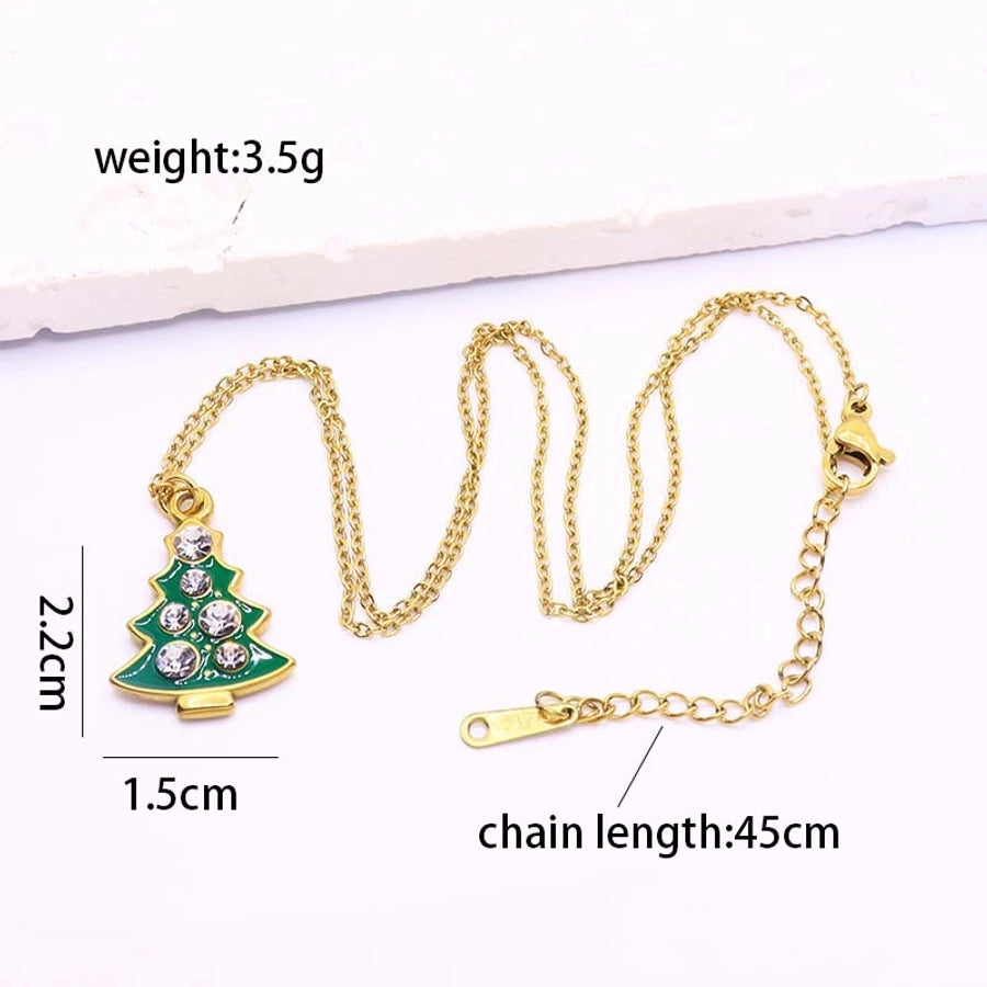Elegant Christmas Tree Gift Box 18K Gold Plated Silver Plated Zircon 304 Stainless Steel Pendant Necklace