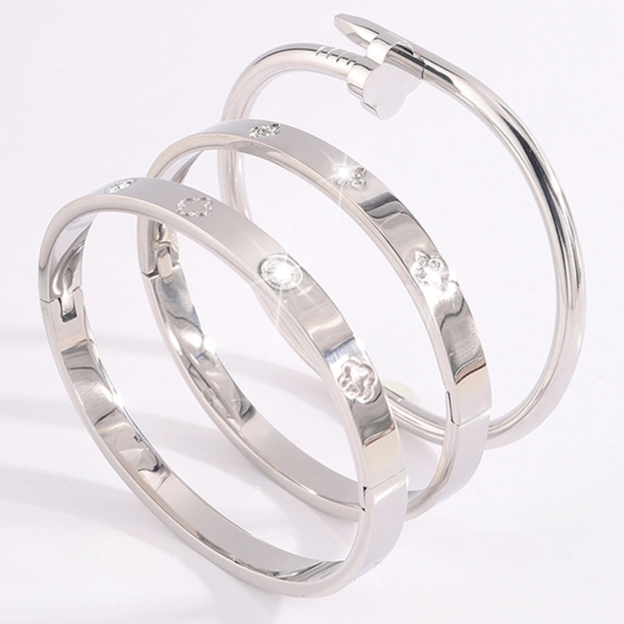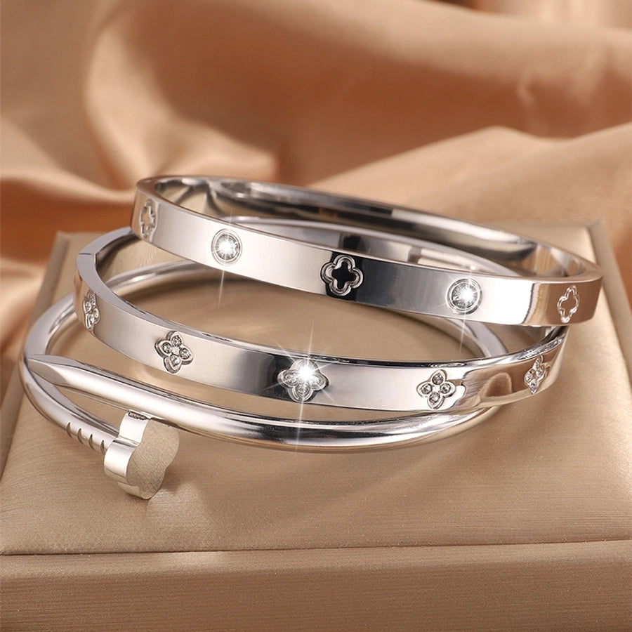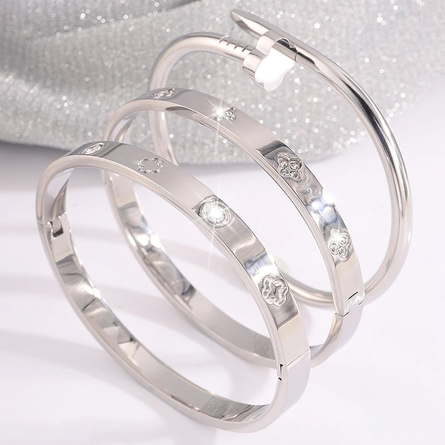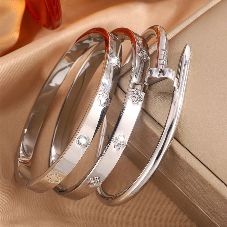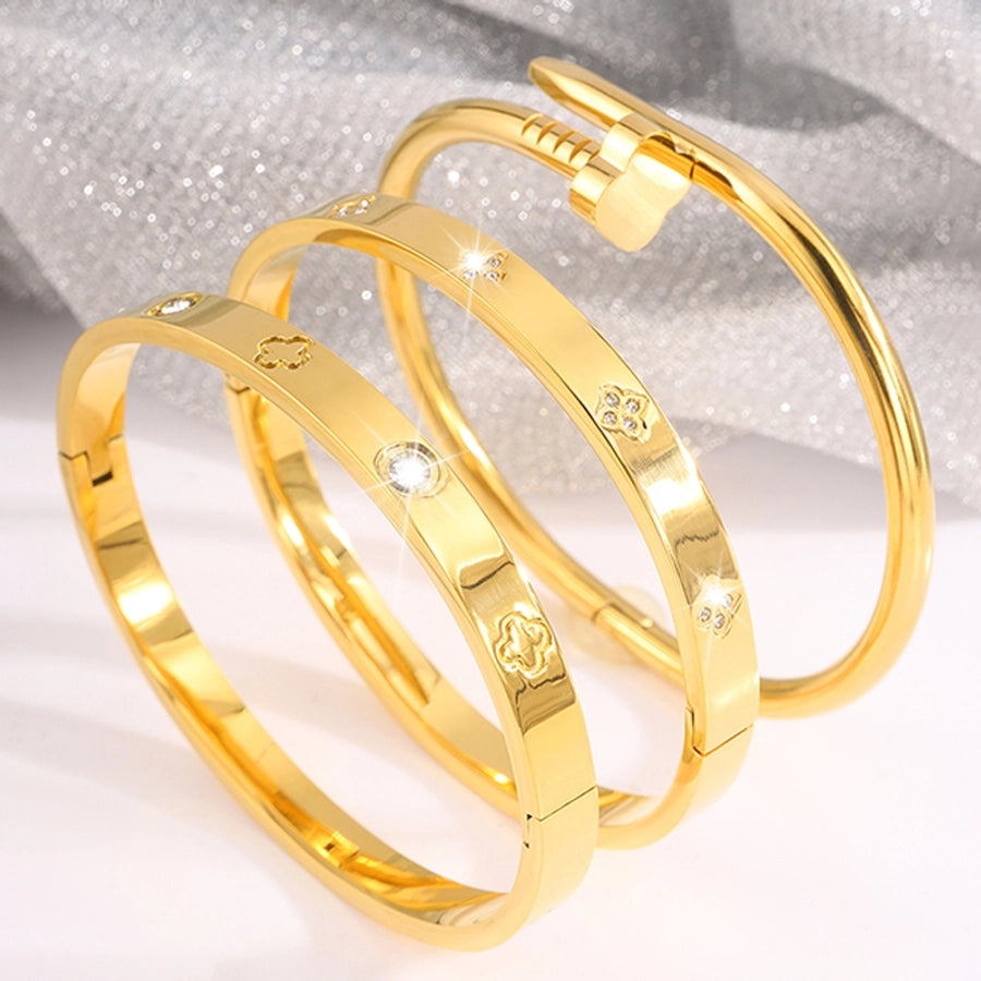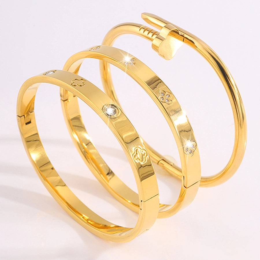 Elegant French Style Classic Style Four Leaf Clover 304 Stainless Steel Bangle In Bulk