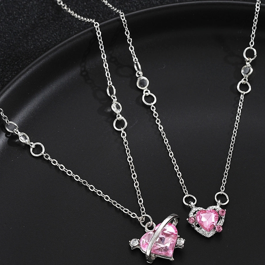 Elegant Heart Shape Alloy Rhinestone Pendant Necklace