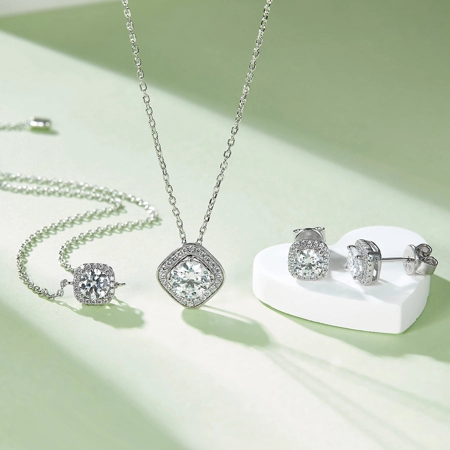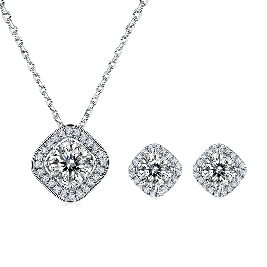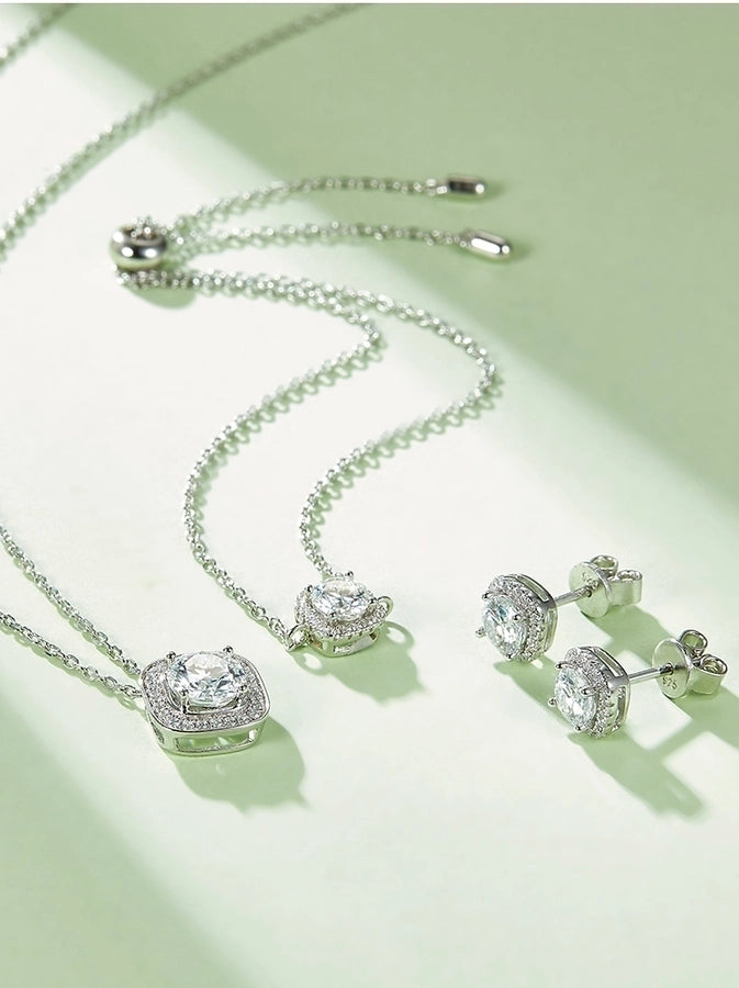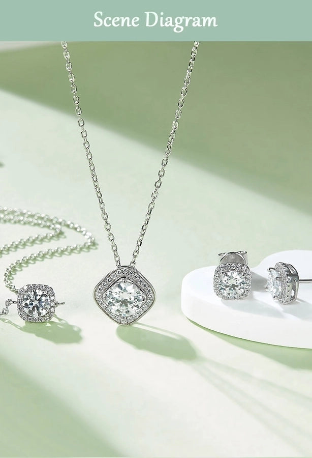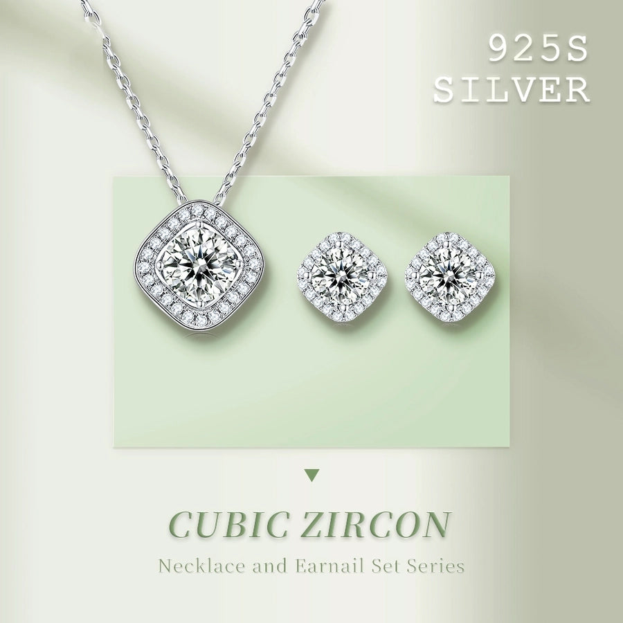 Elegant Princess Sweet Geometric Sterling Silver Inlay Zircon Rhodium Plated Women's Bracelets Earrings Necklace